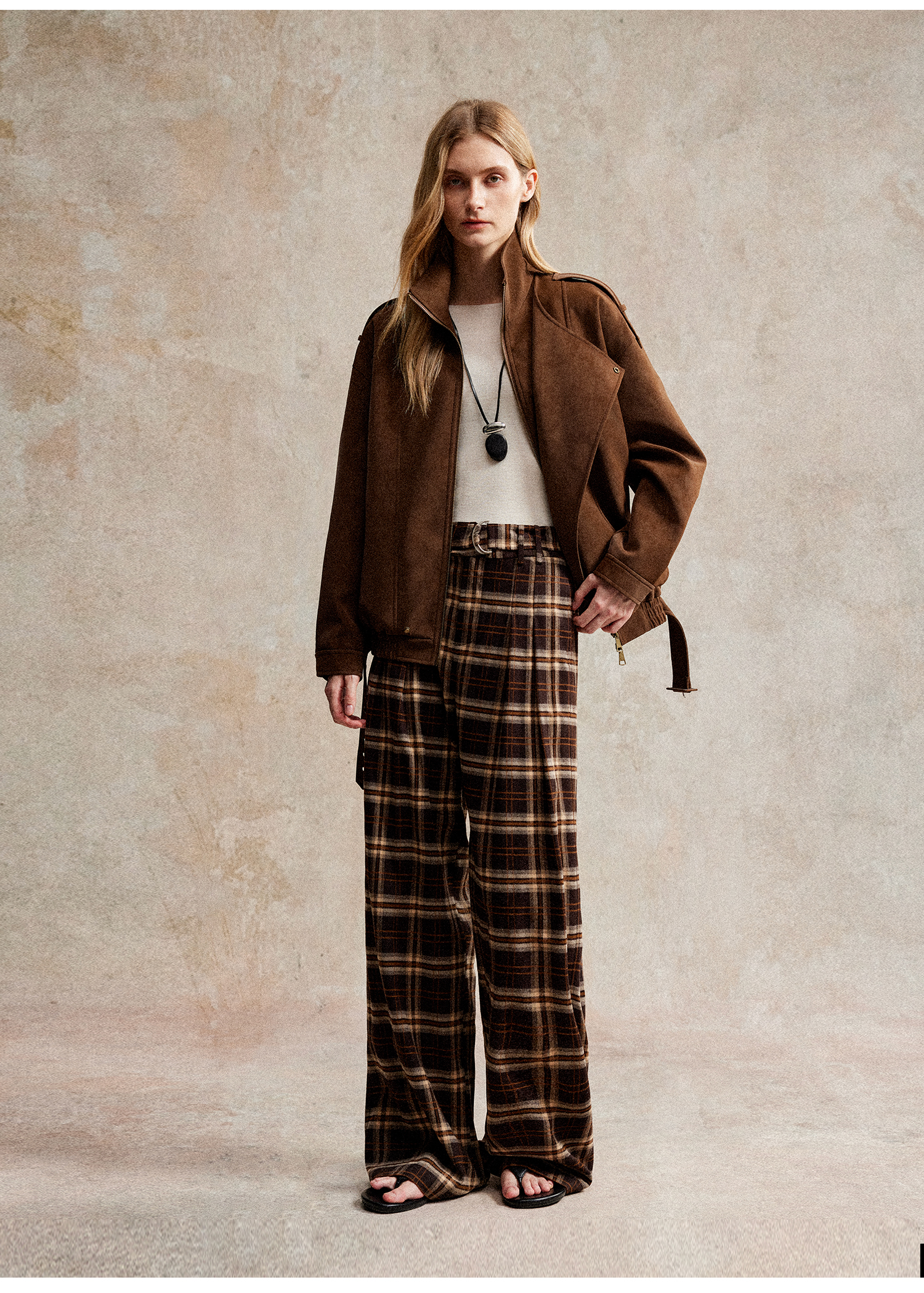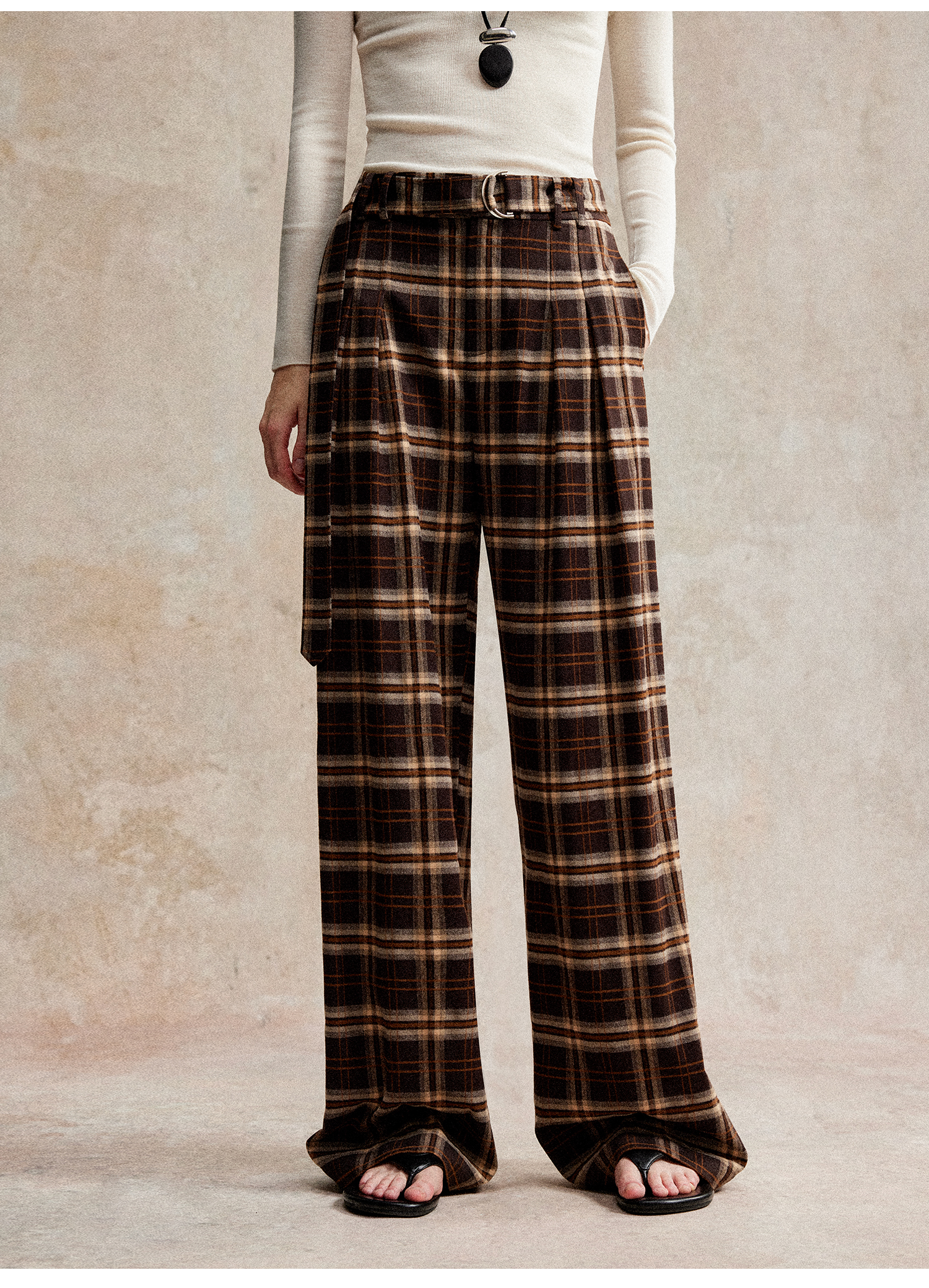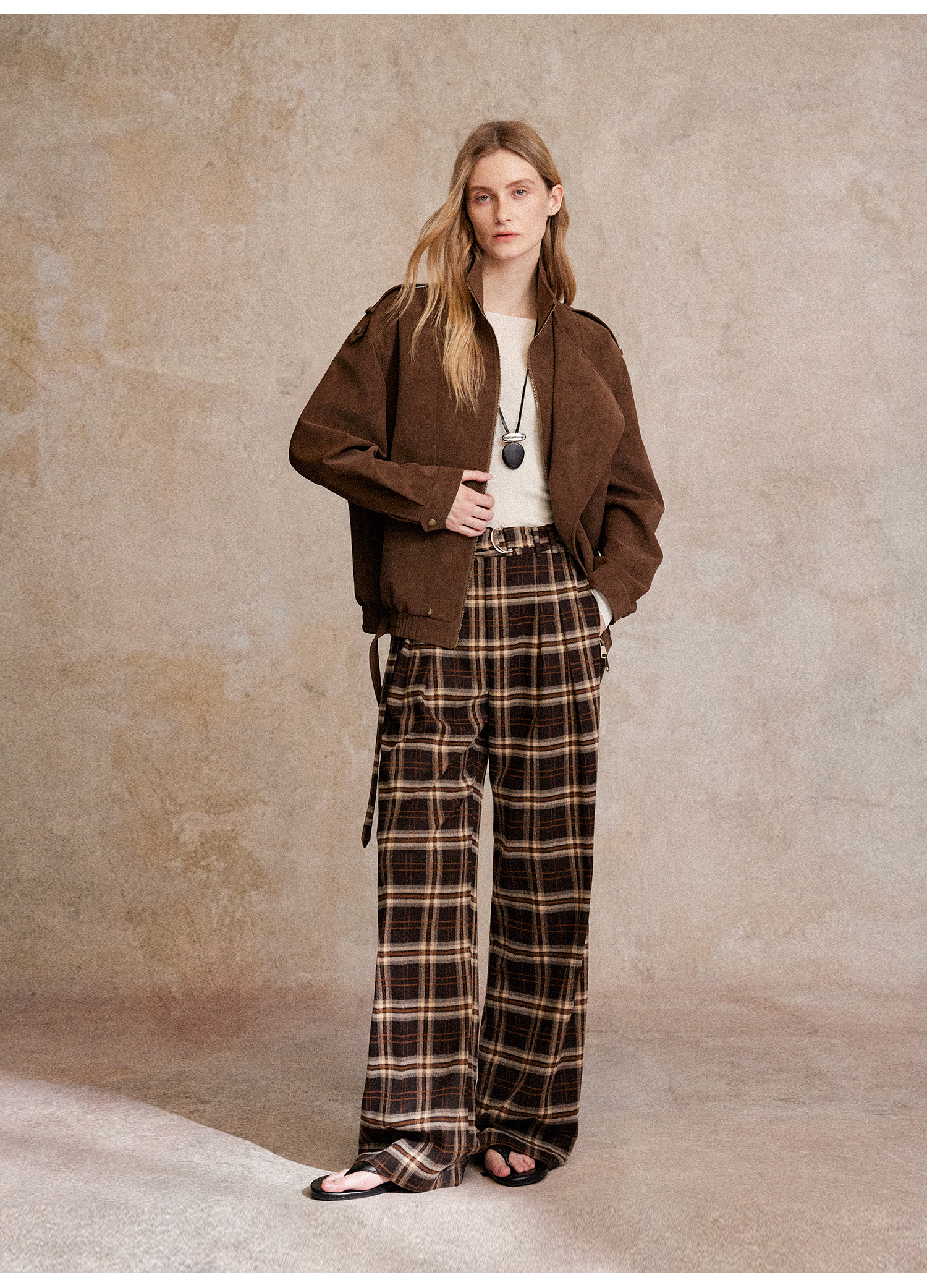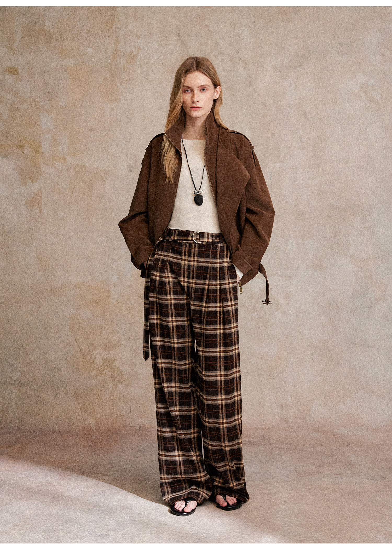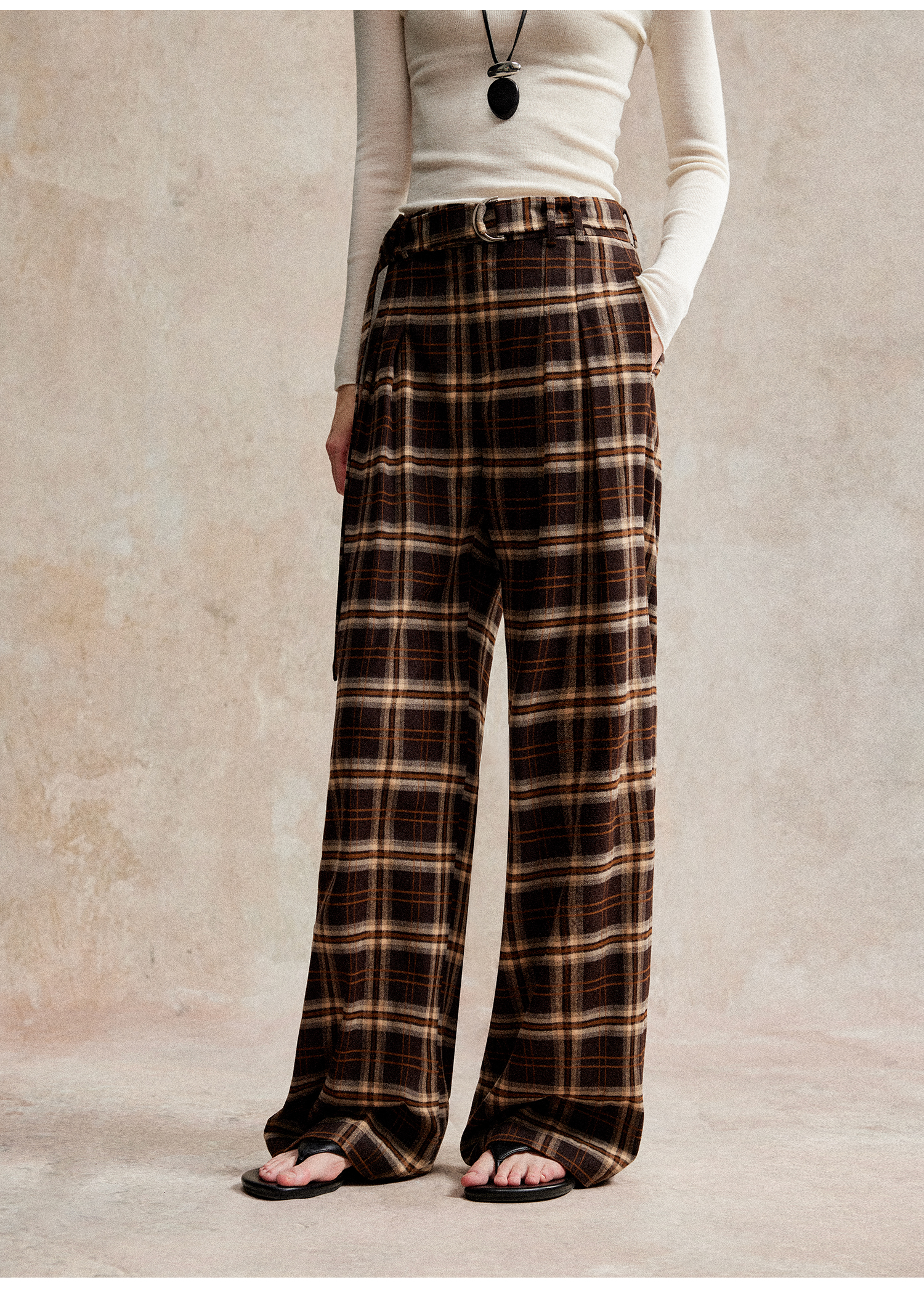 C+IMPRESS/西嘉 时髦格纹磨毛长裤复古老钱英伦学院风直筒休闲裤