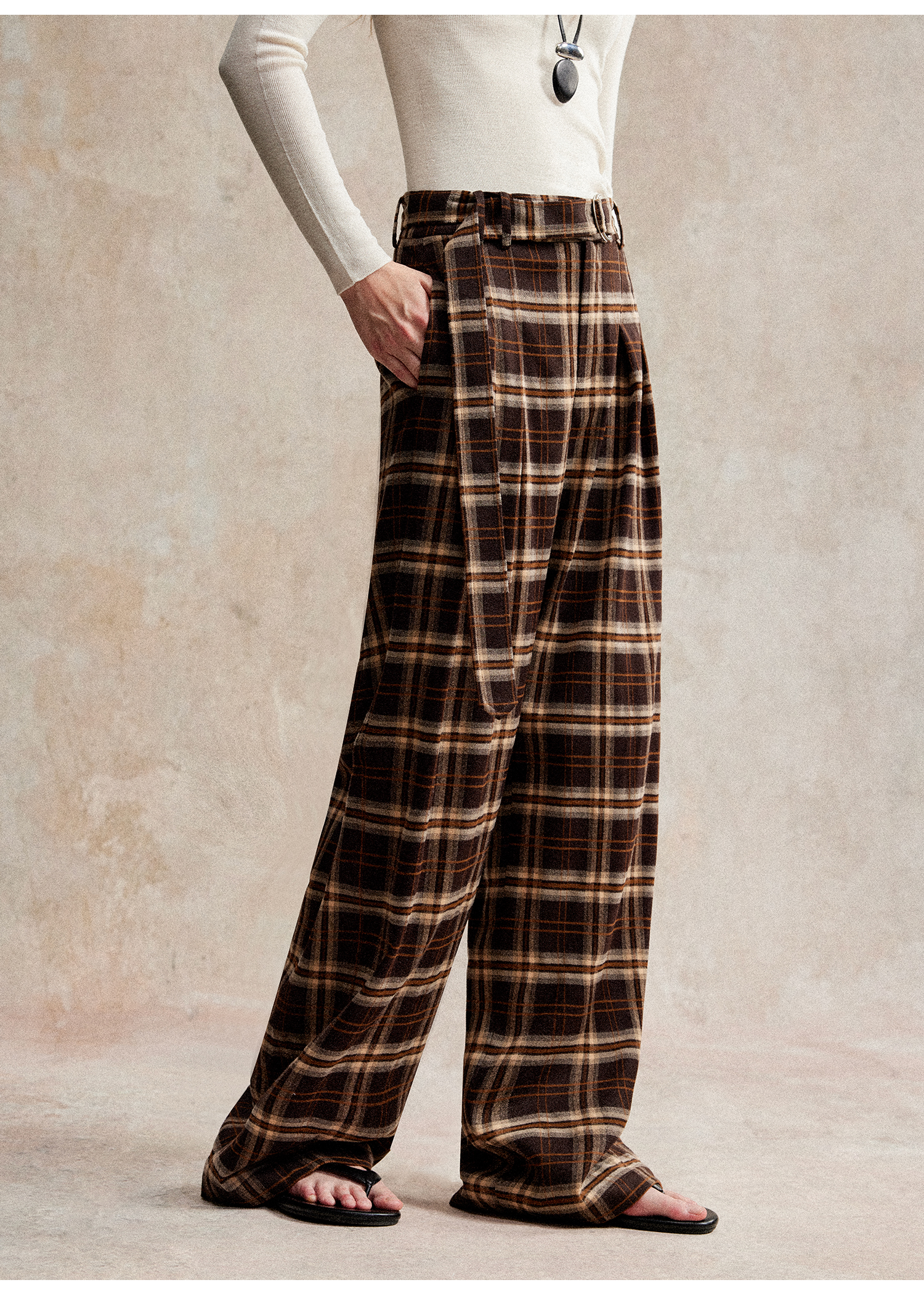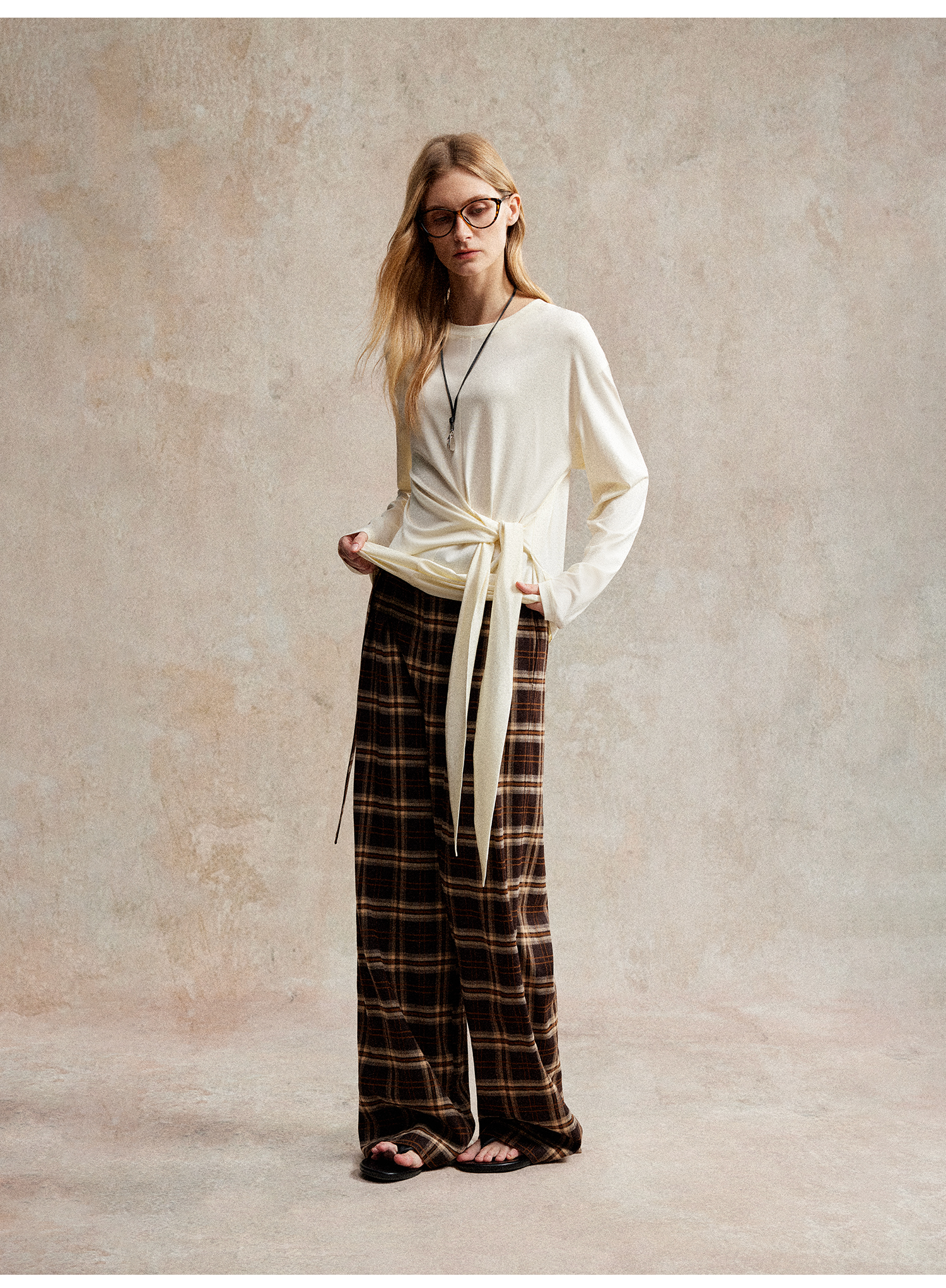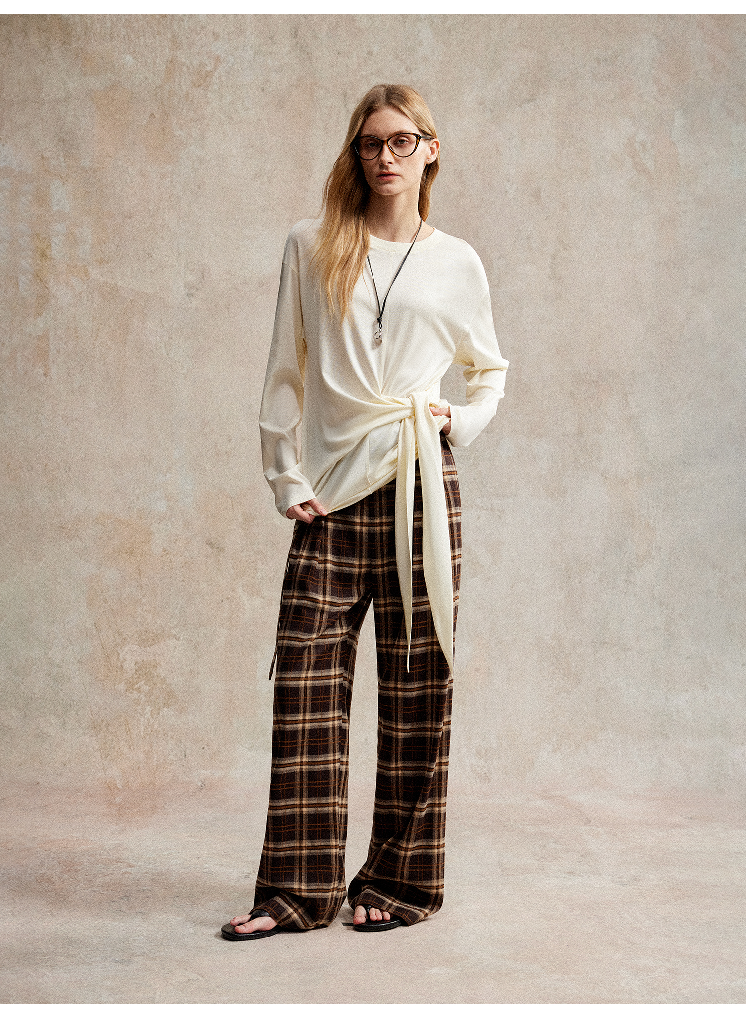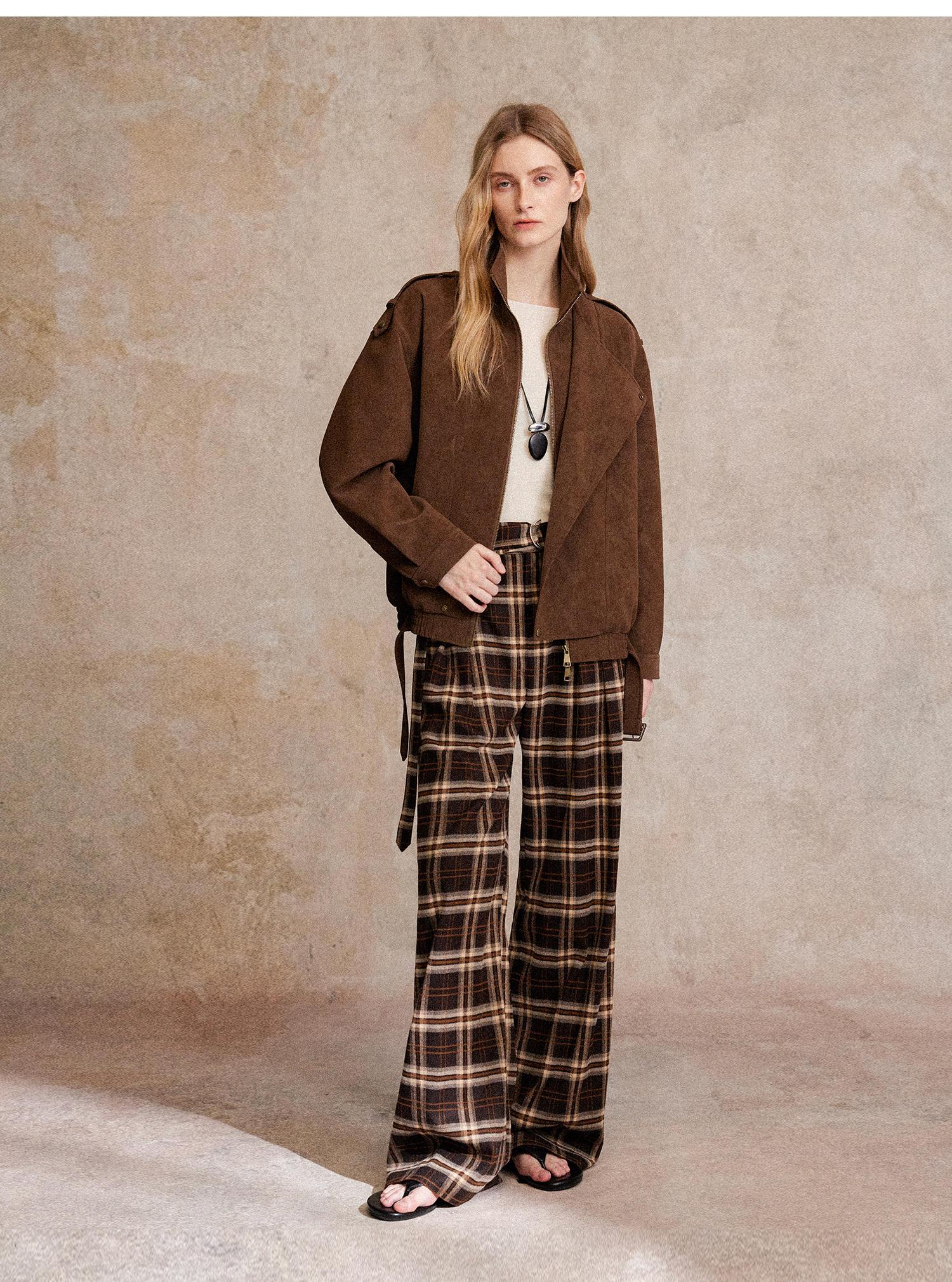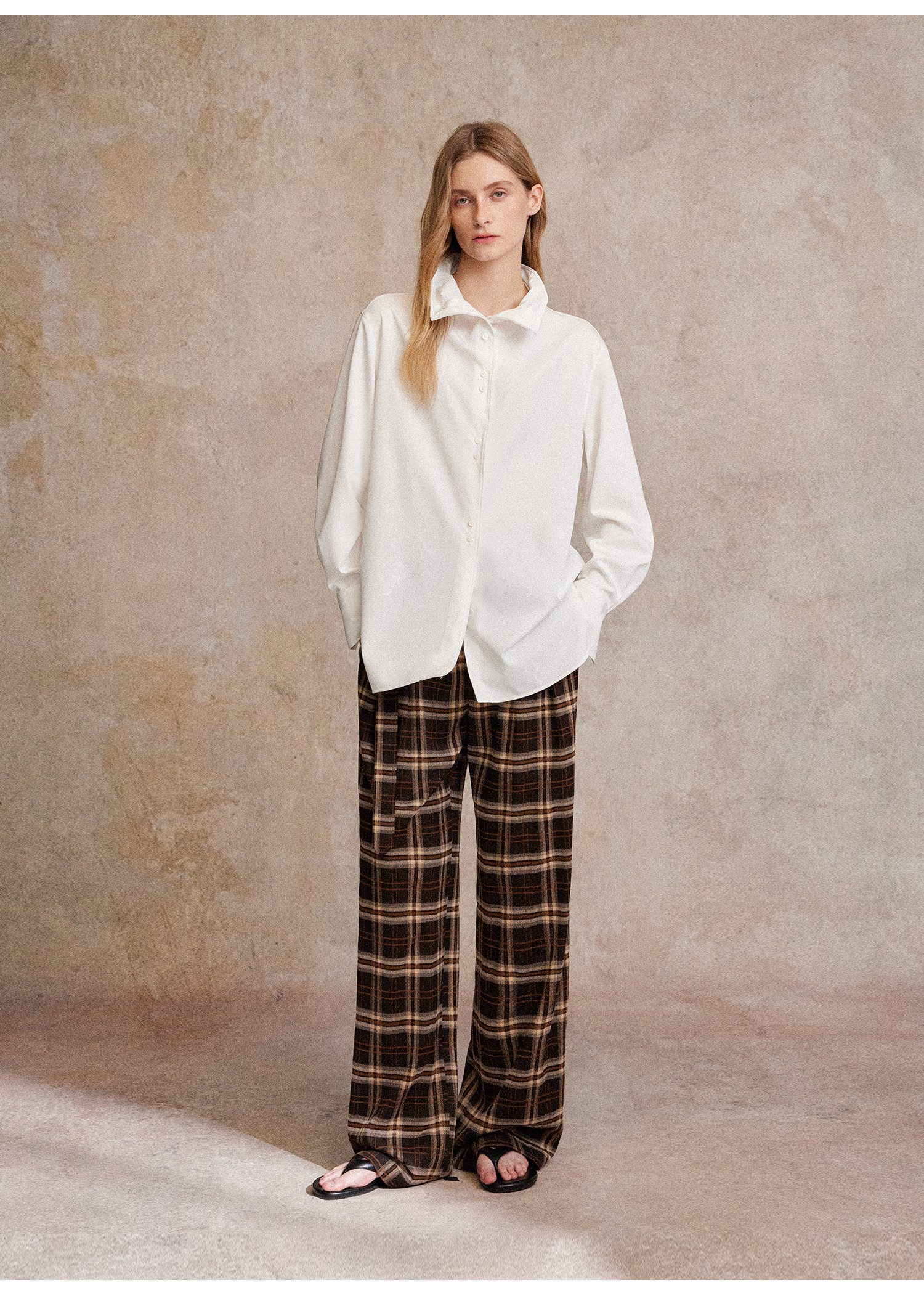 C+IMPRESS/西嘉 时髦格纹磨毛长裤复古老钱英伦学院风直筒休闲裤