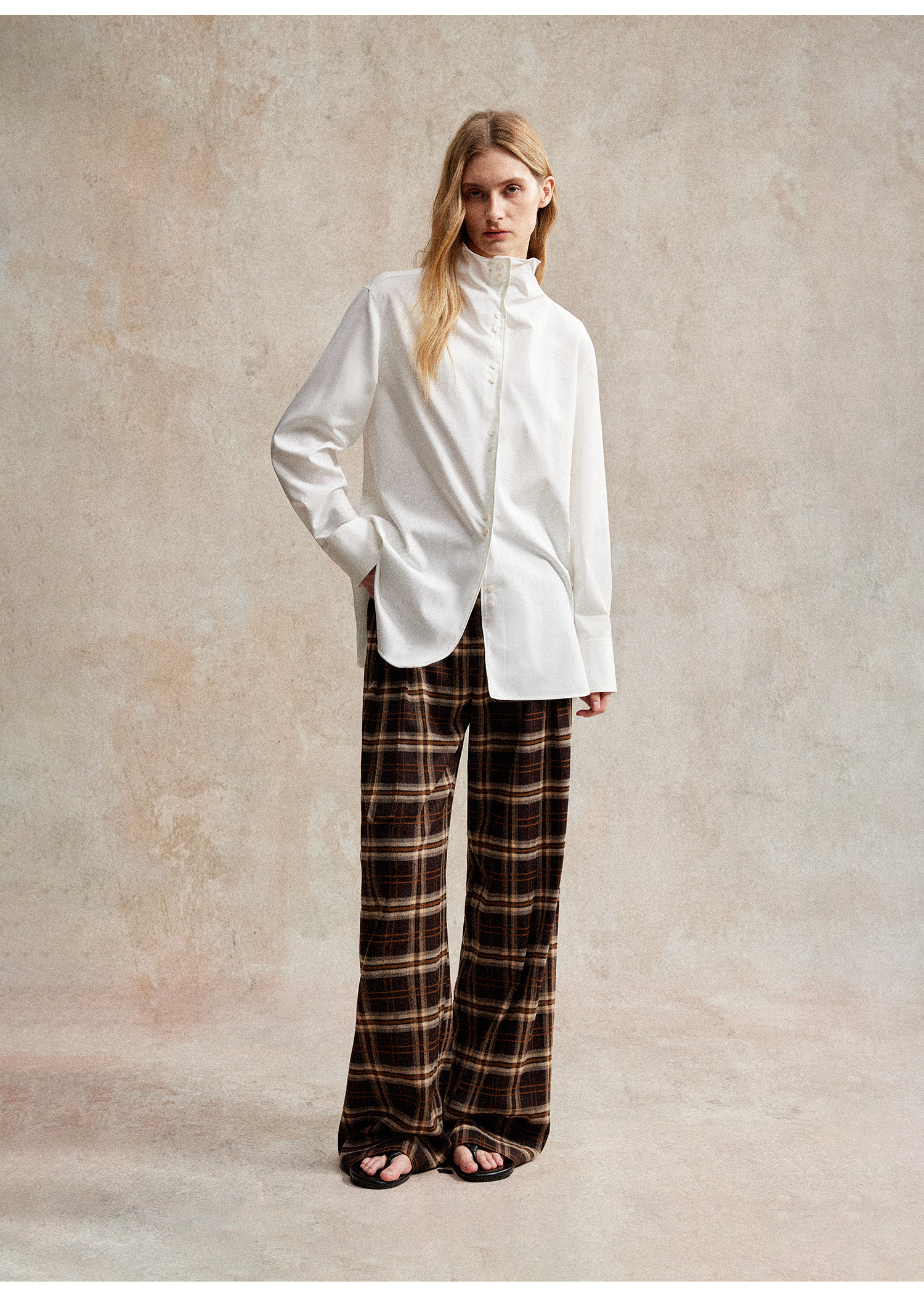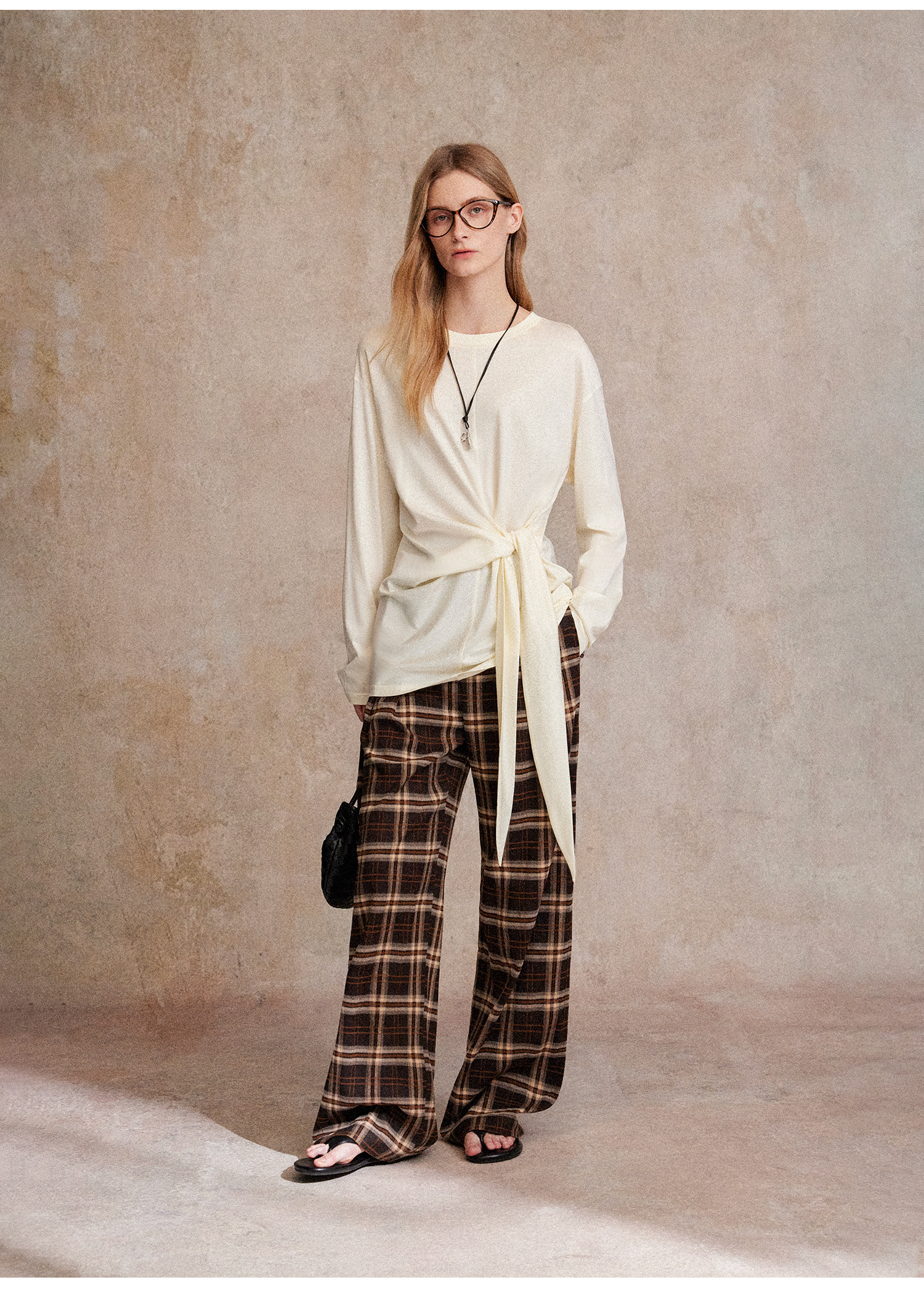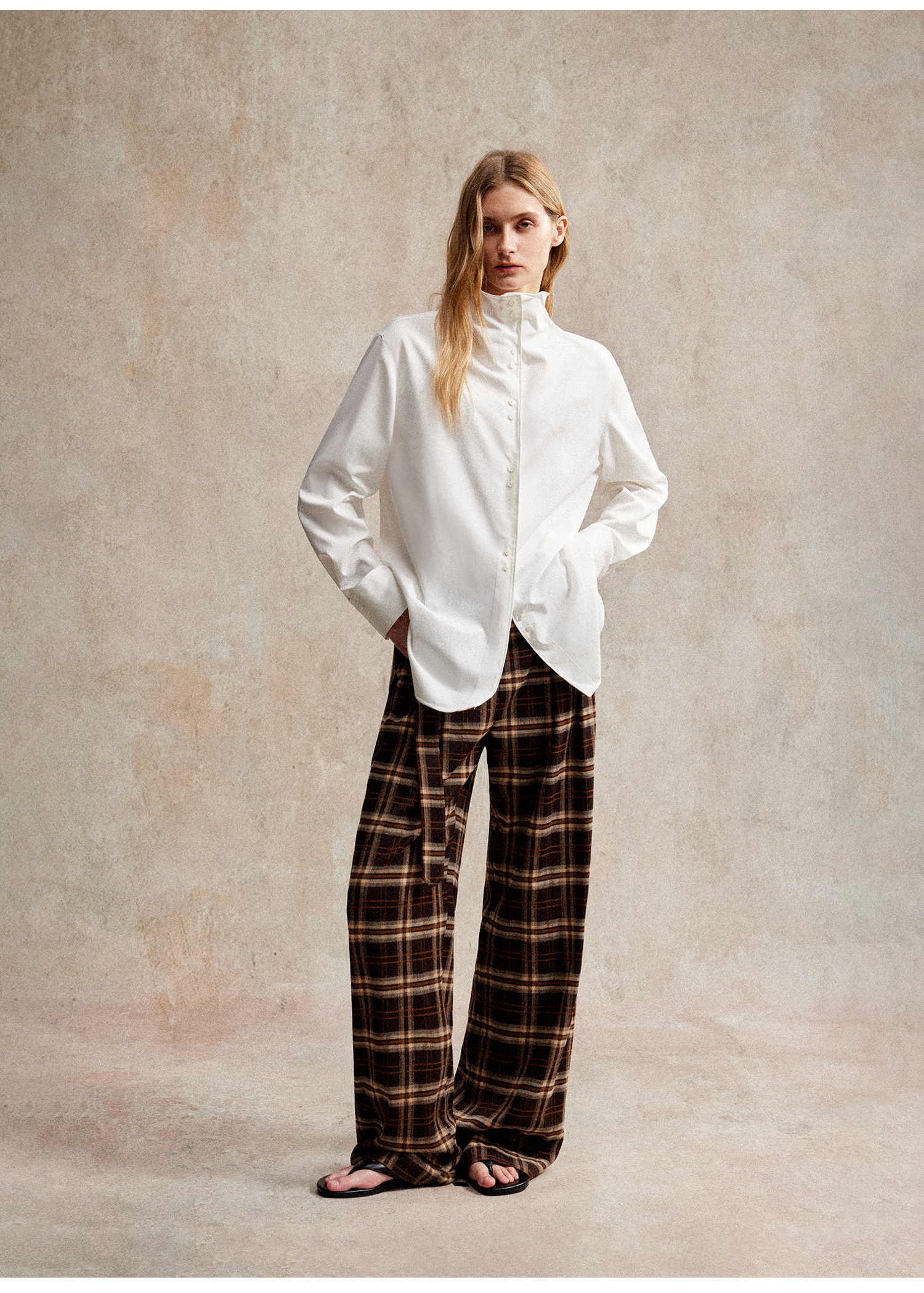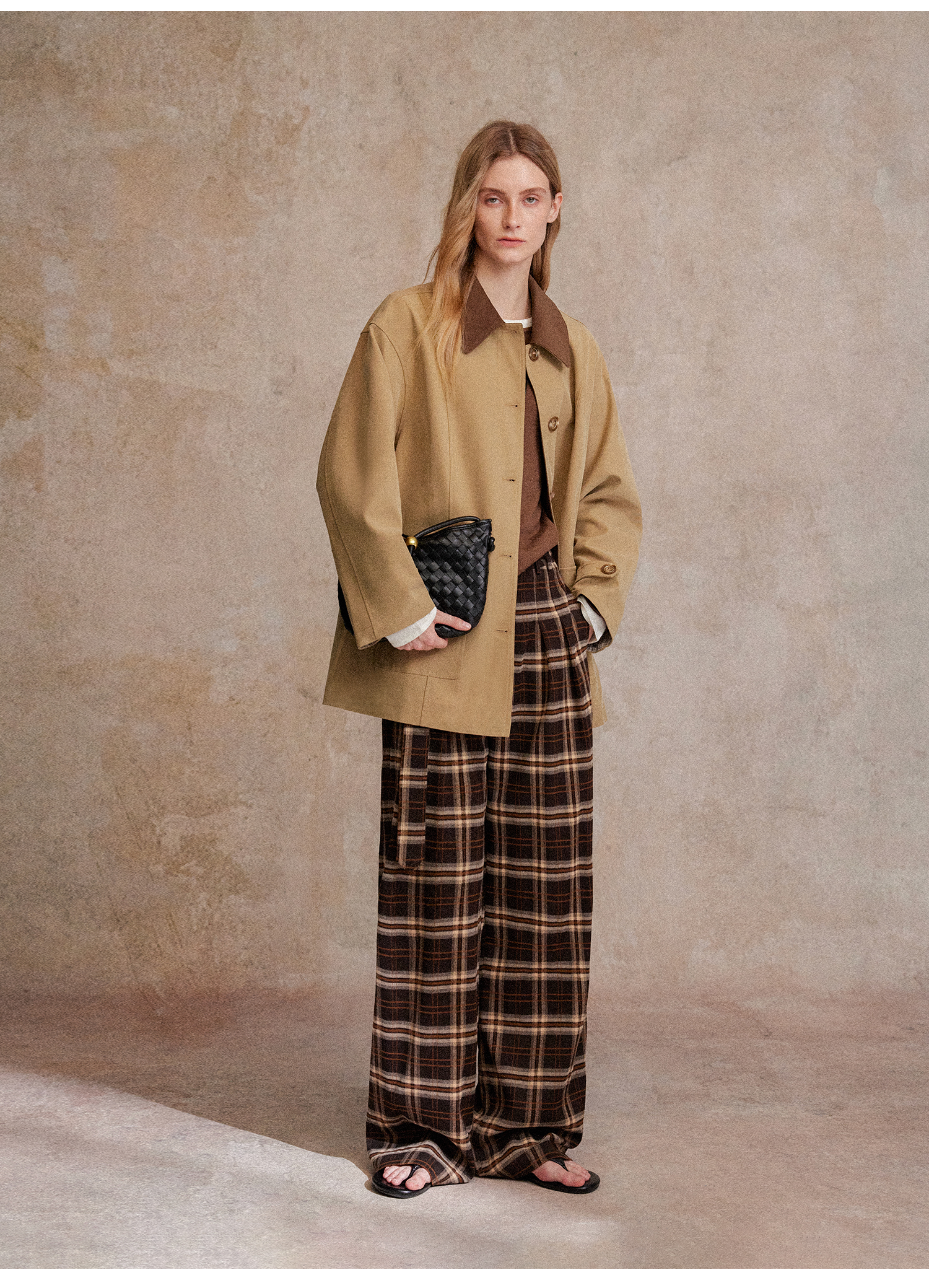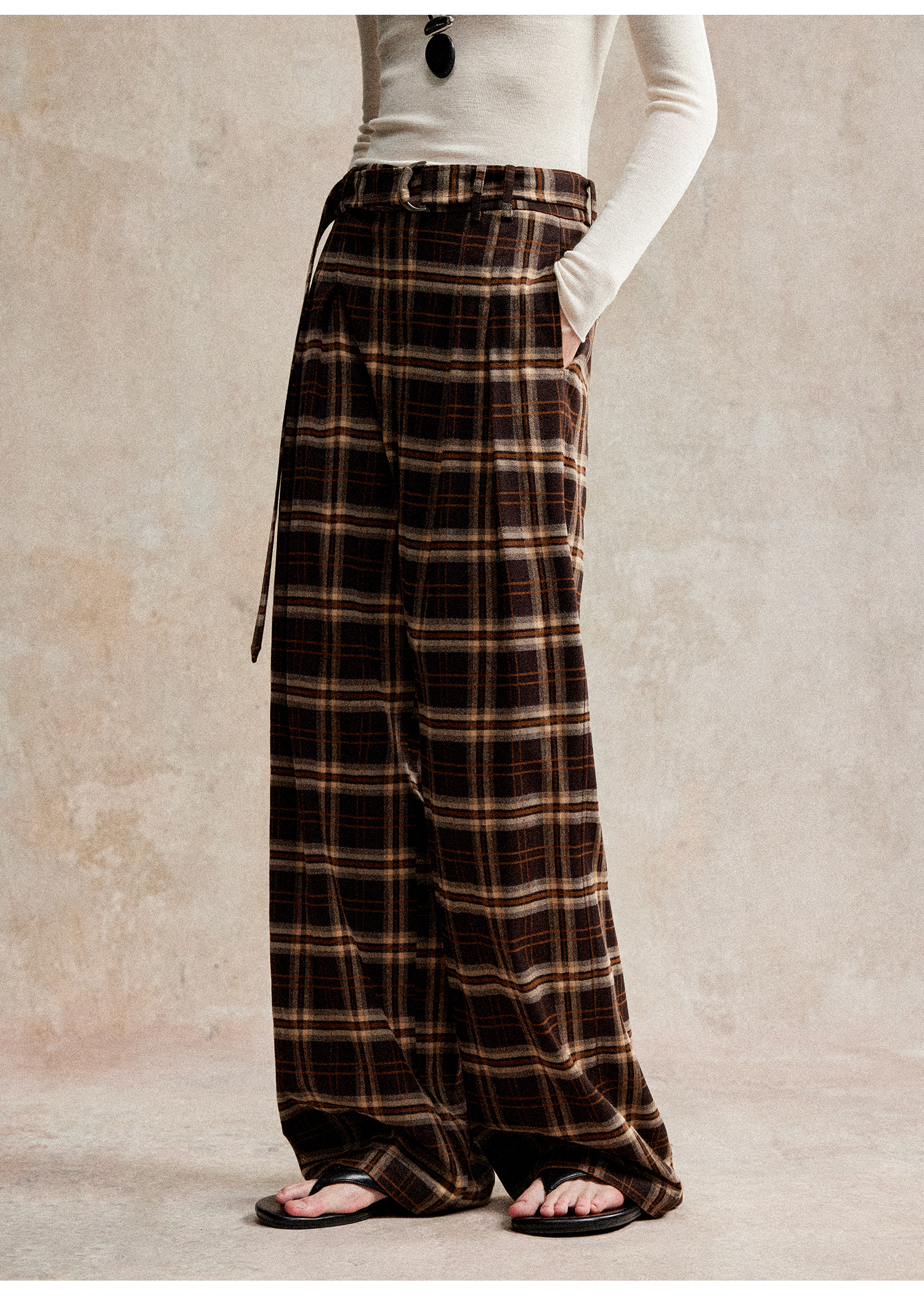 C+IMPRESS/西嘉 时髦格纹磨毛长裤复古老钱英伦学院风直筒休闲裤
