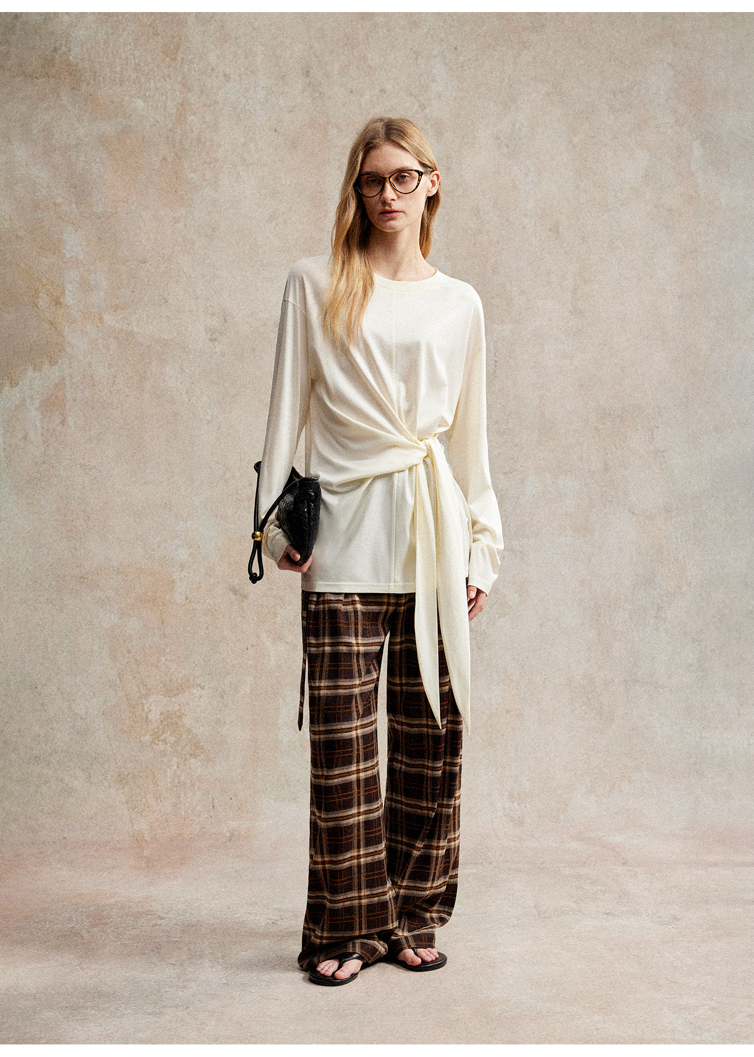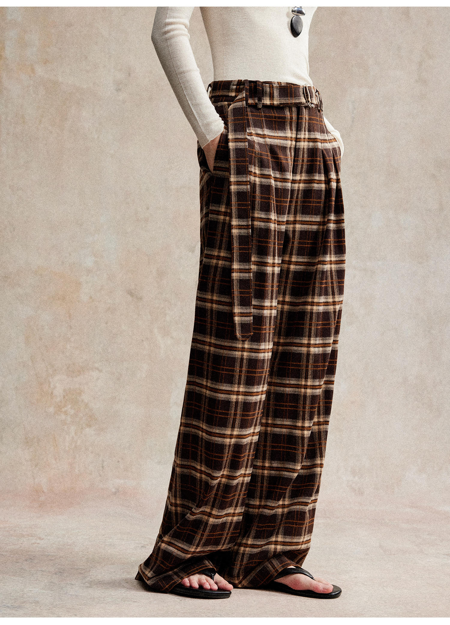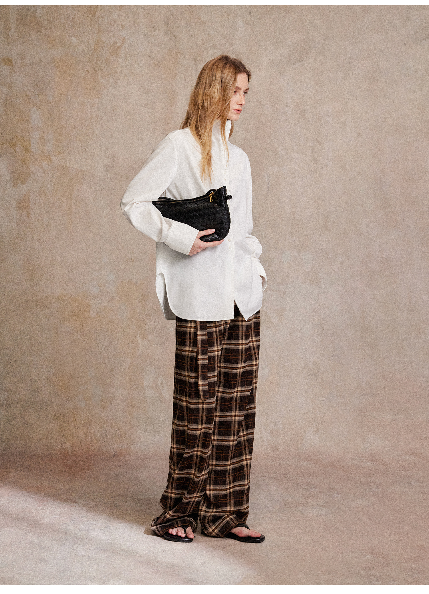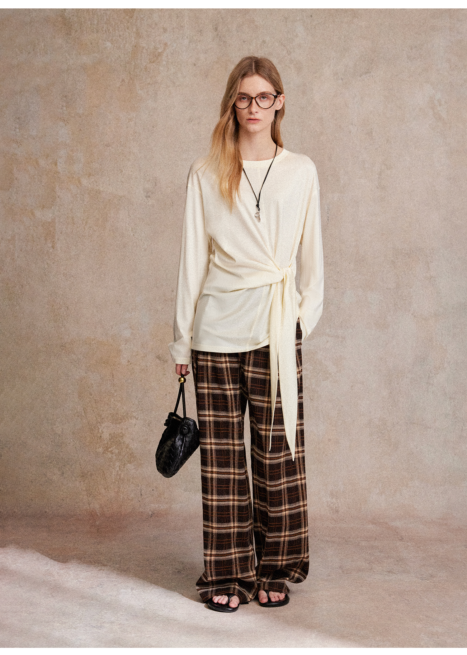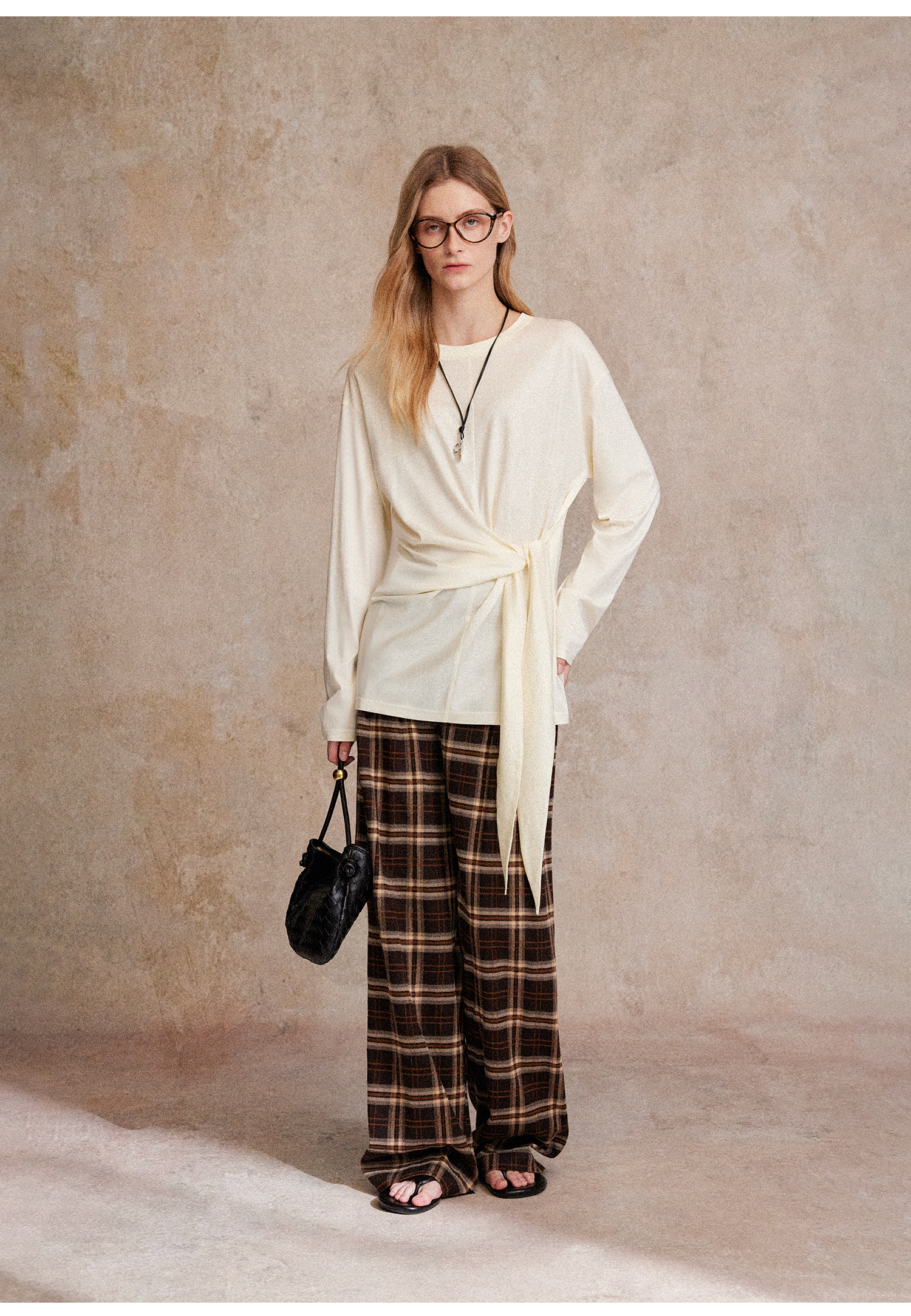 C+IMPRESS/西嘉 时髦格纹磨毛长裤复古老钱英伦学院风直筒休闲裤
