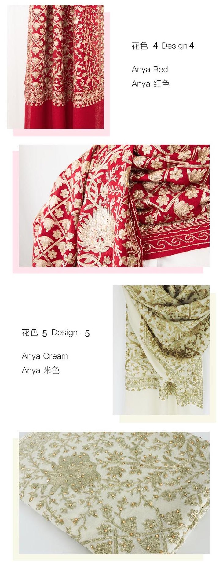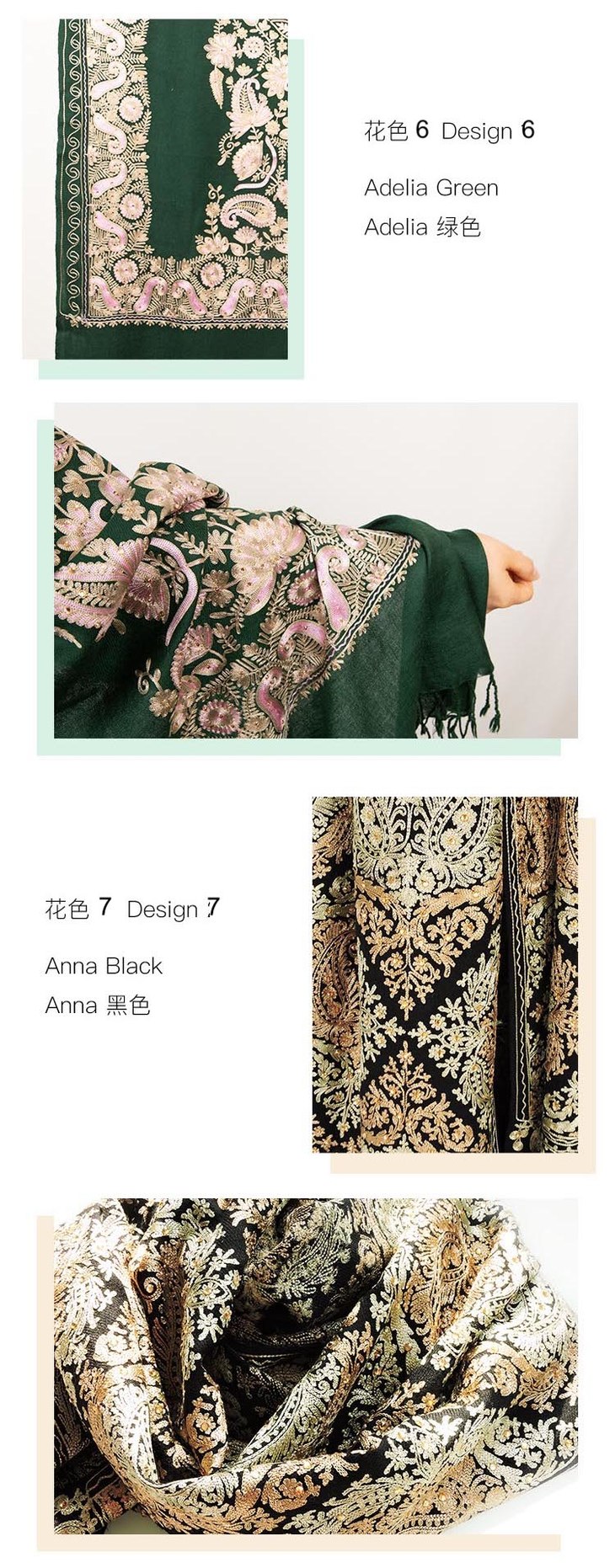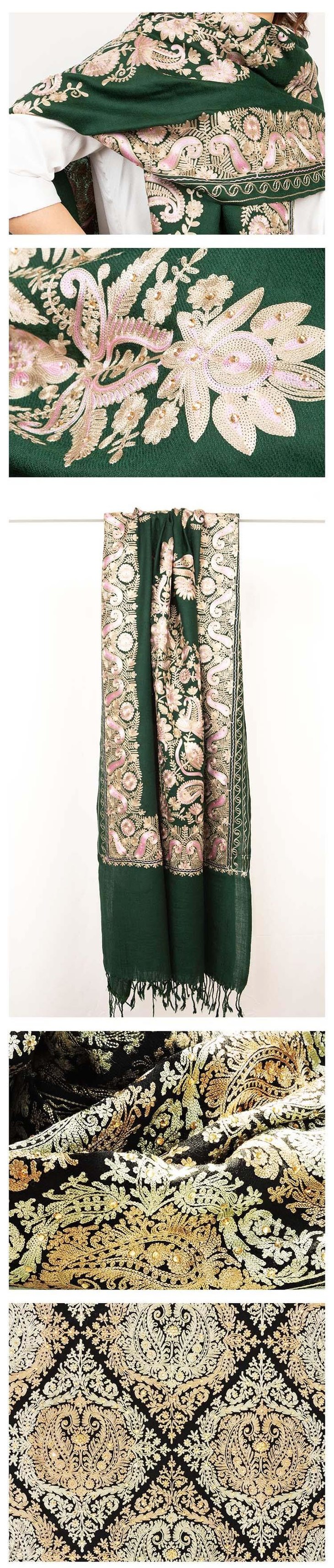 她乡悦品 豪华刺绣羊毛羊绒披肩带珍珠点缀