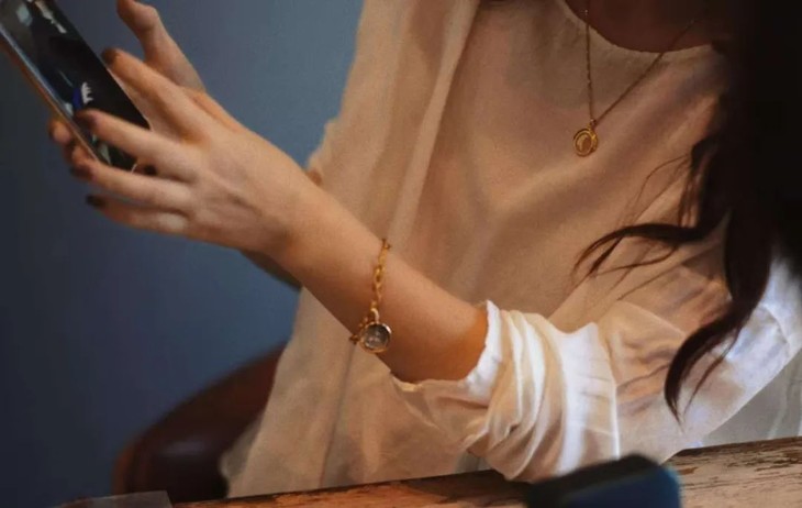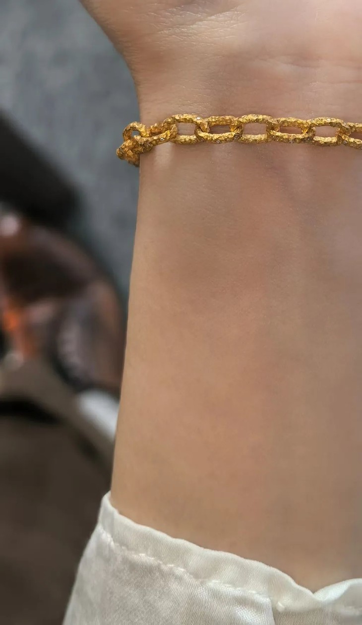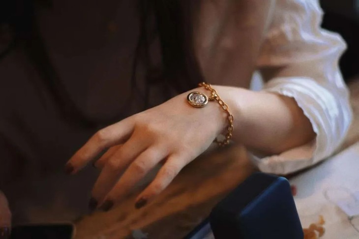 金灿灿又充满艺术感的手链,戴于皓腕,