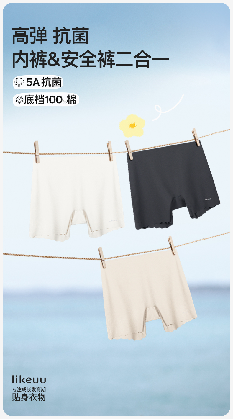 likeuu儿童安全裤内裤二合一防走光学生女平角四角夏季薄款抗菌ZY