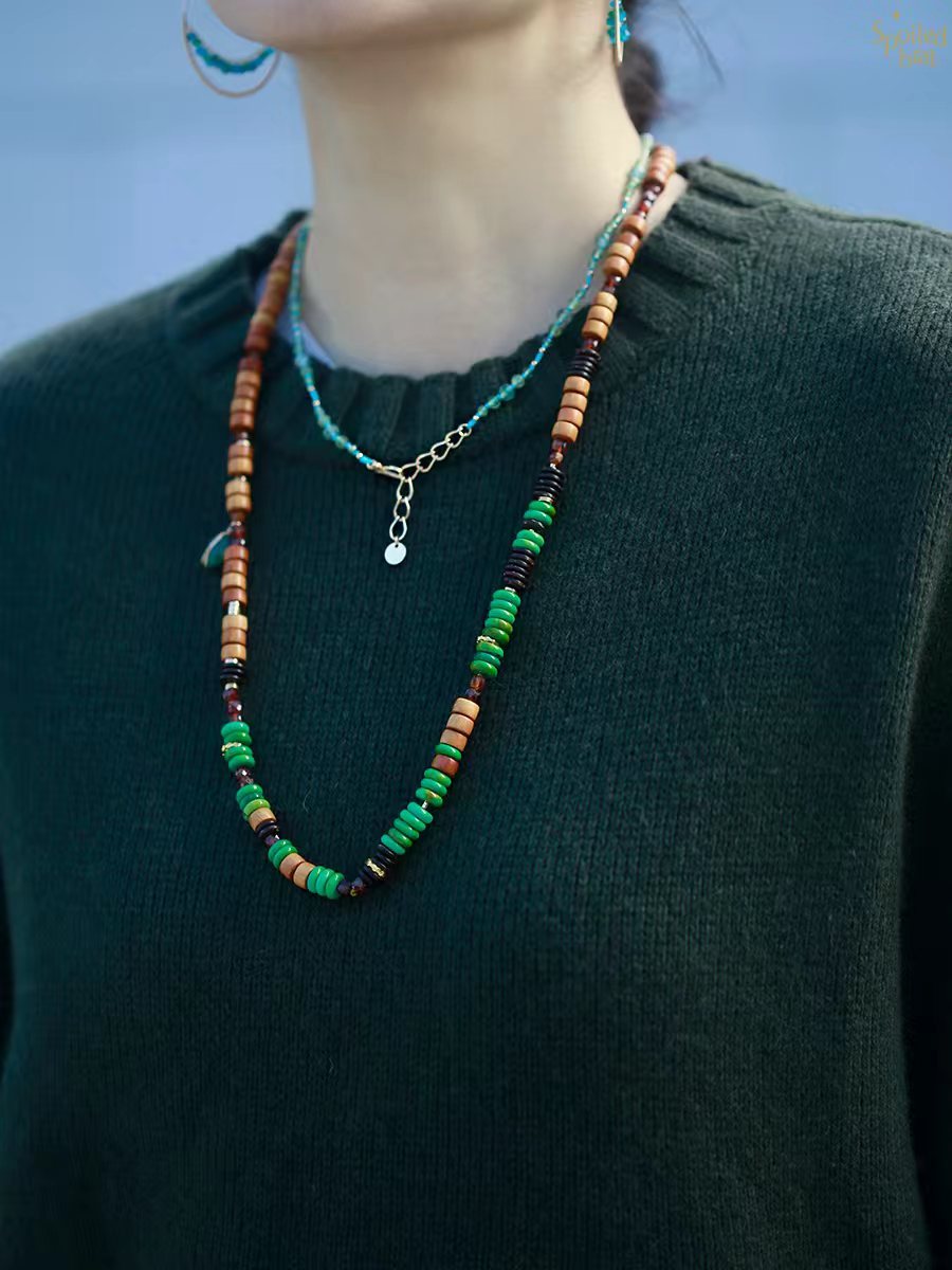 SpoiledBrat Jewelry绿松石 石榴石和檀香木的长链/多层手链