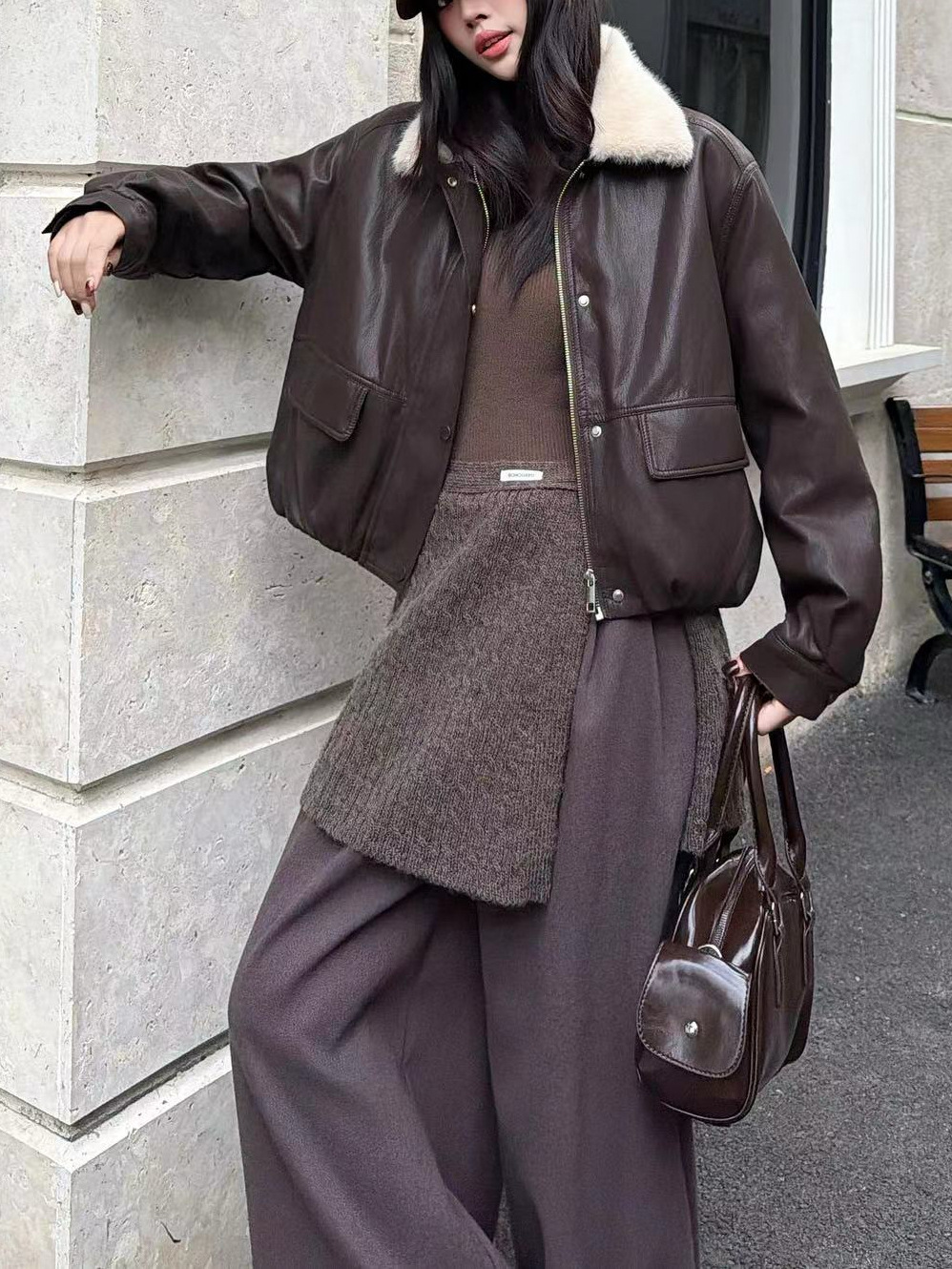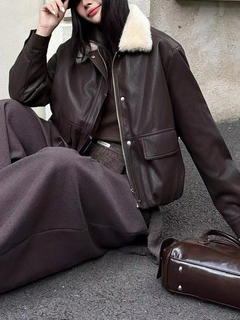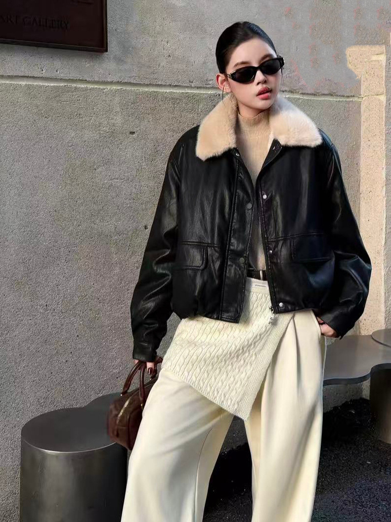 「高货sh」全新升级【铂金会员422/天猫569/差价147】(23629)洛诗琳水貂毛毛领蛋白皮夹克2025冬季加绒翻领保暖外套女