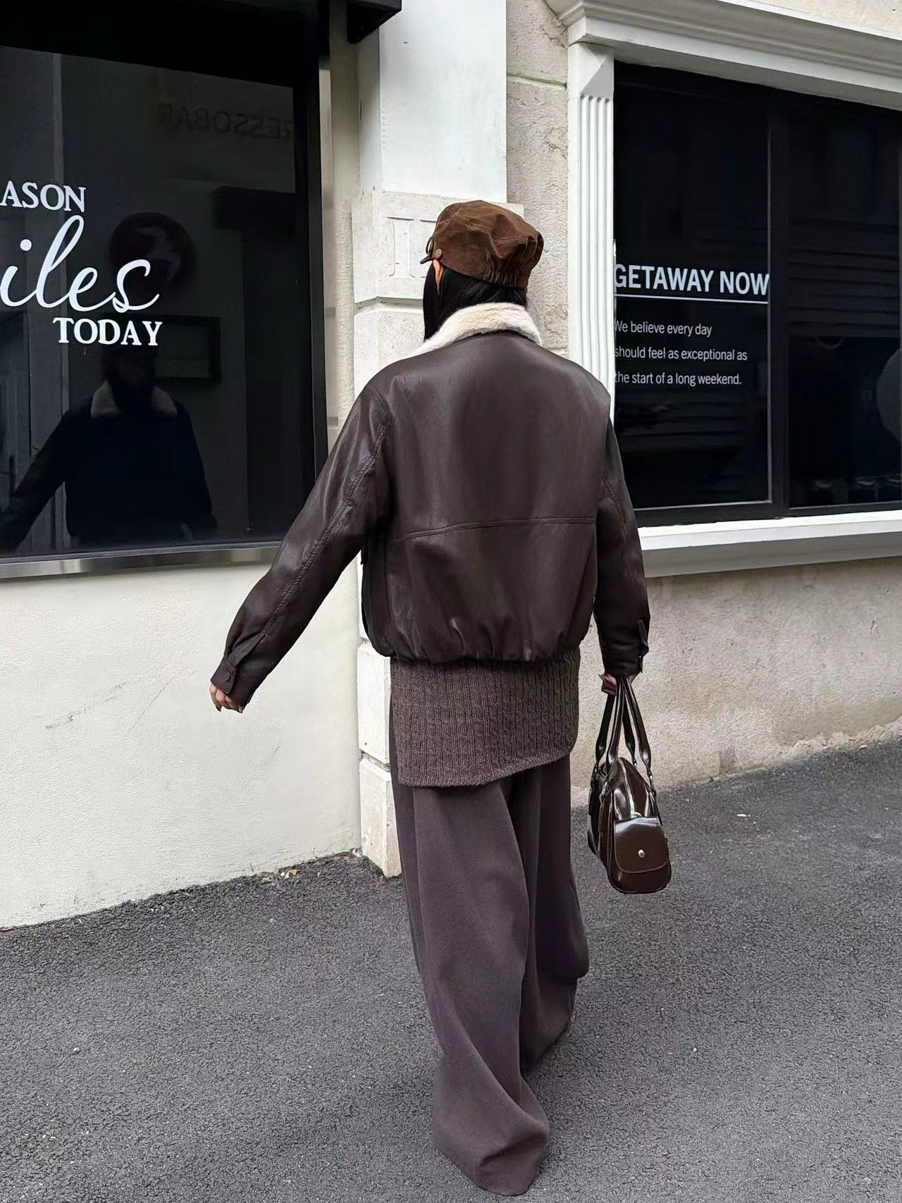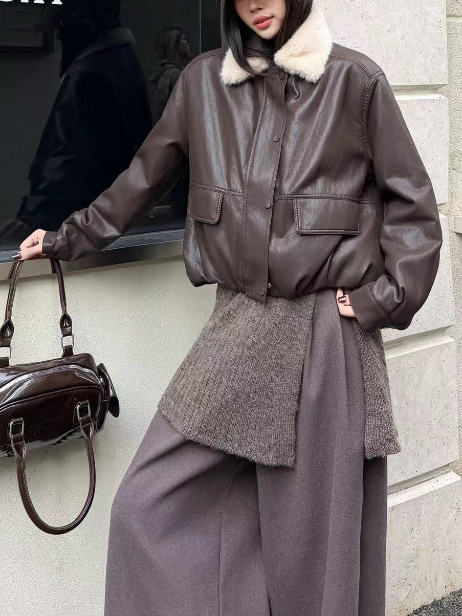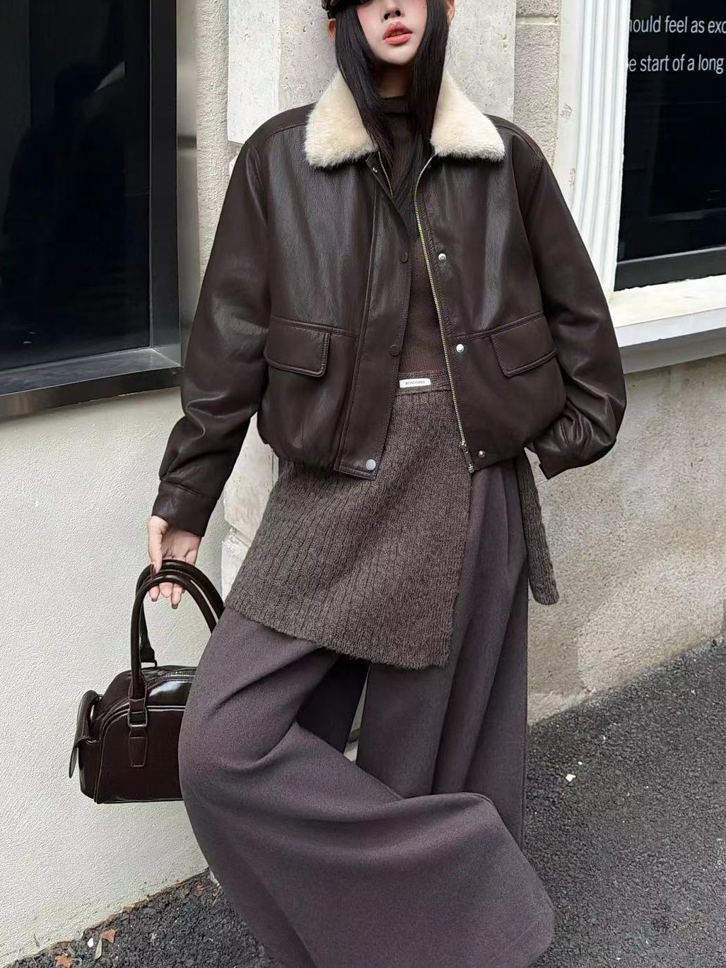 「高货sh」全新升级【铂金会员422/天猫569/差价147】(23629)洛诗琳水貂毛毛领蛋白皮夹克2025冬季加绒翻领保暖外套女