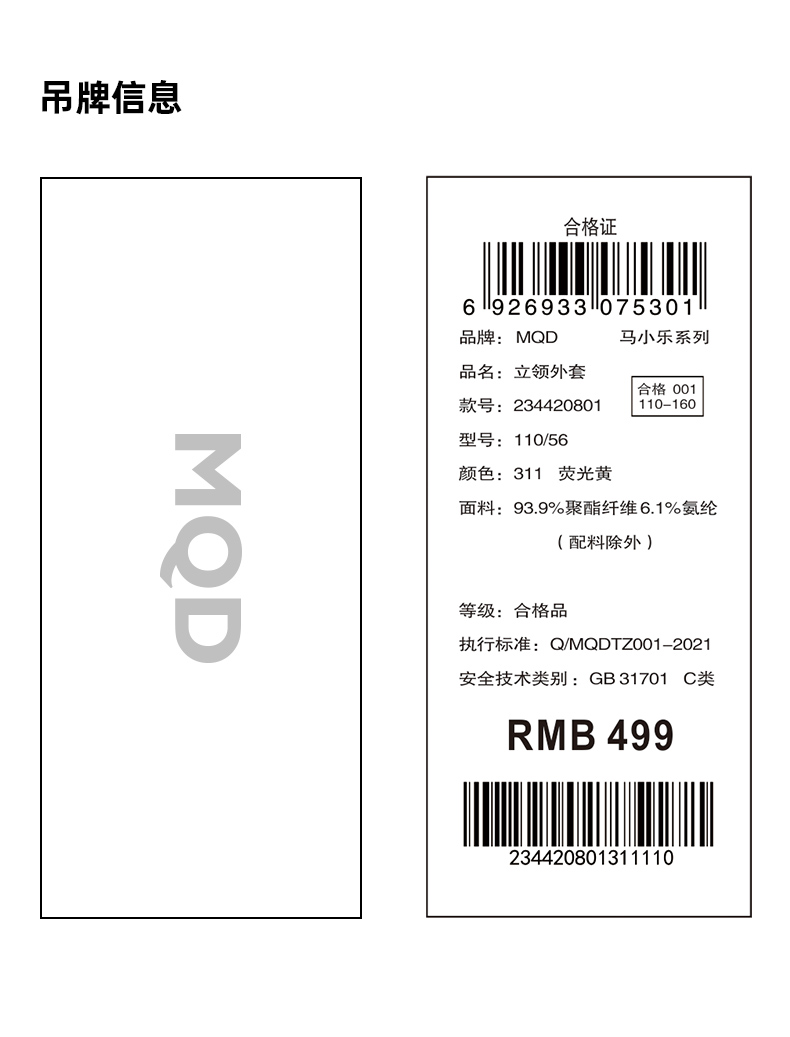 【秒】【MQD】女童冬季保暖舒适拼接立领外套