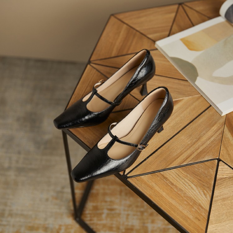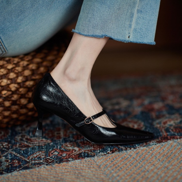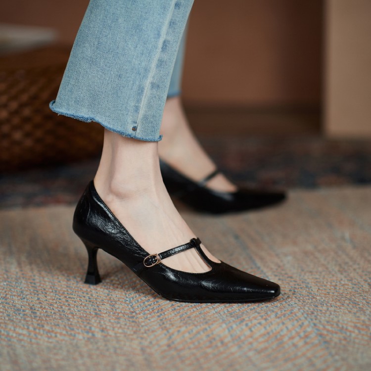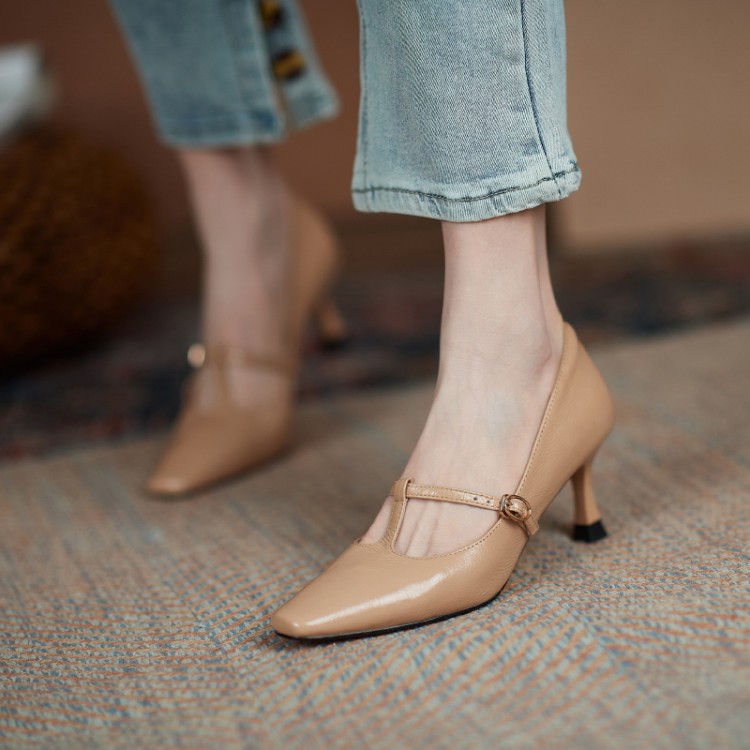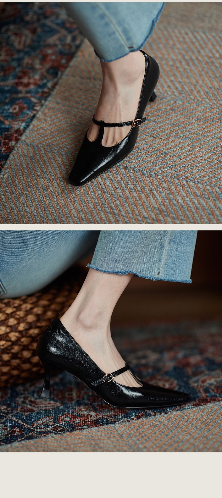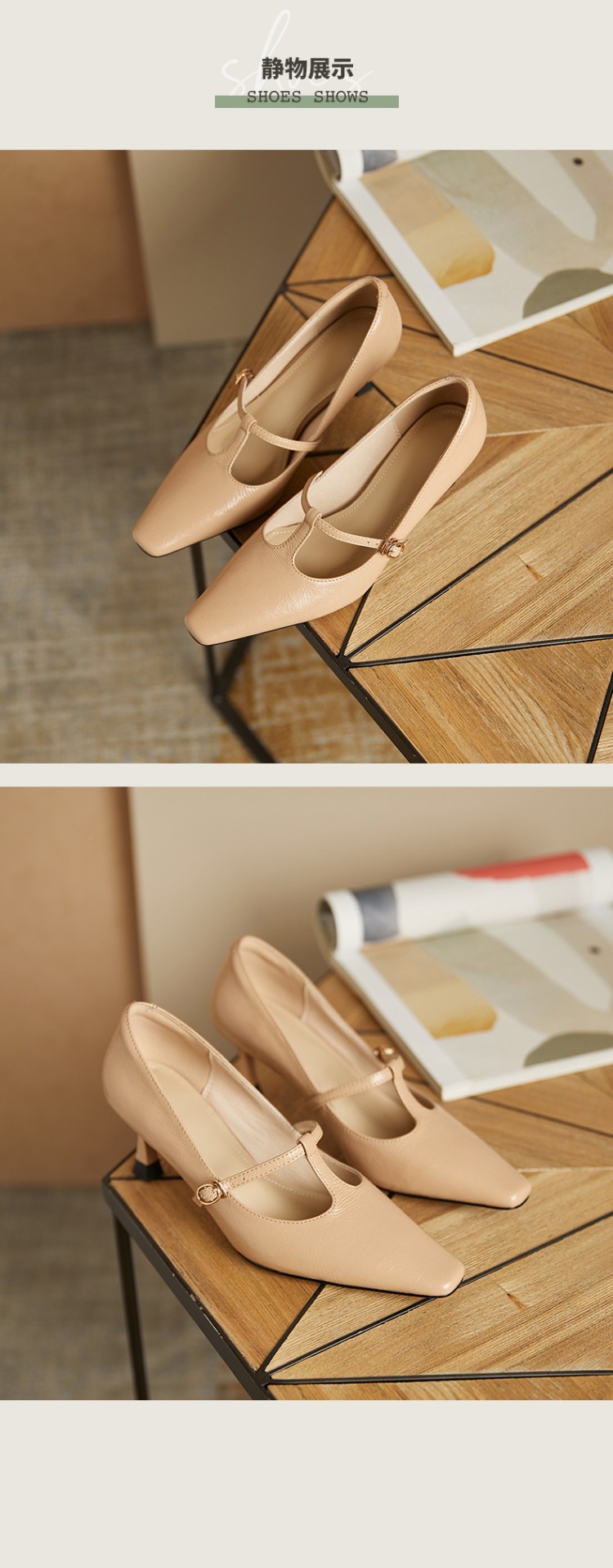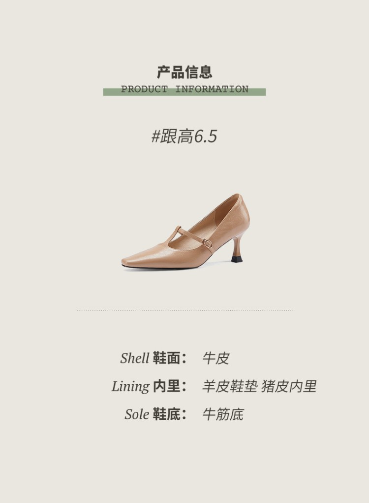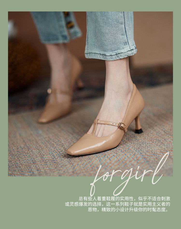 【预售5天】里外全皮简约丁字扣带高跟鞋春秋小方头单鞋女真皮细跟鞋MLJ&A316