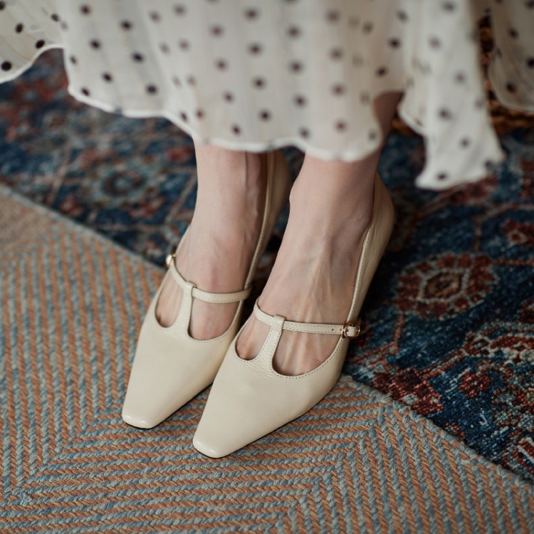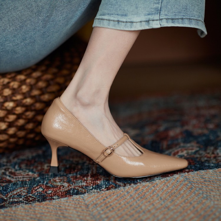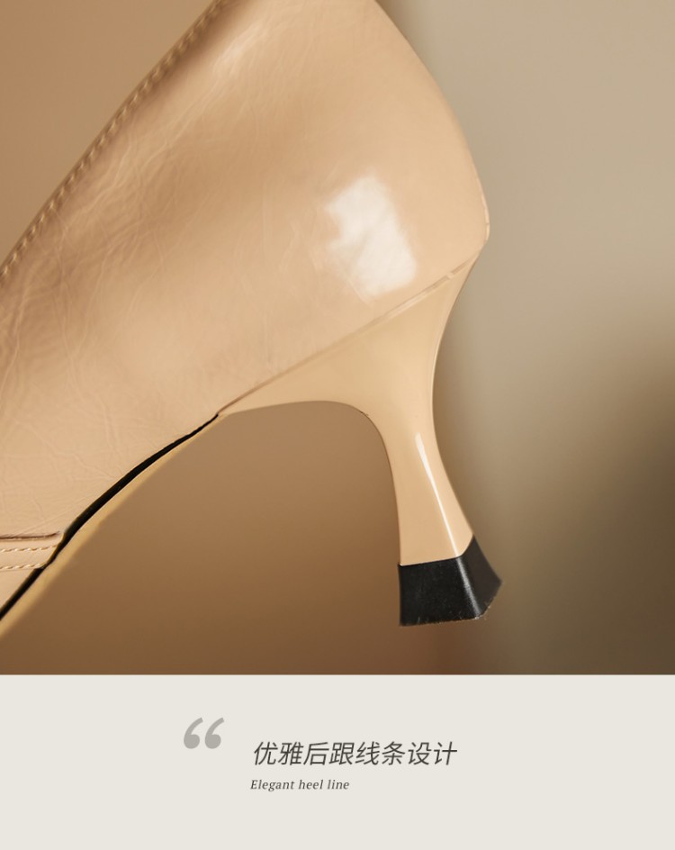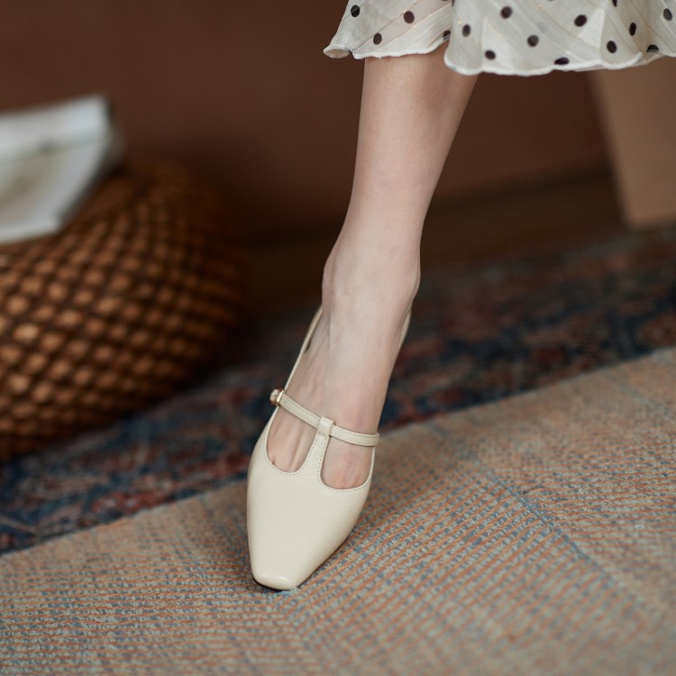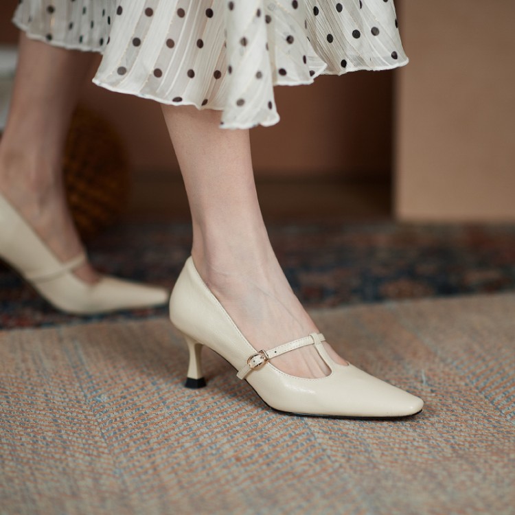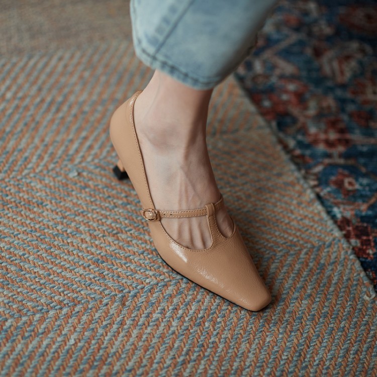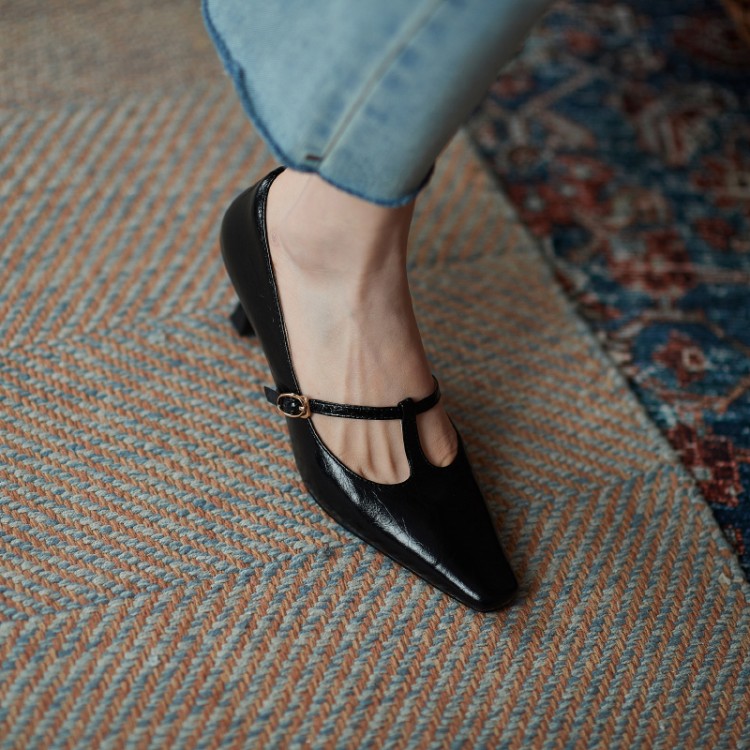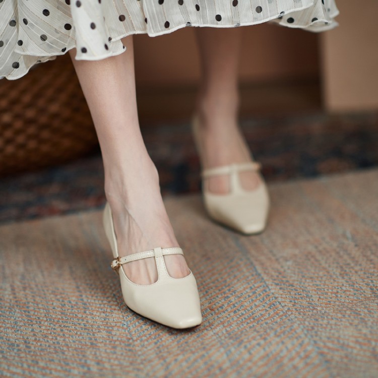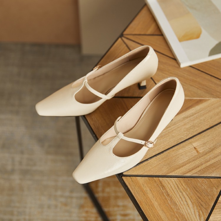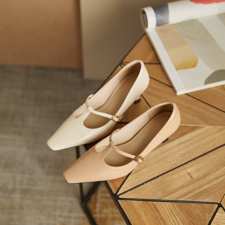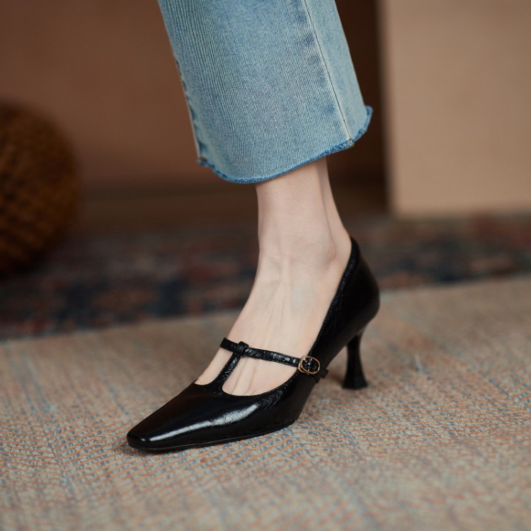 【预售5天】里外全皮简约丁字扣带高跟鞋春秋小方头单鞋女真皮细跟鞋MLJ&A316
