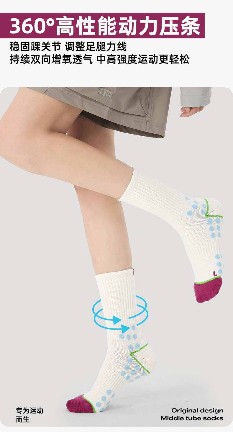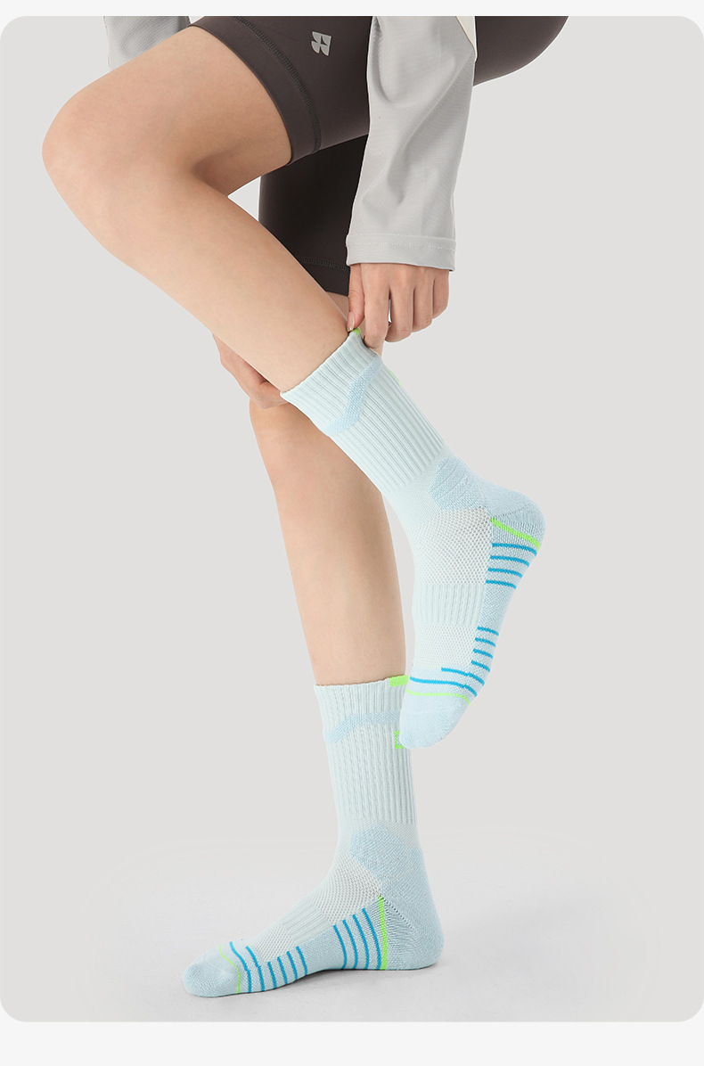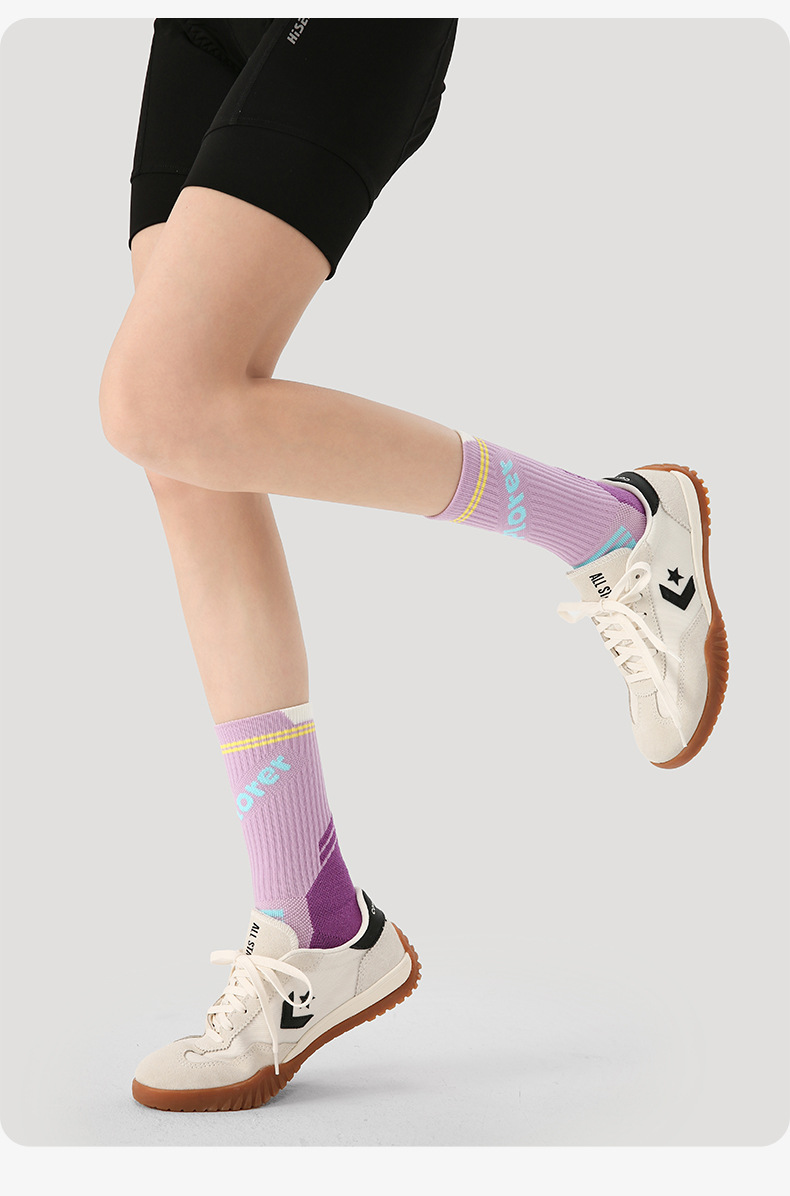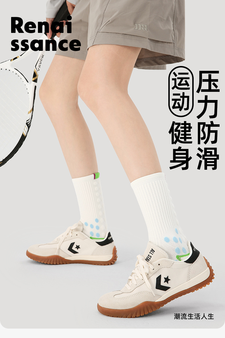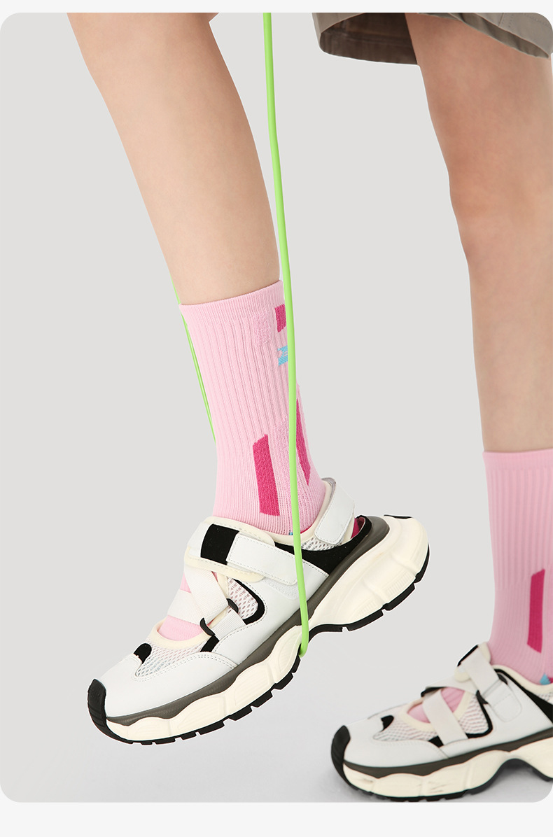 (49.9任选3件)Renaissance运动袜女士撞色潮袜吸汗防臭透气长筒袜毛巾底跑步袜(活动产品,收货7天内支持退换)
