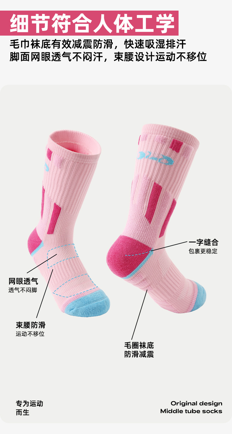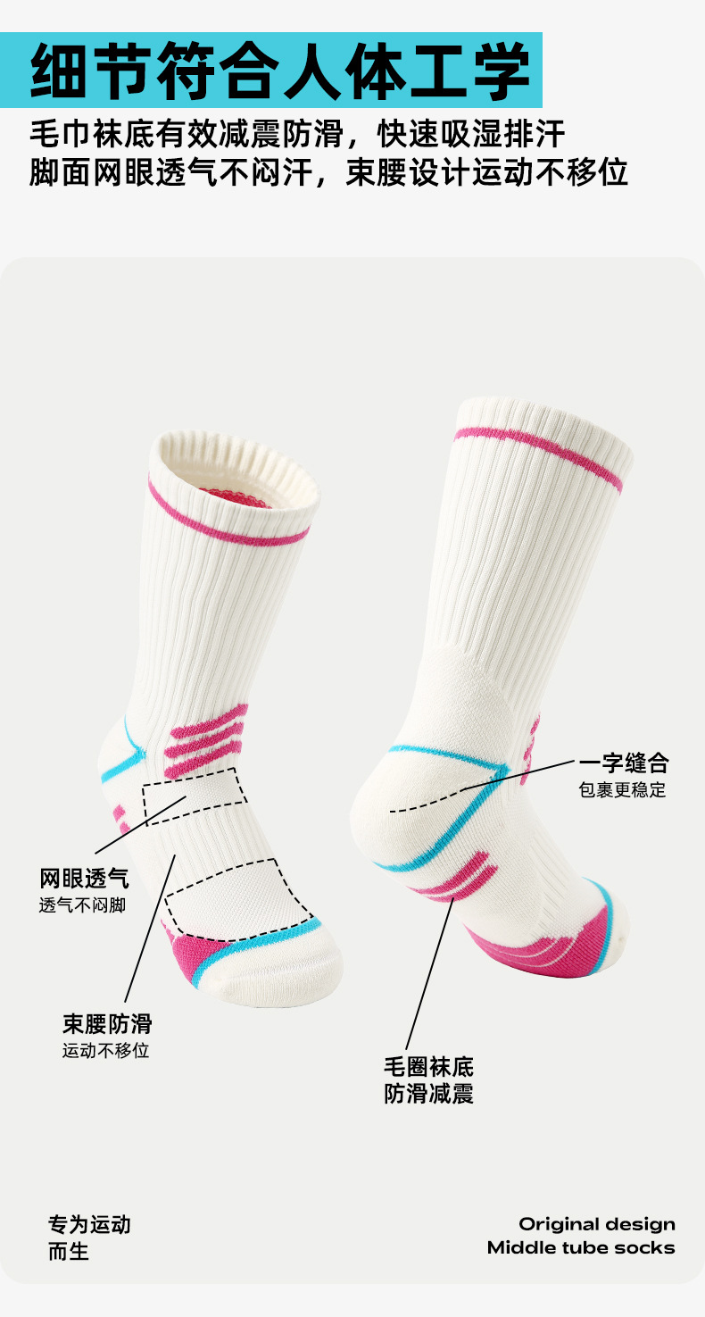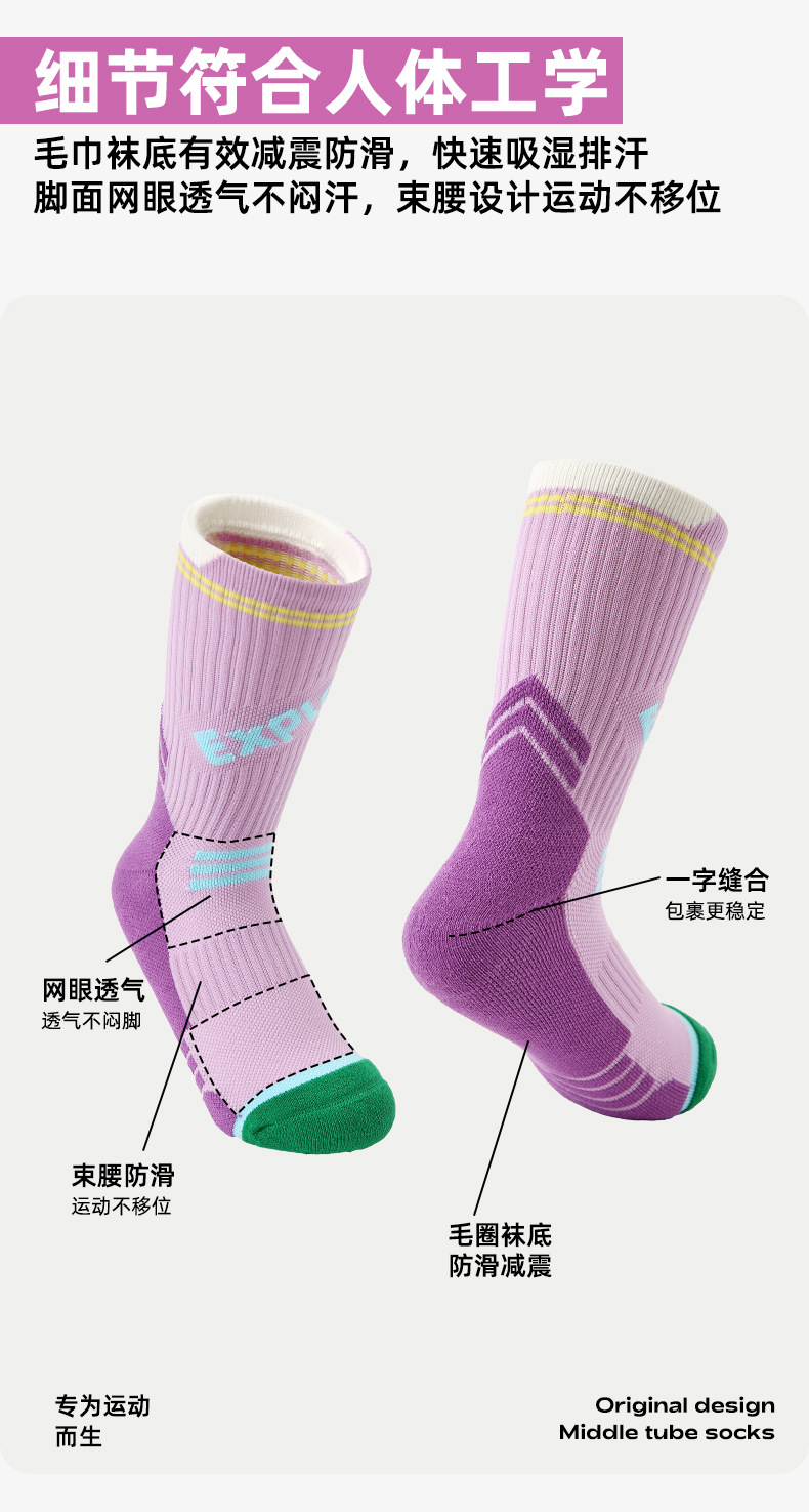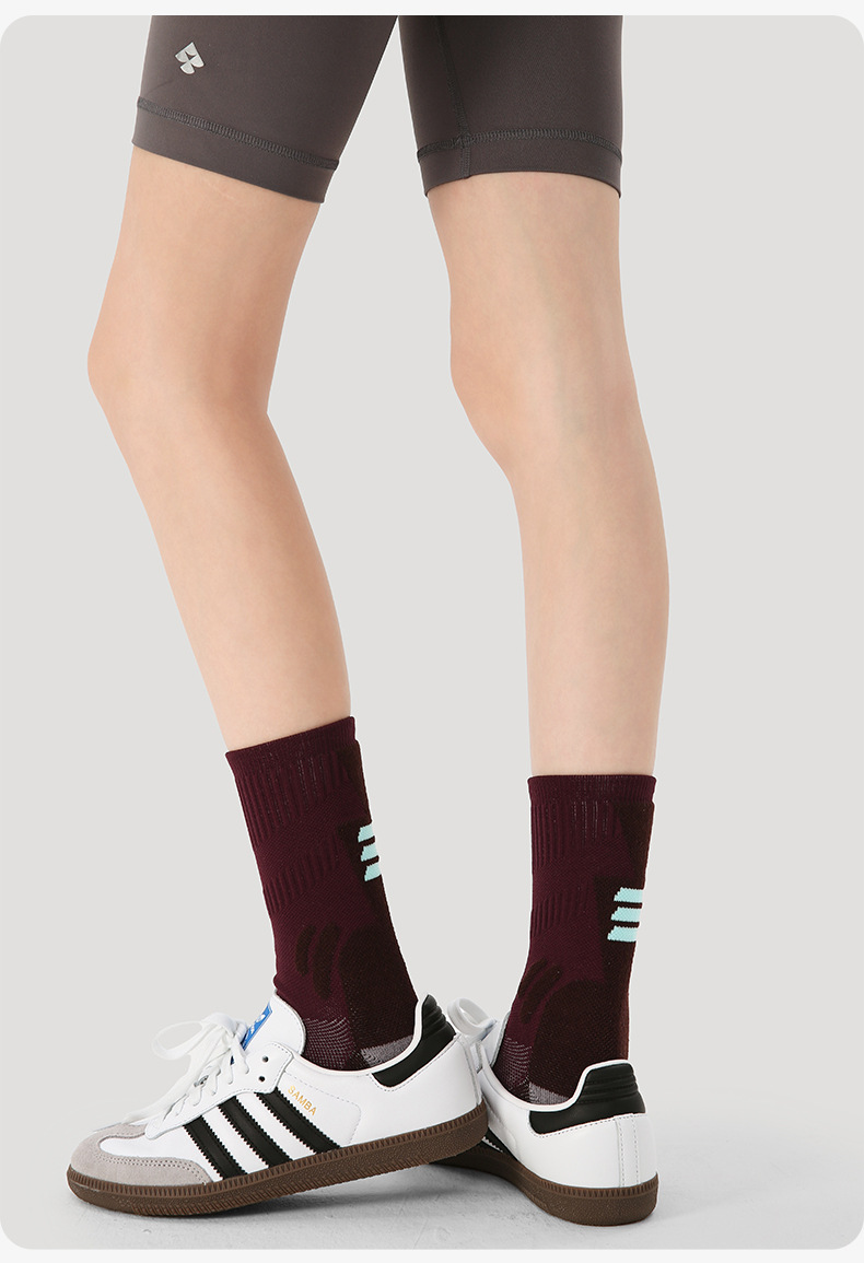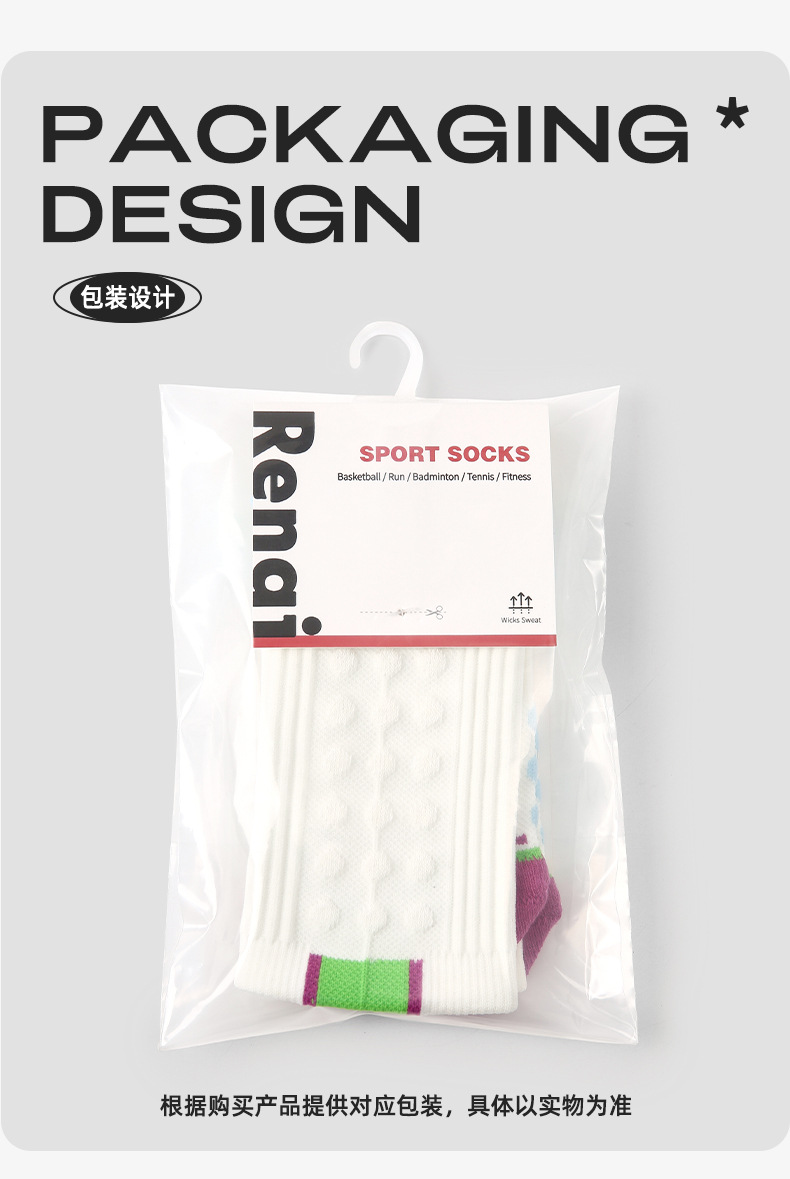 (49.9任选3件)Renaissance运动袜女士撞色潮袜吸汗防臭透气长筒袜毛巾底跑步袜(活动产品,收货7天内支持退换)