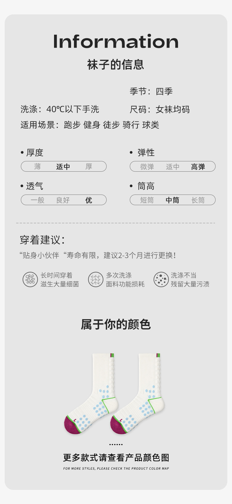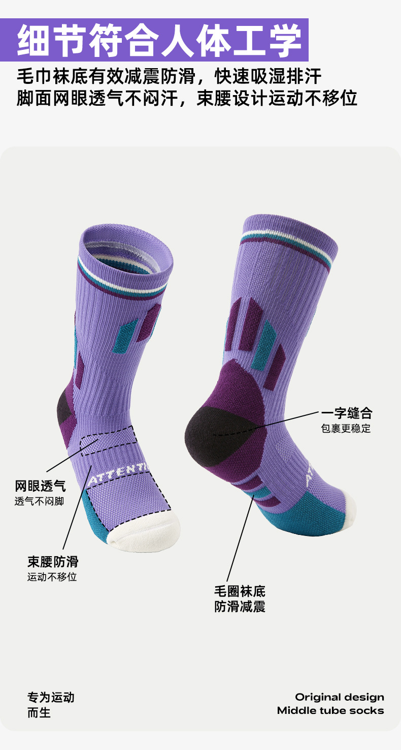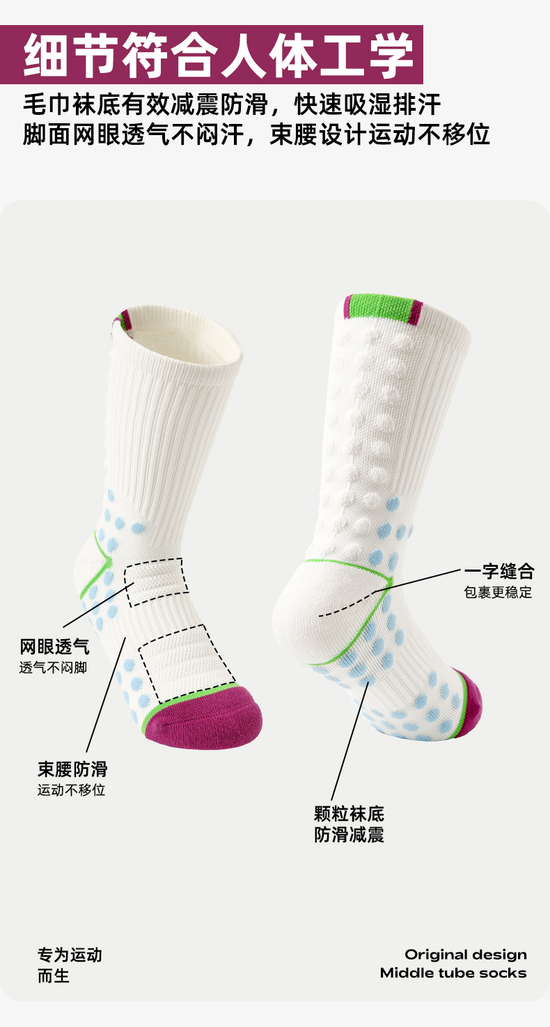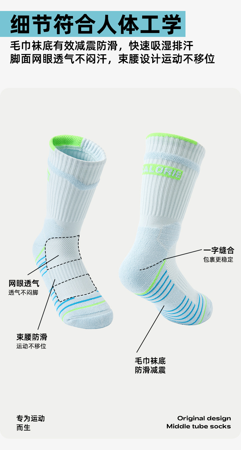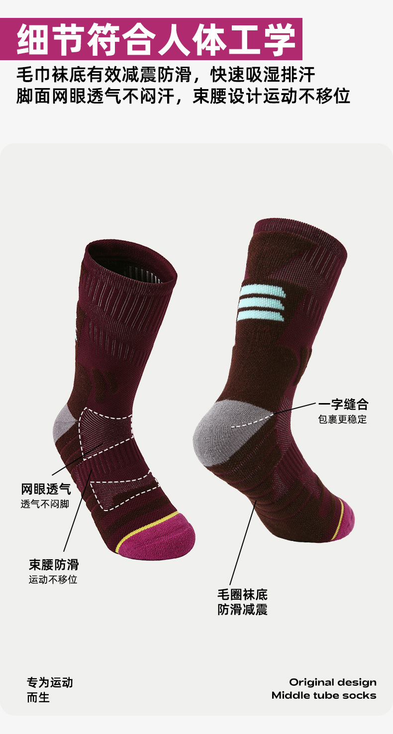(49.9任选3件)Renaissance运动袜女士撞色潮袜吸汗防臭透气长筒袜毛巾底跑步袜(活动产品,收货7天内支持退换)