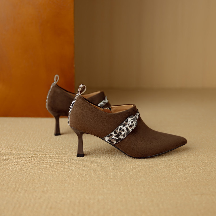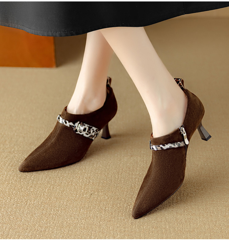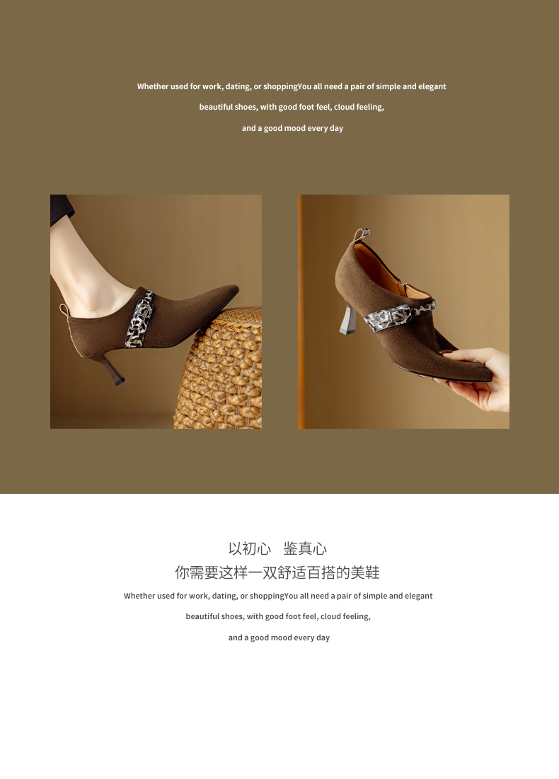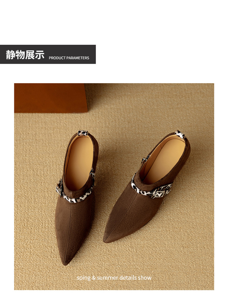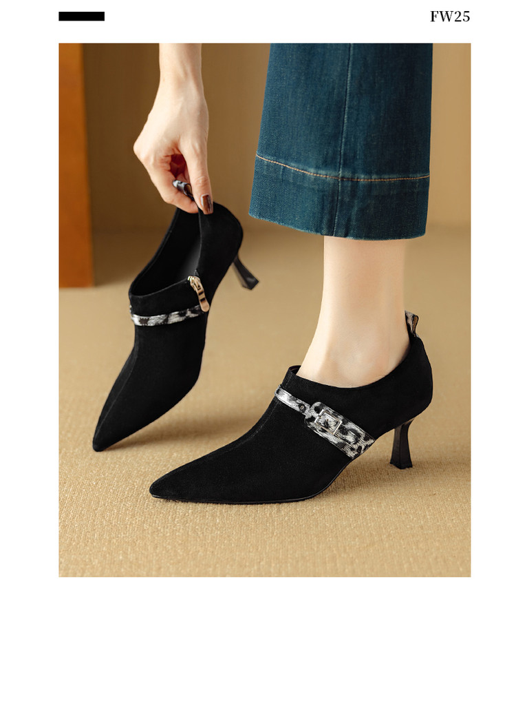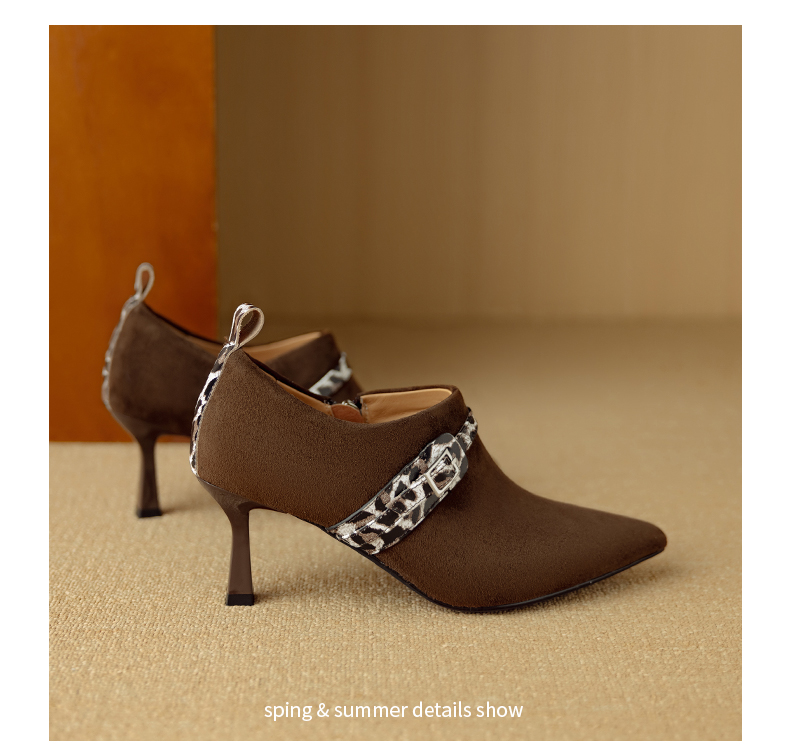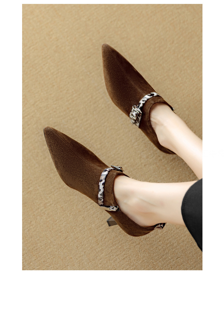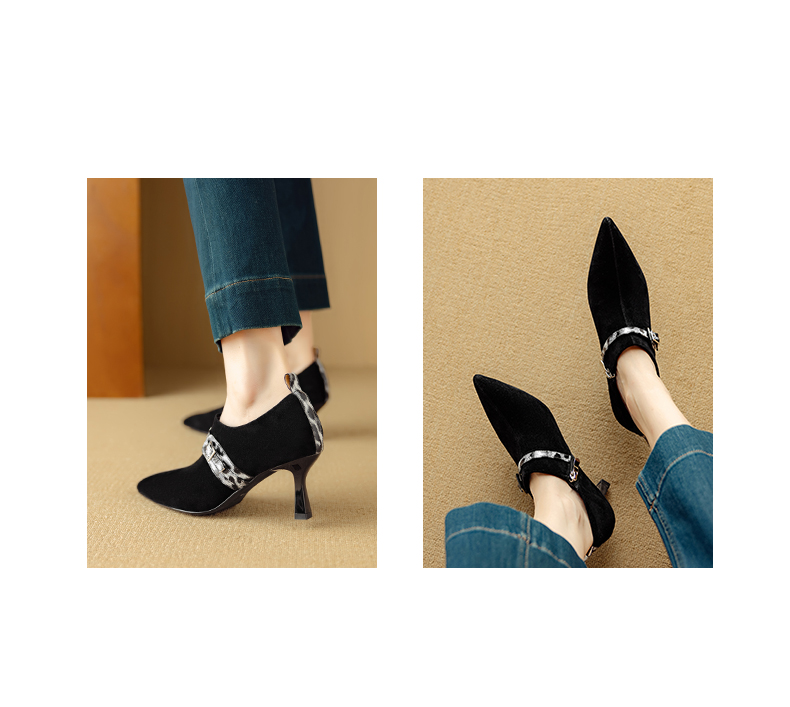 【预售5天】法式复古豹纹皮带扣显瘦尖头深口单鞋通勤羊翻皮高跟鞋女DB&M6590