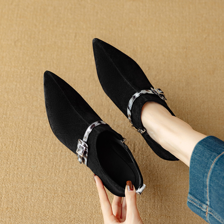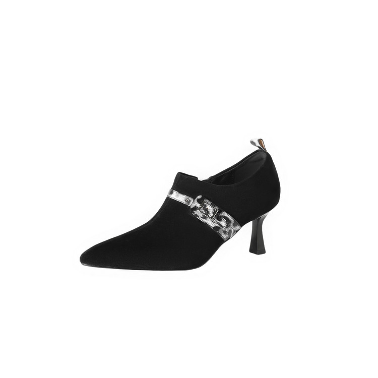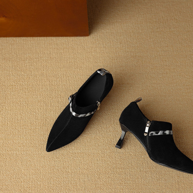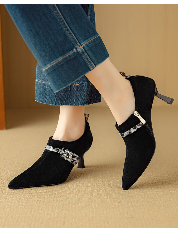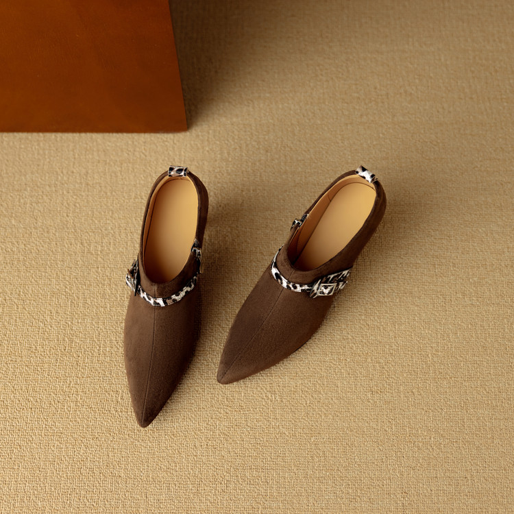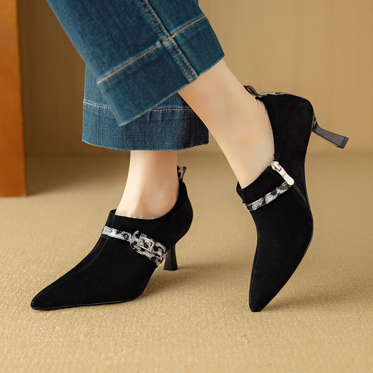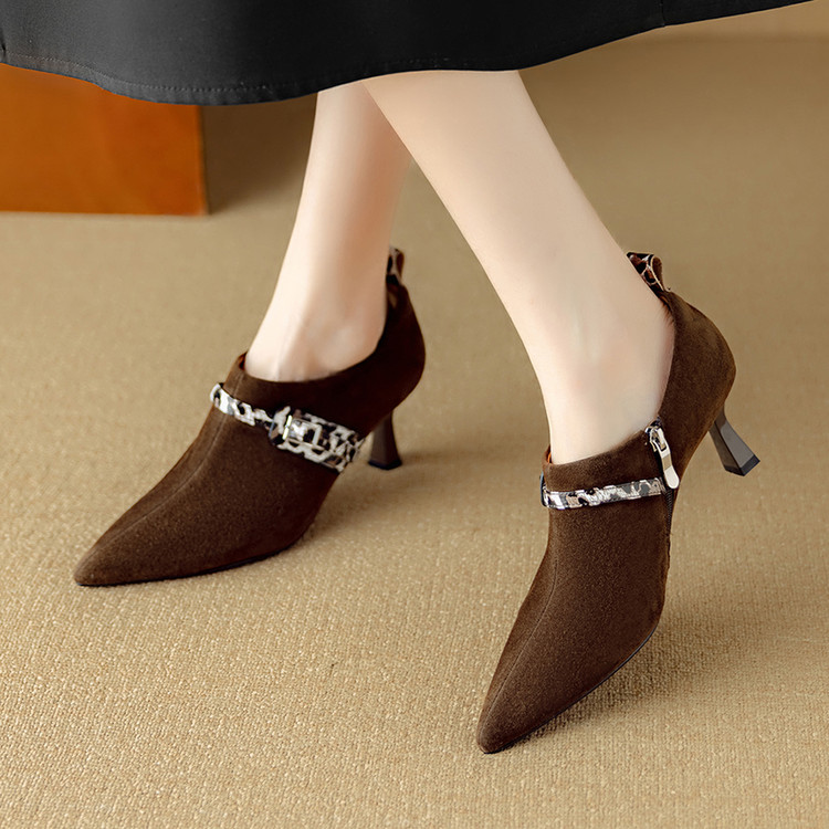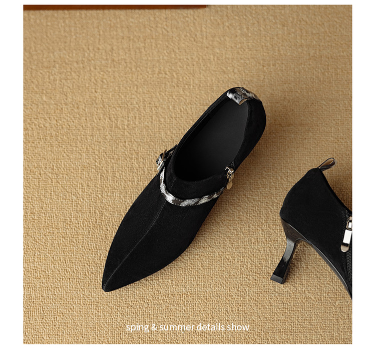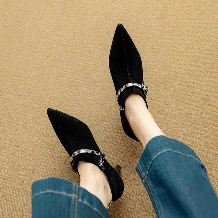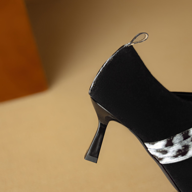 【预售5天】法式复古豹纹皮带扣显瘦尖头深口单鞋通勤羊翻皮高跟鞋女DB&M6590
