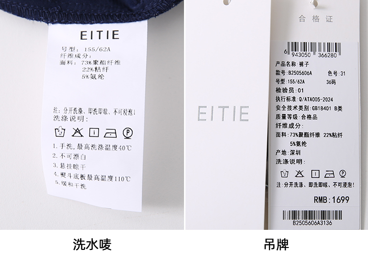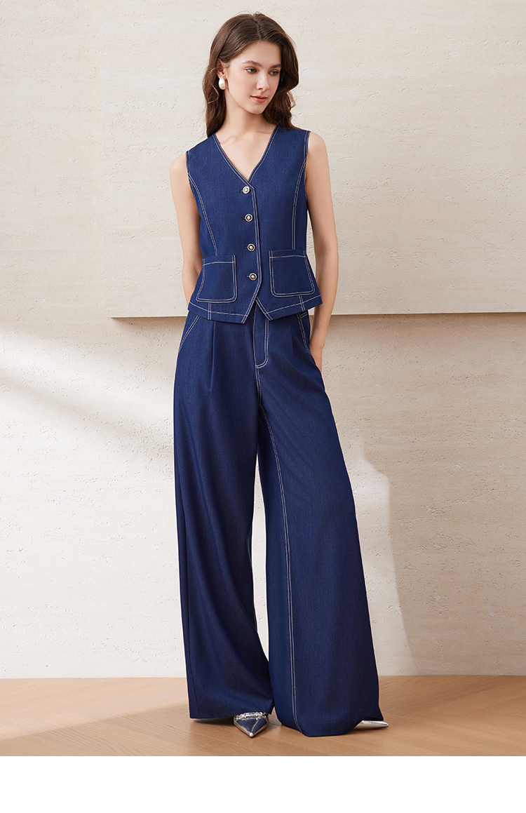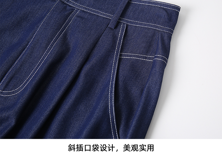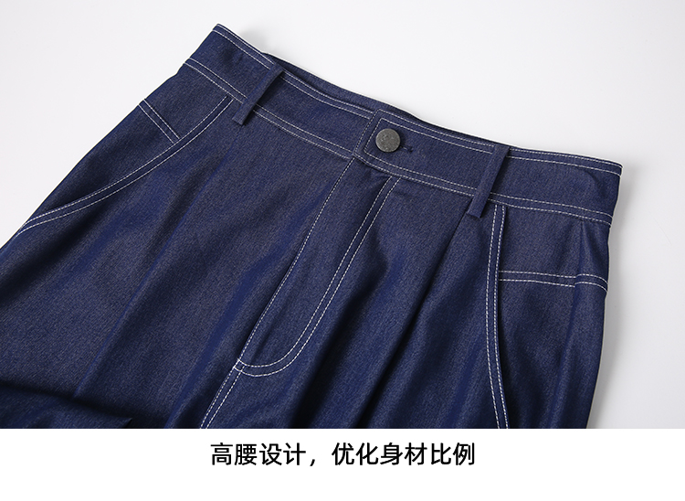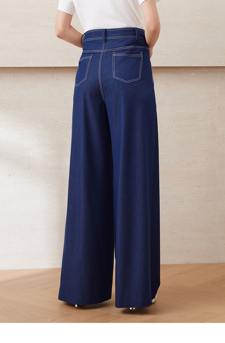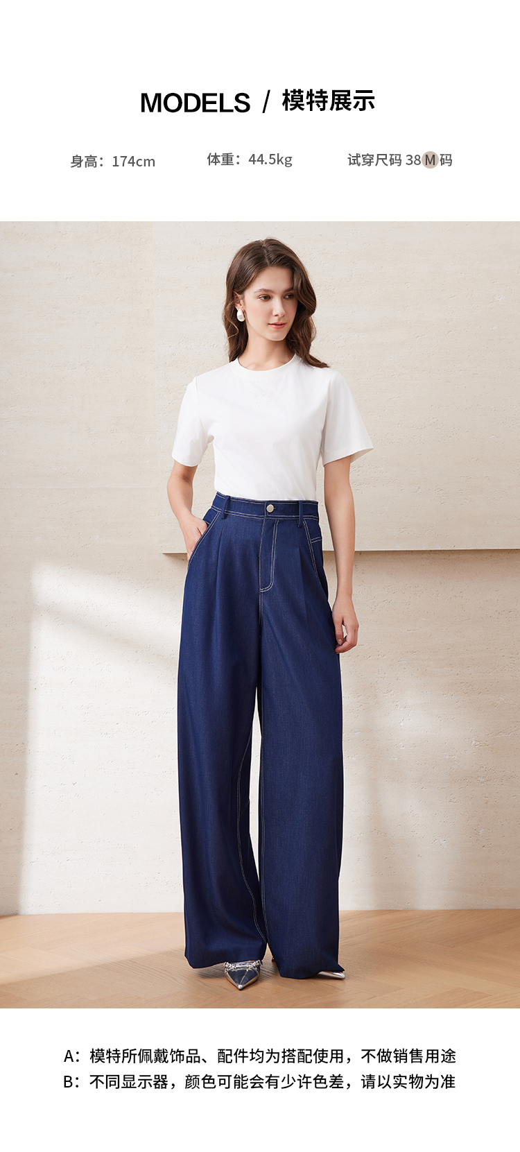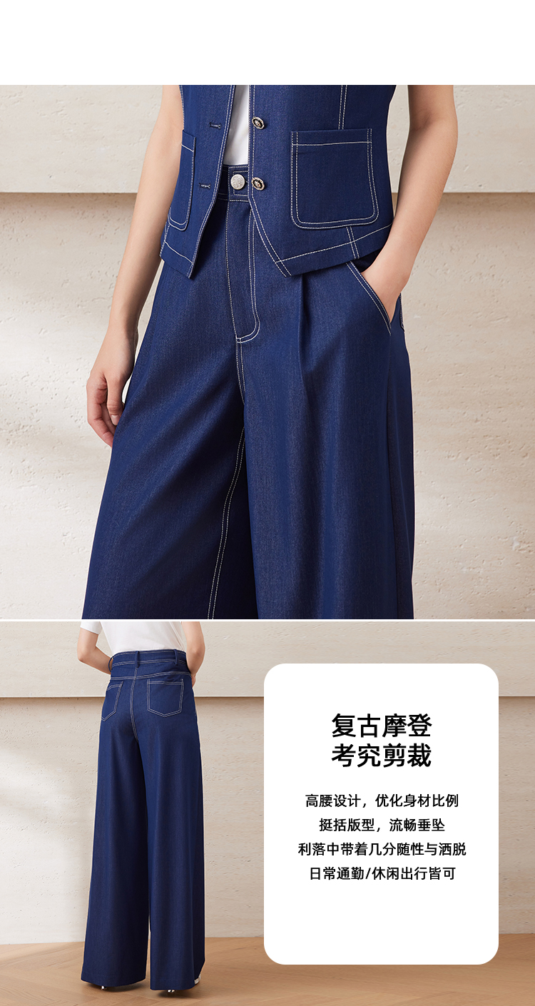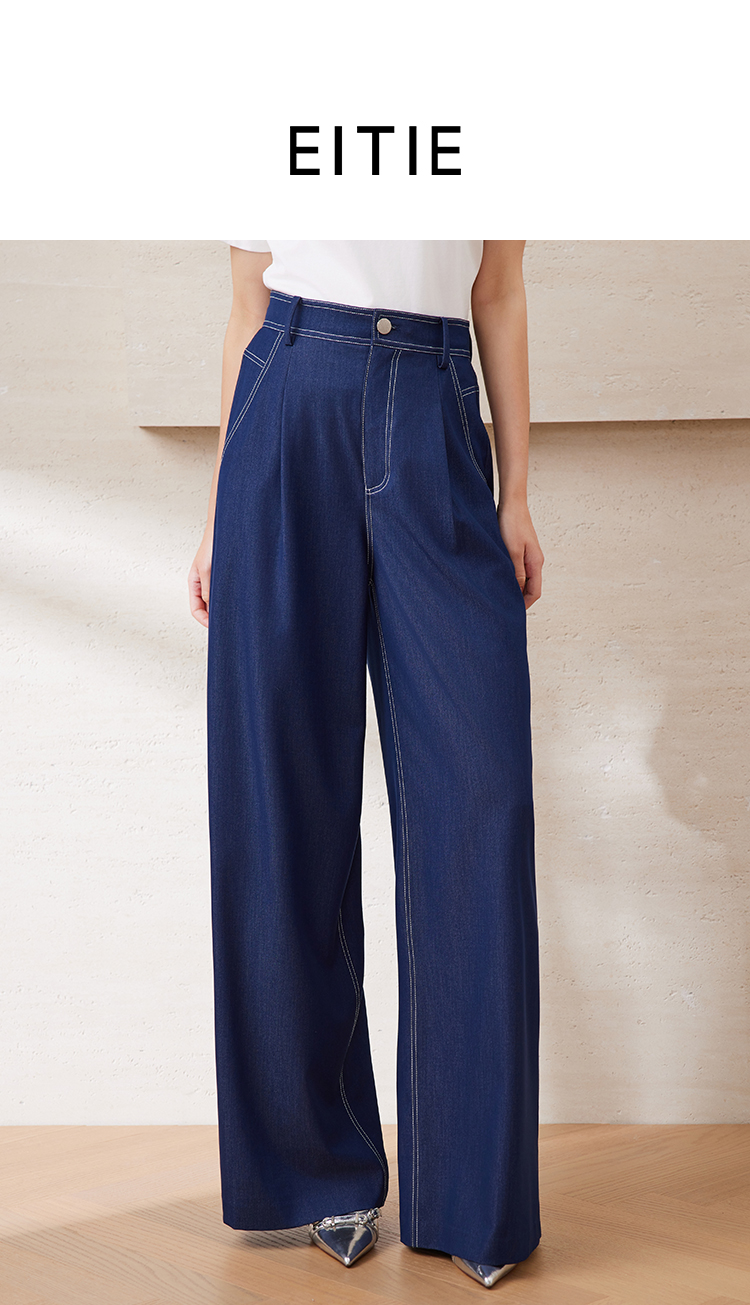 EITIE爱特爱时尚复古撞色走线高腰利落阔腿牛仔裤2025夏季新款B2505606A
