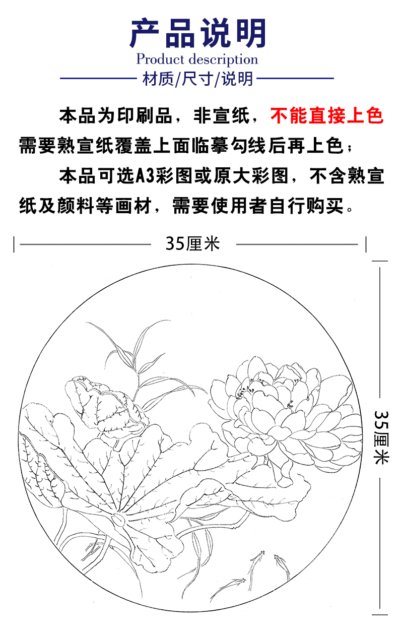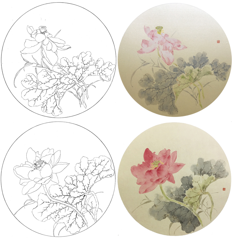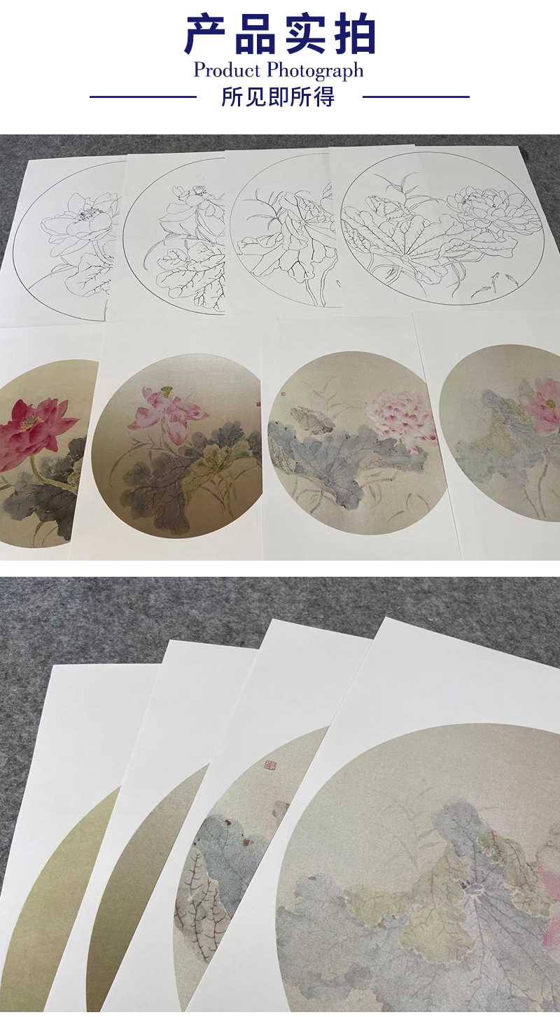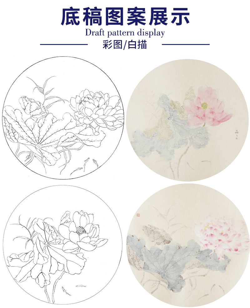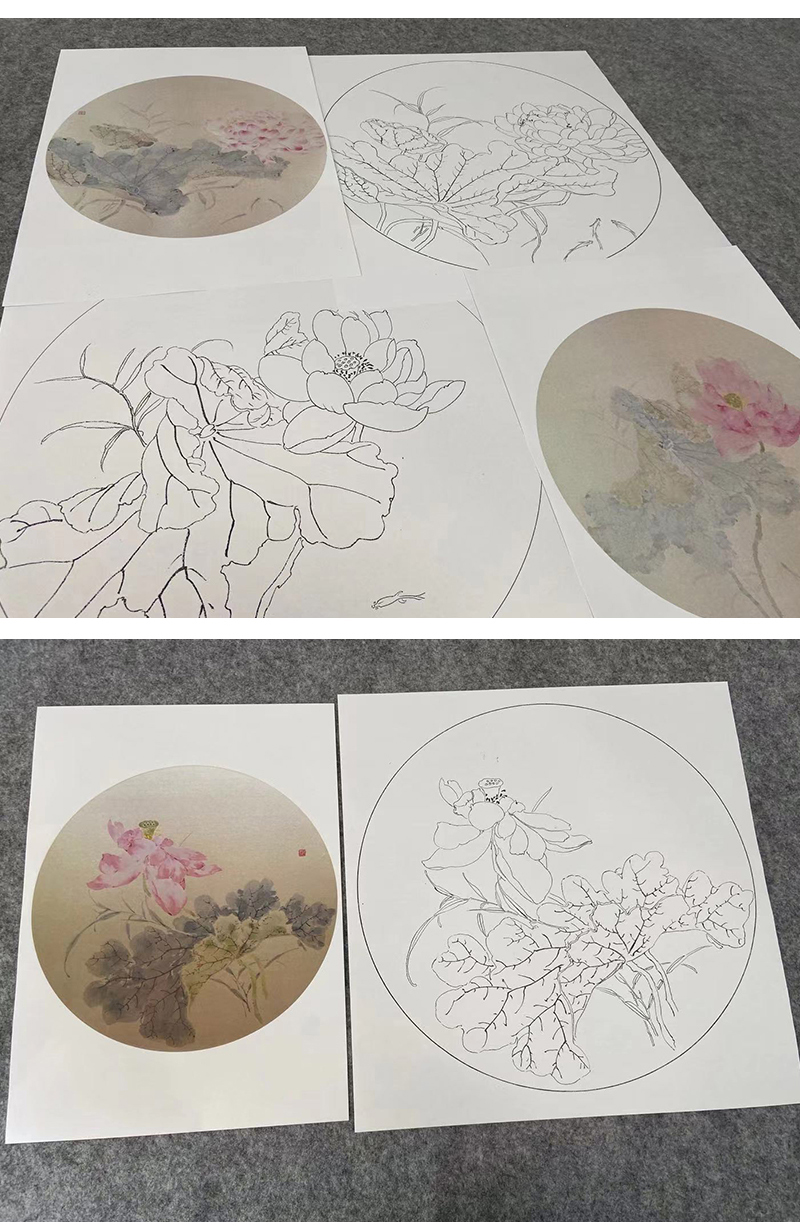 张莉莉工笔画白描底稿荷花一套四幅初学者尺寸35*35厘米TZ02