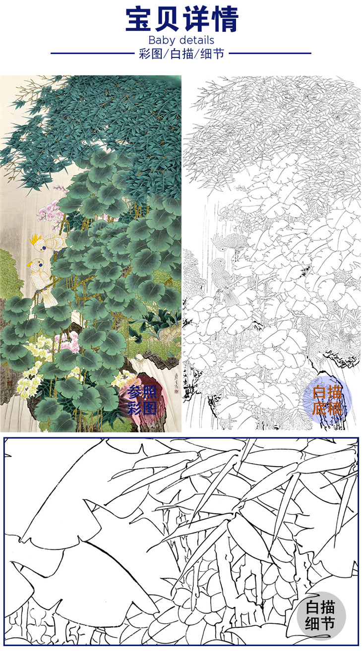 竖幅工笔花鸟白描底稿-鹦鹉-周彦生《雨林传声》-多种白描尺寸可选-QN11