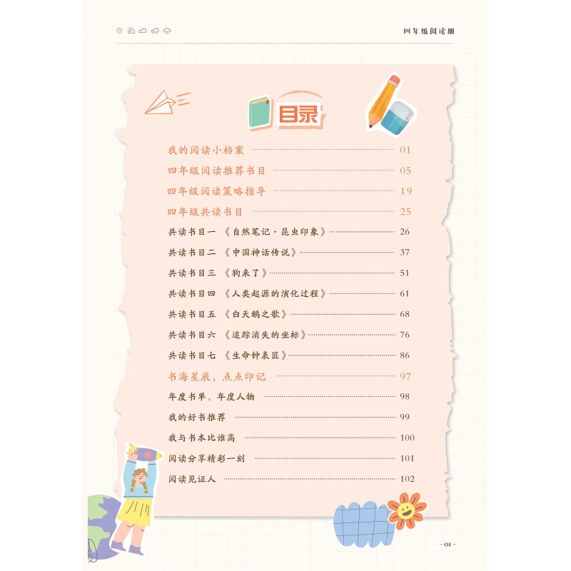 阅读手册按照年级共分五本,每本分五大板块:阅读小档案、阅读推荐书目、阅读策略指导、共读书目与阅读单、书海成长记。为学生提供了广阔的阅读视野,涵盖不同题材与风格的书籍,满足学生多元化的阅读需求,激发阅读兴趣,从多角度帮助学生培养良好的阅读习惯与自我管理能力,实现自我成长与提升。此外,读策略指导板块针对不同年级学生的阅读水平,提供专属的阅读方法,帮助学生掌握科学的阅读技巧,提高阅读理解、分析与鉴赏能力,使学生在老师的引导下与全班同学共同阅读,促进学生之间的交流与合作,提升阅读综合能力。