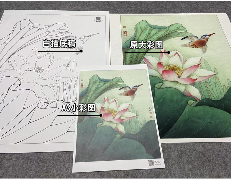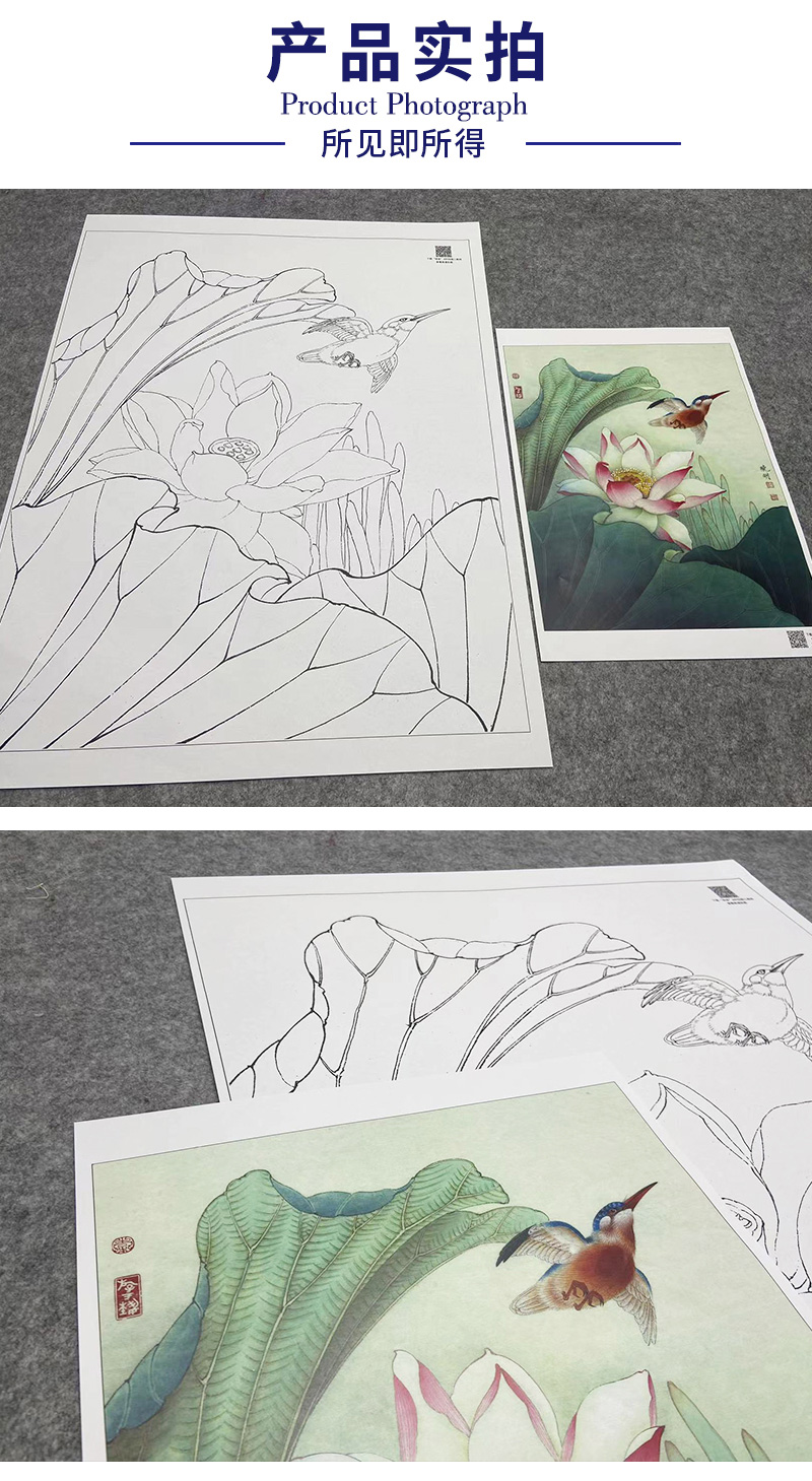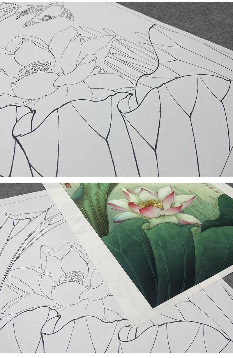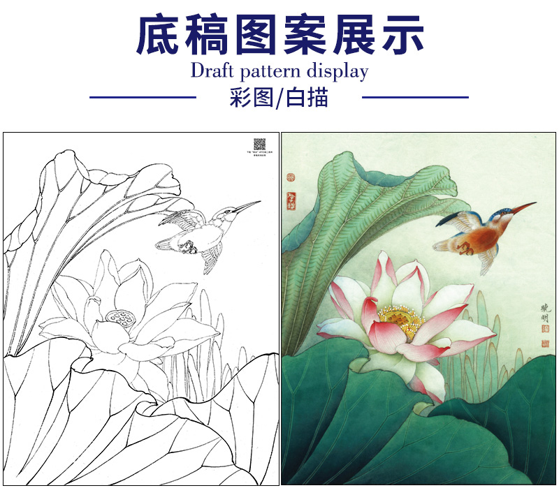 【大彩图】李晓明工笔画白描底稿《菡萏新花》荷花临摹勾线花鸟线稿K087