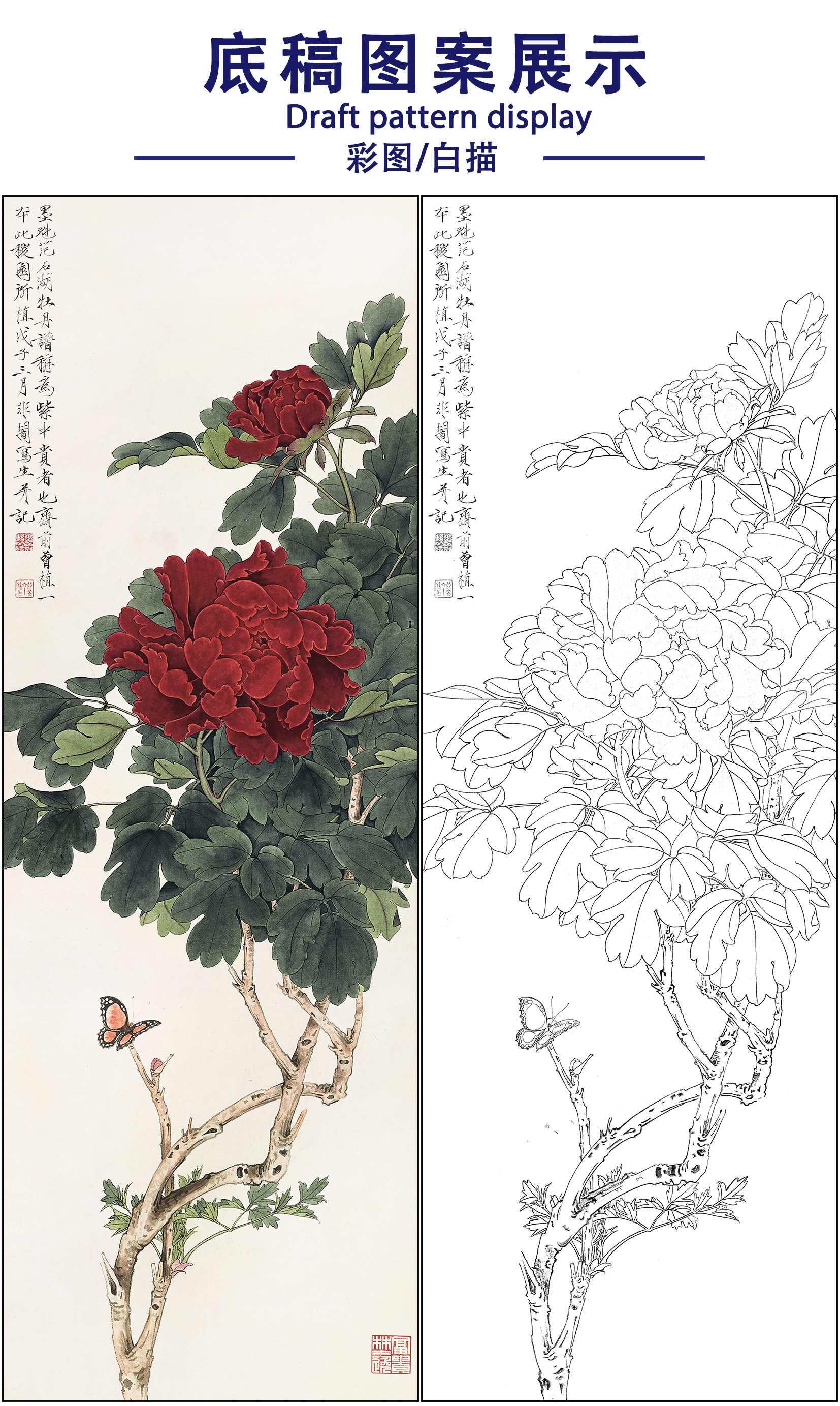工笔画白描底稿于非闇花鸟《牡丹》临摹勾线高清打印稿FA54
