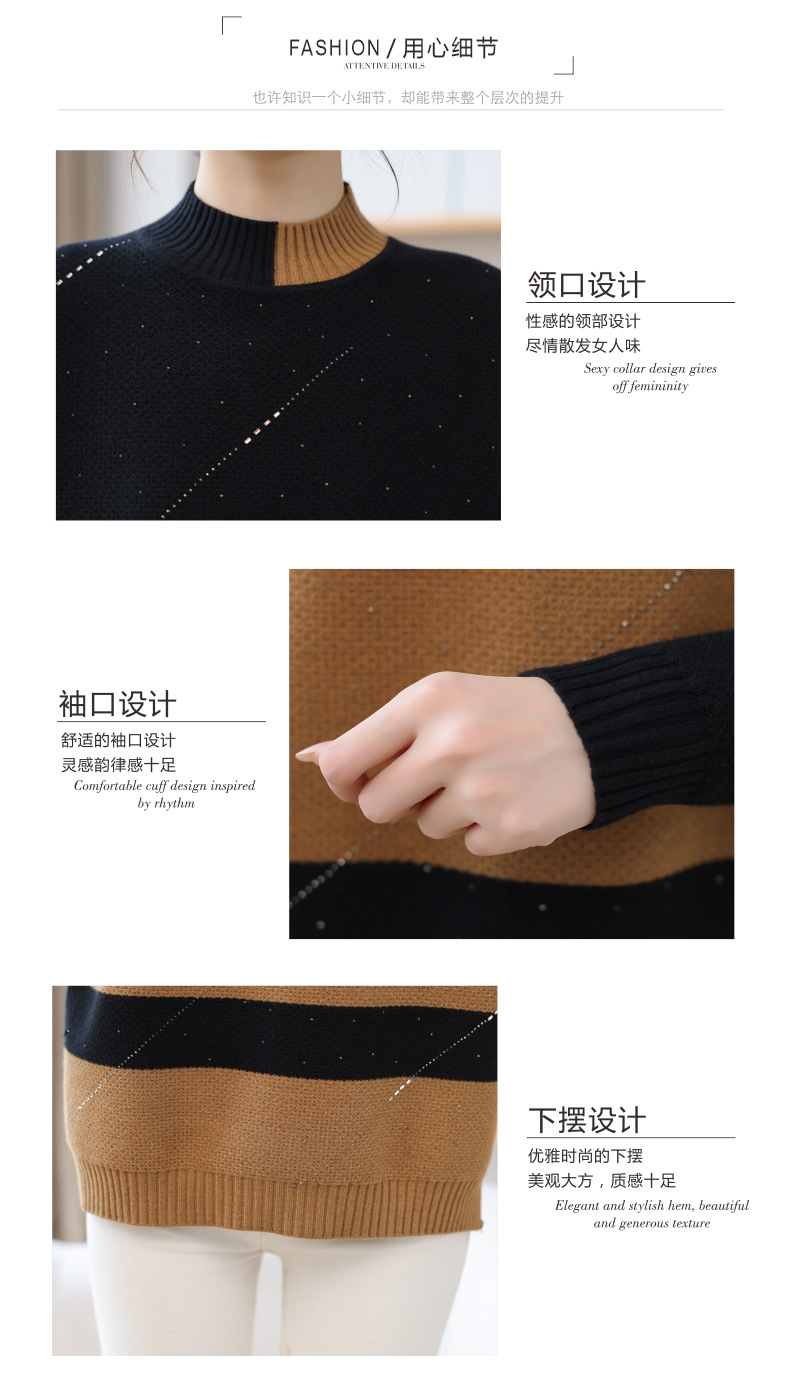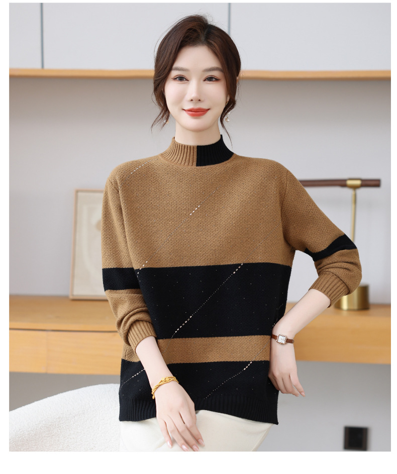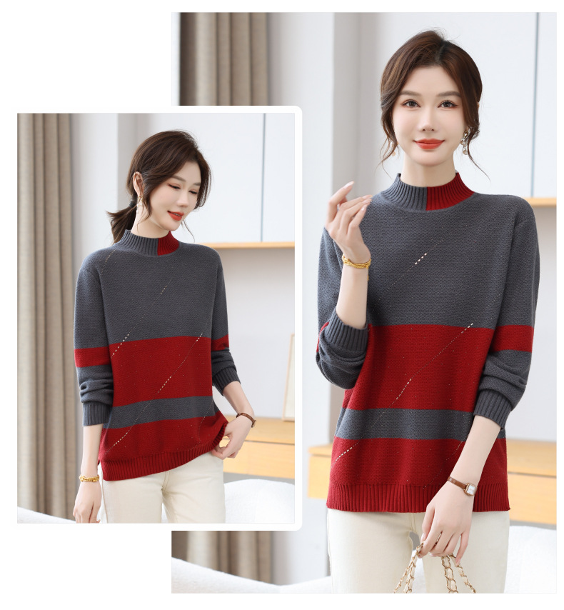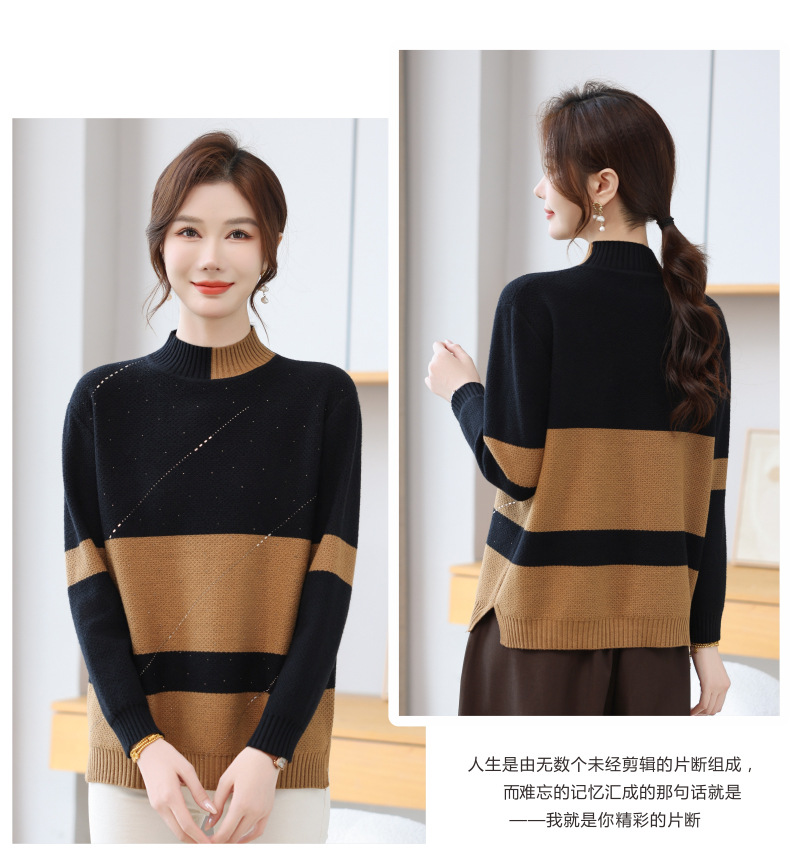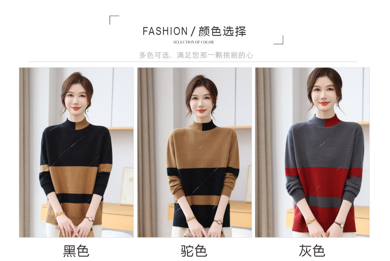 CC 28-1582半高领条纹针织衫撞色宽松显瘦毛衣