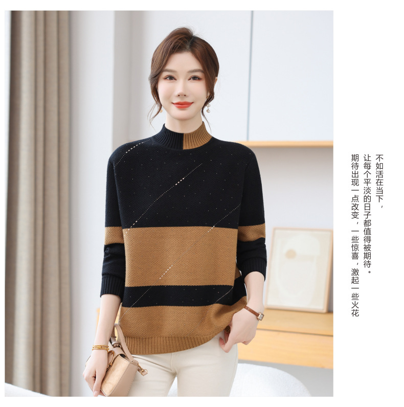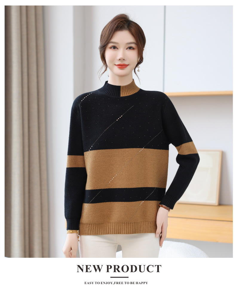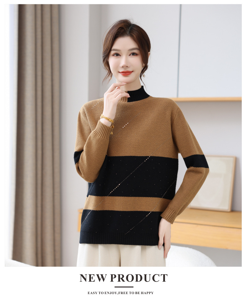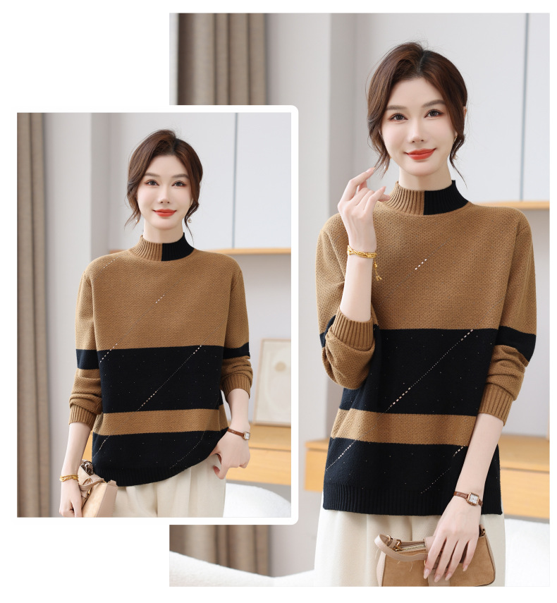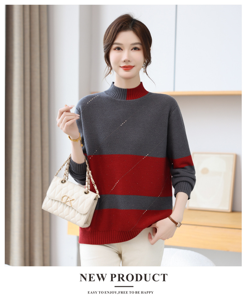 CC 28-1582半高领条纹针织衫撞色宽松显瘦毛衣