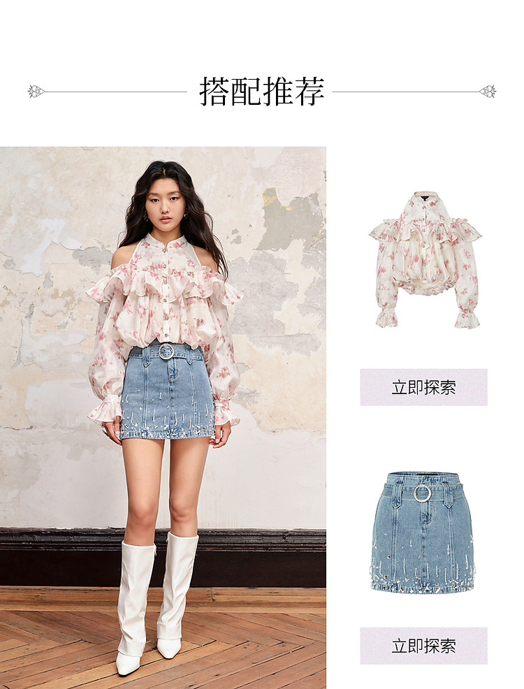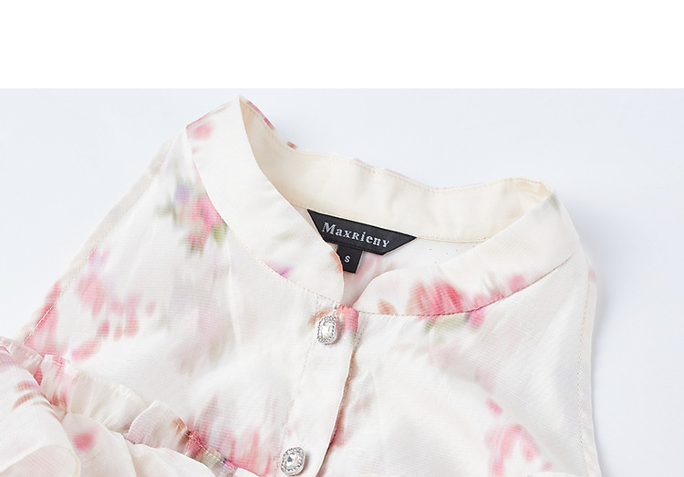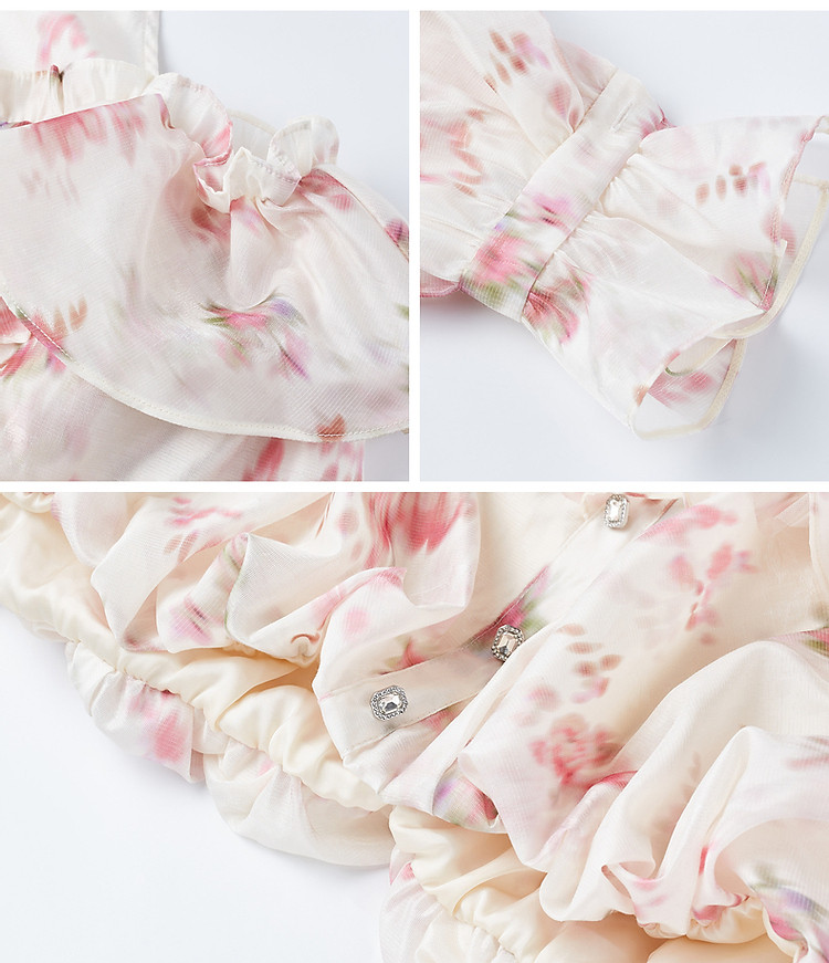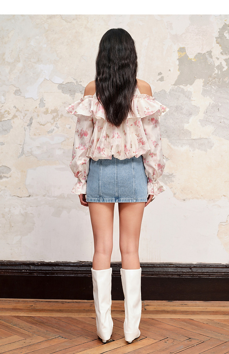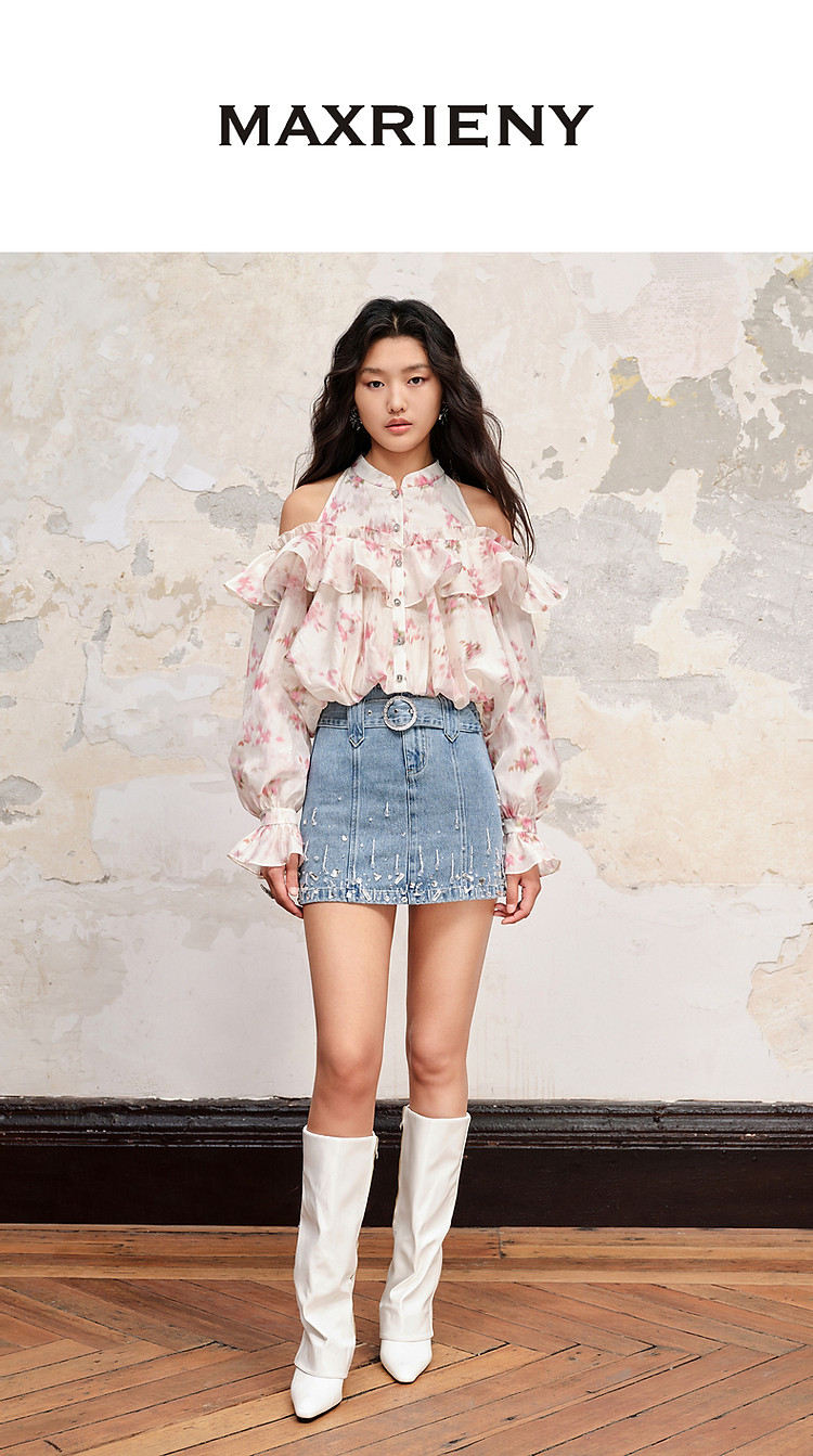 甜美浪漫感晕染印花挂脖荷叶边长袖上衣MC88TP612