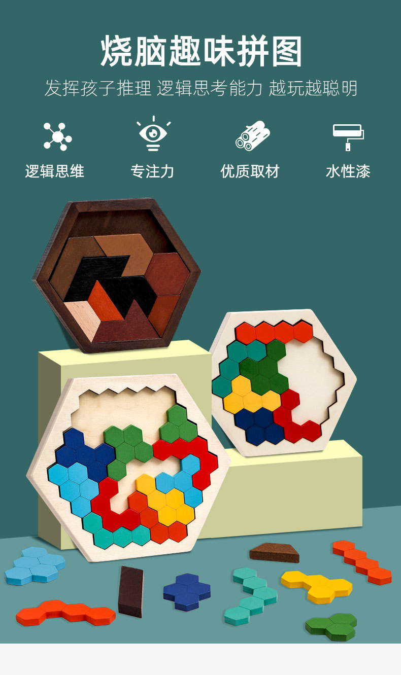 【烧脑趣味拼图,越玩越聪明】多边形几何拼图儿童益智拼装,七巧板异形积木锻炼动手动脑玩具,彩色百变拼图-SH