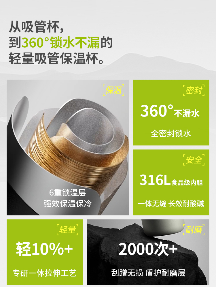 蕉下轻便大容量吸管保温杯LC80224(新款)