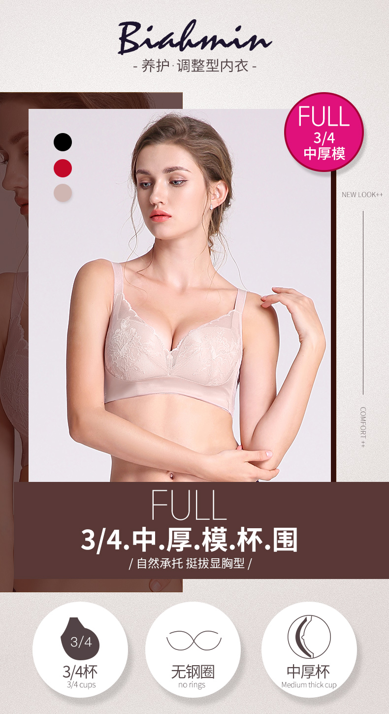 贝佳人新品厚红色内衣无钢圈胸衣聚拢调整型内衣女小胸显大文胸