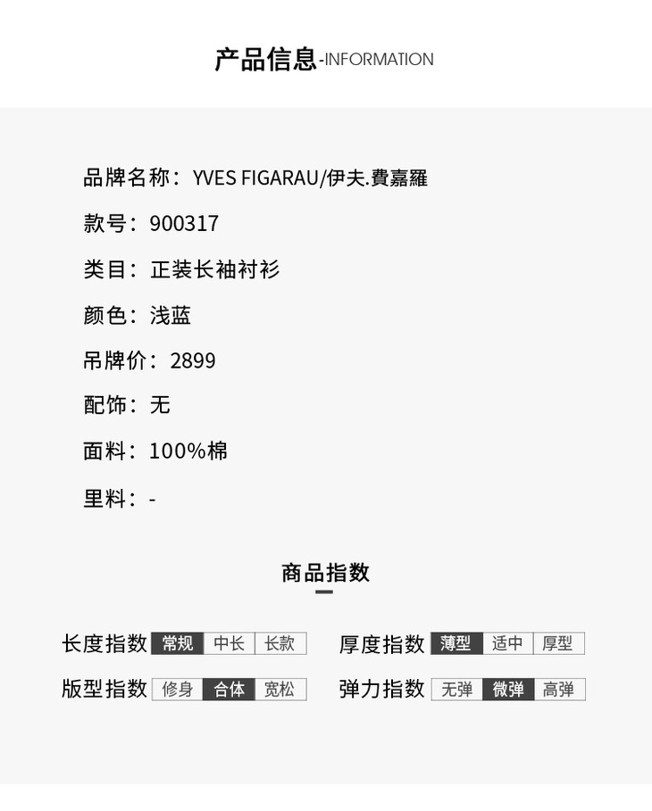 YvesFigarau伊夫·费嘉罗秋冬新款100%棉条纹正装职业上班穿长袖衬衫900317