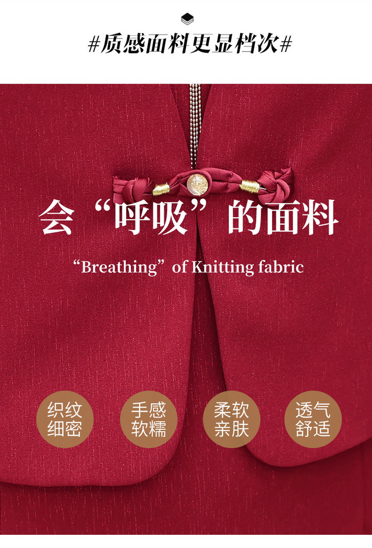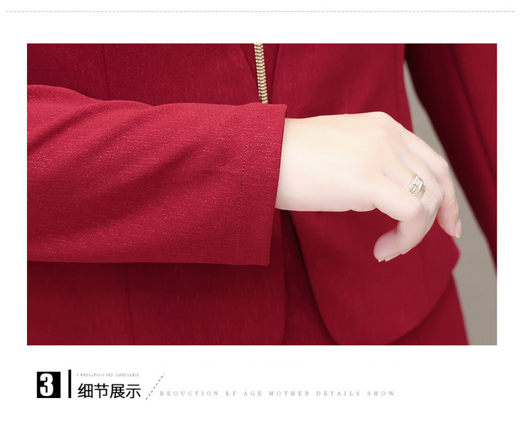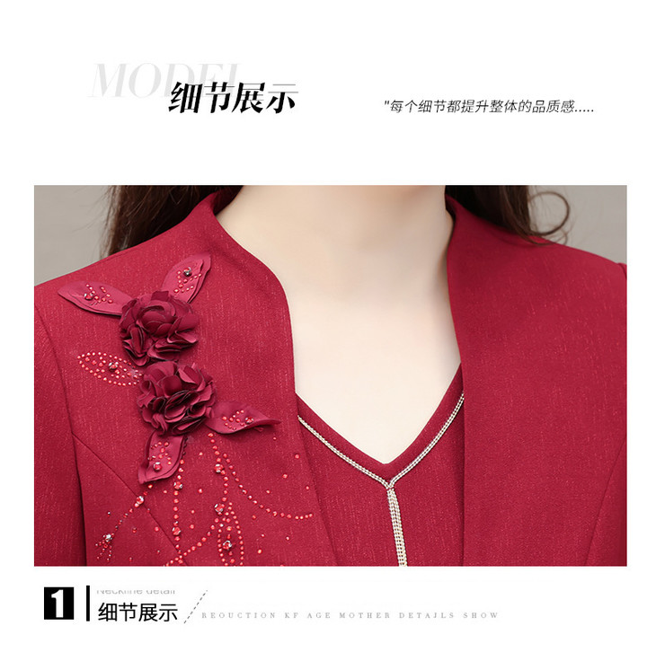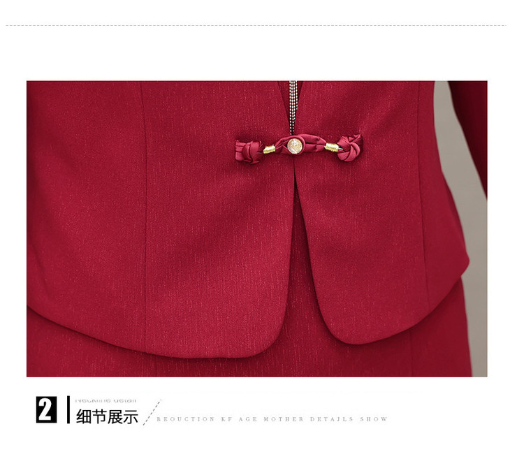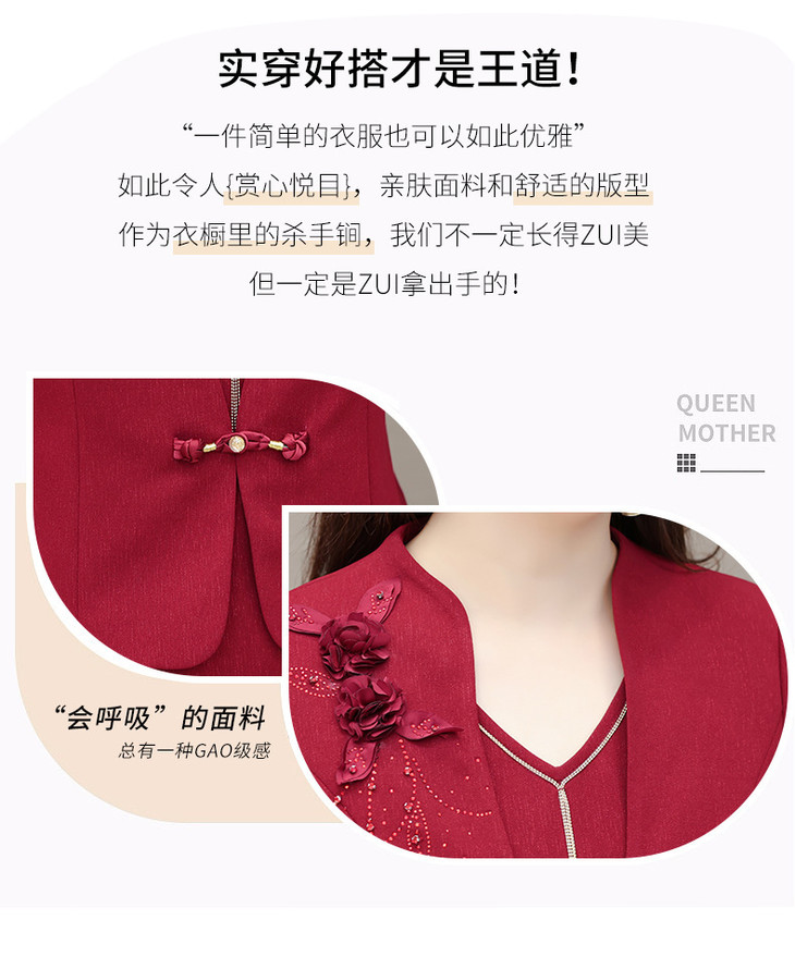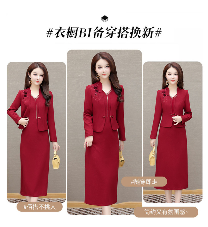 大码红色两件套连衣裙,秋季洋气时尚修身喜婆婆过膝长裙QYM-AH-5225JLNB011