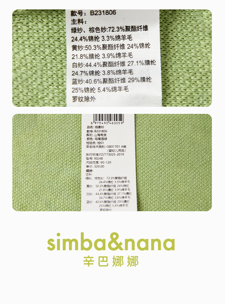 【辛巴娜娜】simbanana男小童套头毛衣儿童打底外穿新款宝宝针织衫
