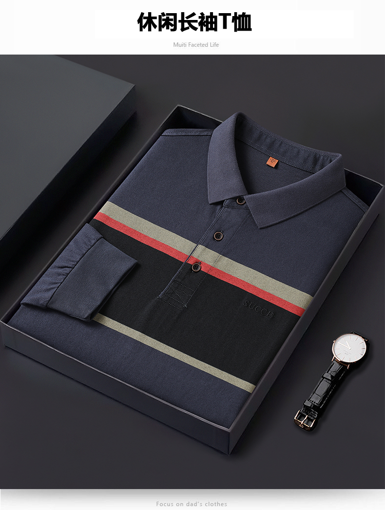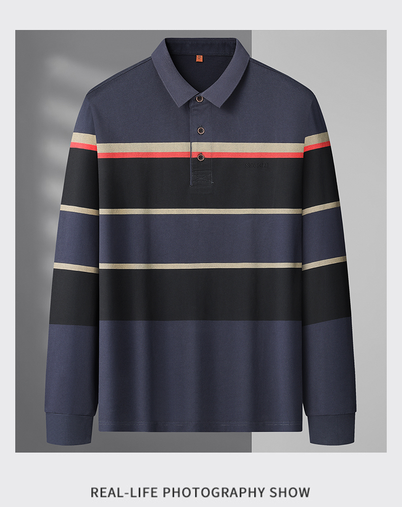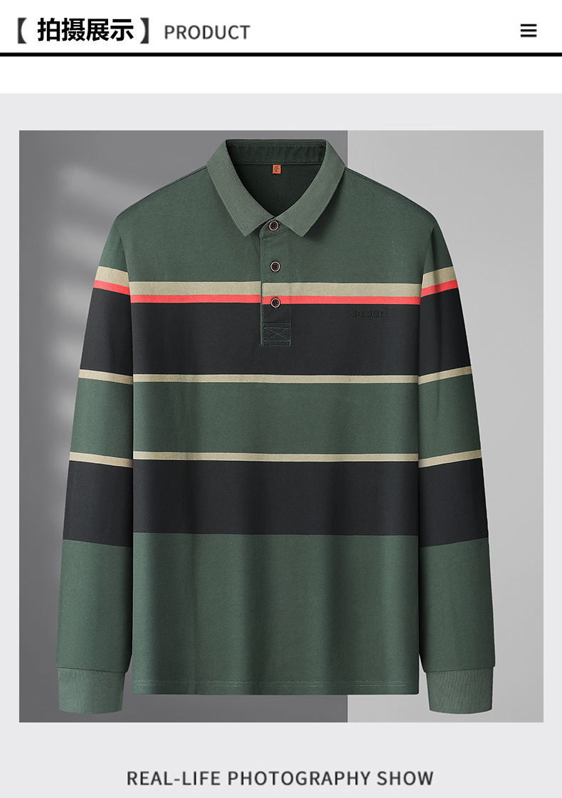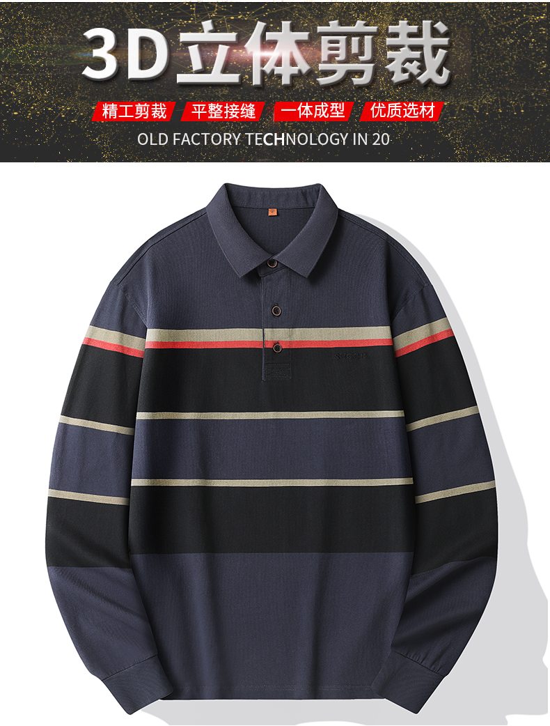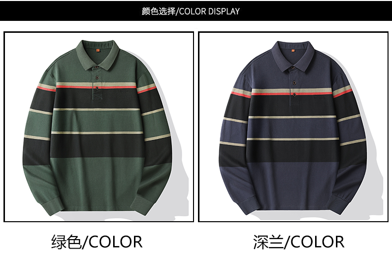 【新款DWP】大依优型大码条纹长袖Polo衫翻领男装加肥加大体恤大号上衣胖子
