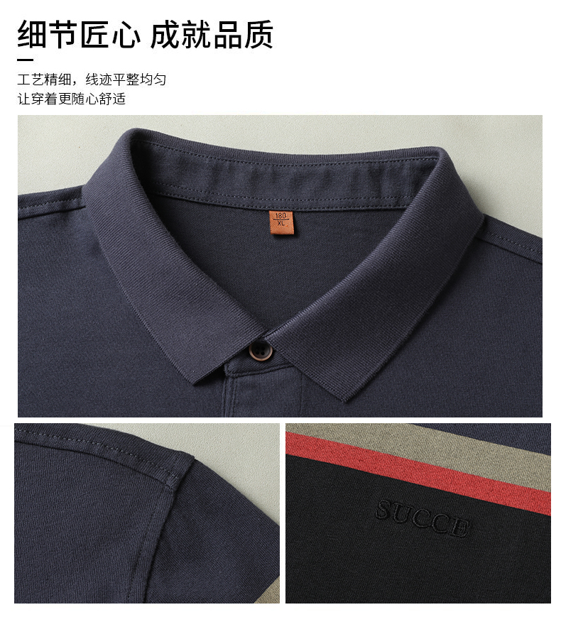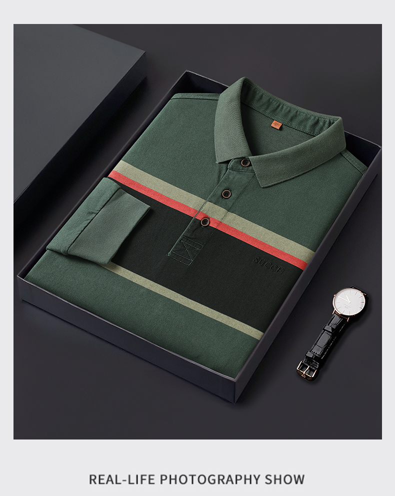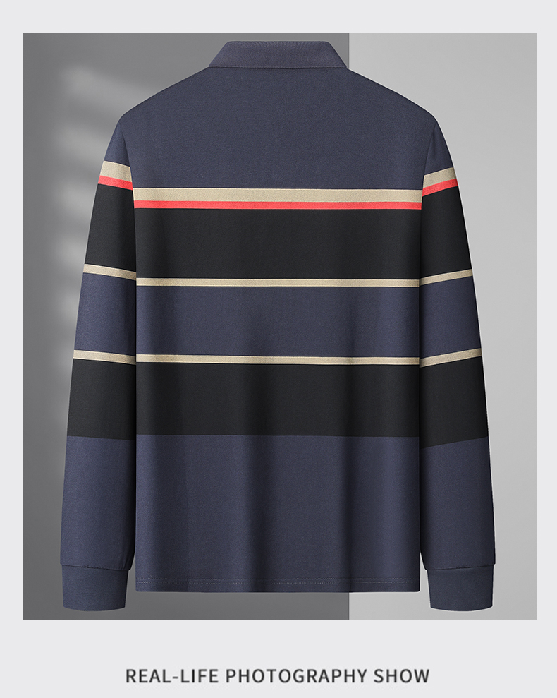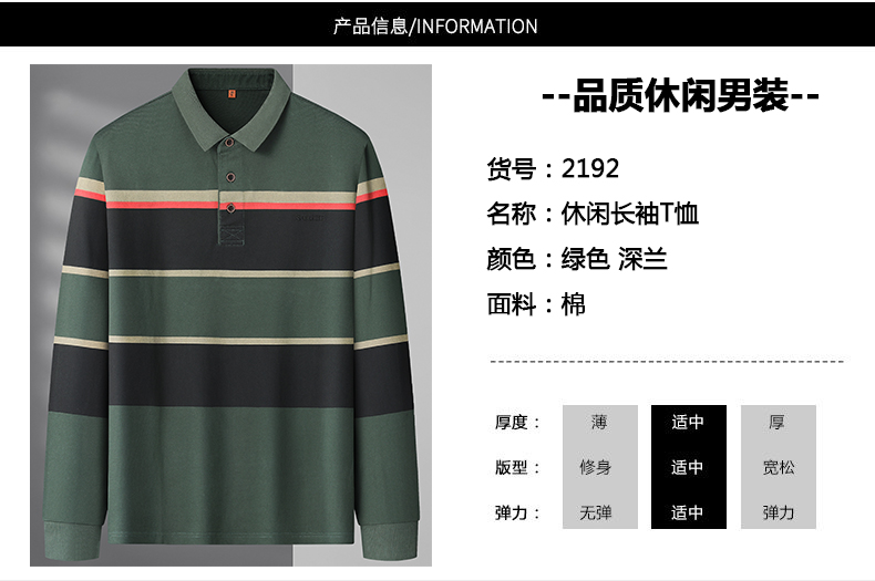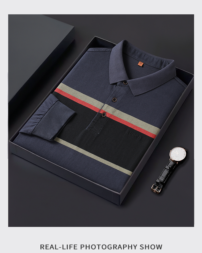 【新款DWP】大依优型大码条纹长袖Polo衫翻领男装加肥加大体恤大号上衣胖子