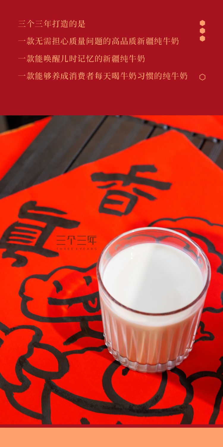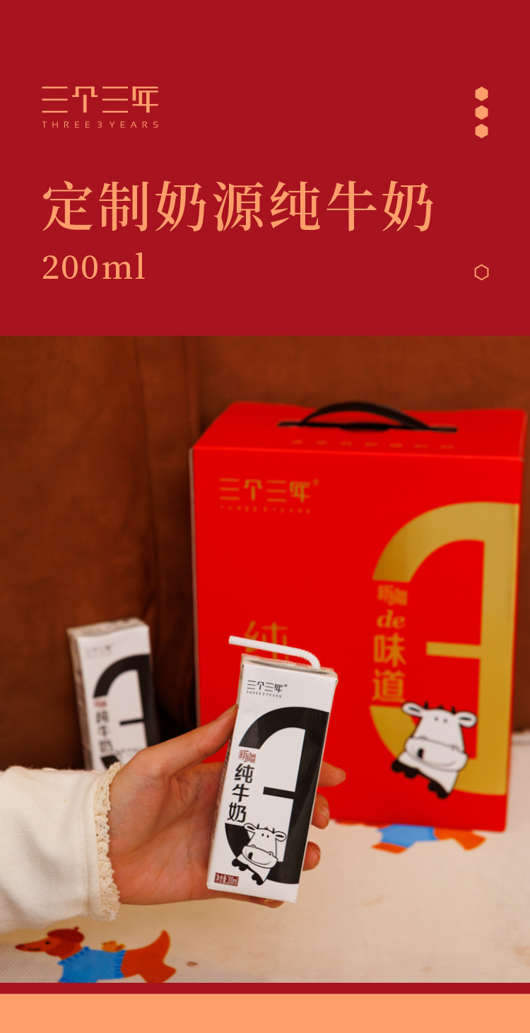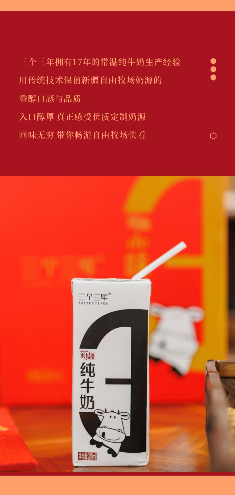 【无授权公域平台禁止上架】三个三年新疆纯牛奶200ml*12盒(儿童款全脂奶)