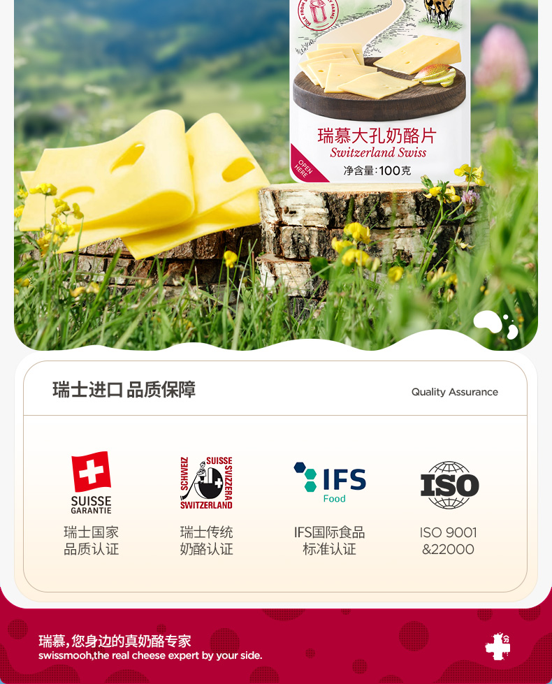 *【送奶酪片100g】瑞慕瑞士原装进口奶酪片swiss儿童芝士片即食原制乳酪100g*2