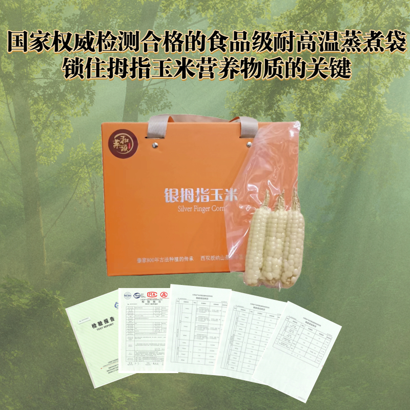 小贴士:为了保证拇指玉米丰富的营养不流失、入口时的风味不折损,请直接连带透明食品蒸煮袋一起加热(有效锁住山泉水,口感更佳),即刻享用雨林味道,获得丰富营养。