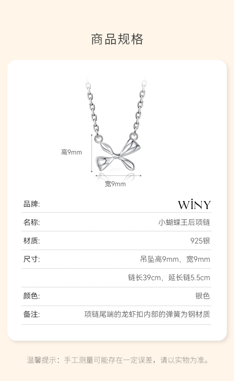 Winy925纯银小蝴蝶王后项链女款蝴蝶吊坠甜美百搭精致感锁骨链送女友生日礼物