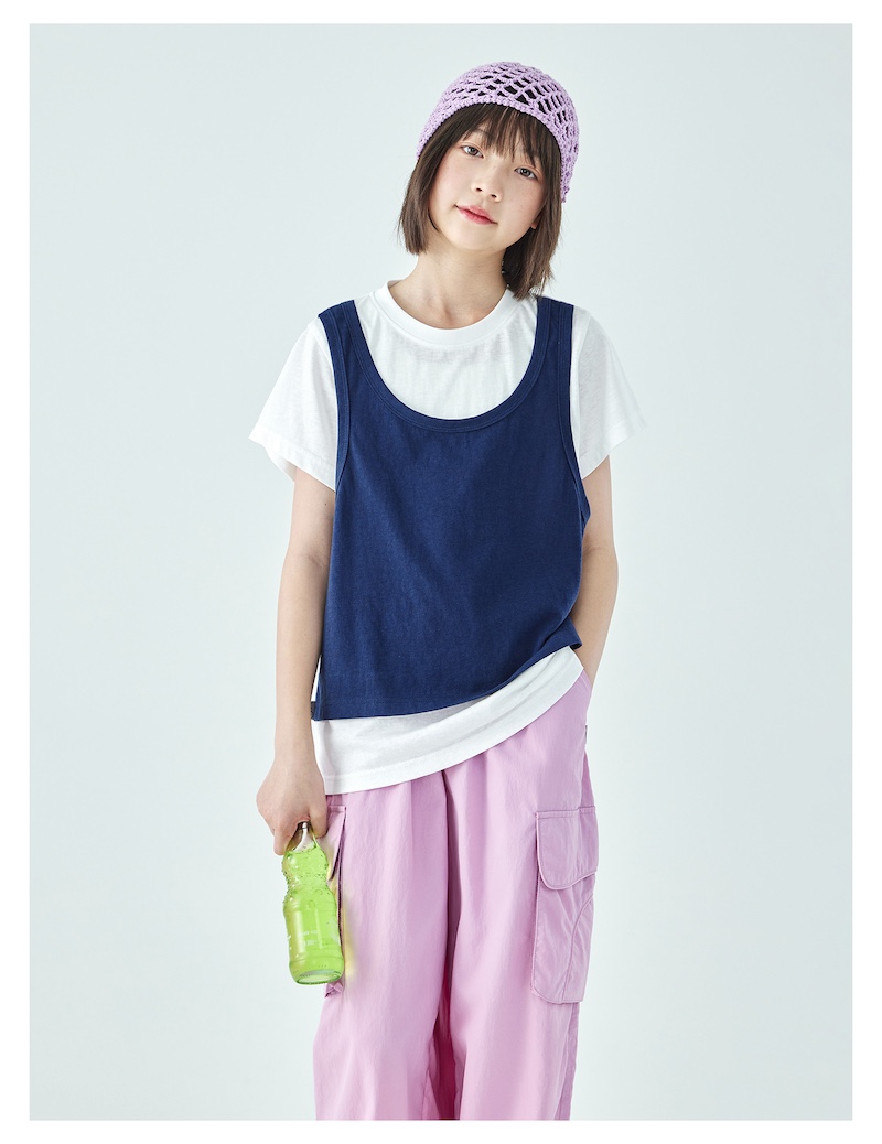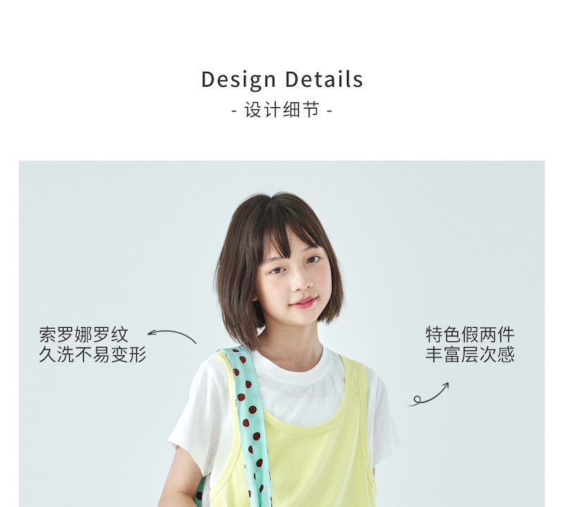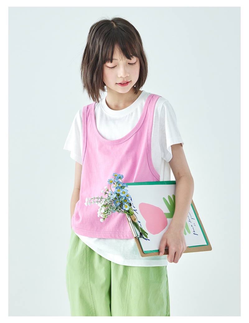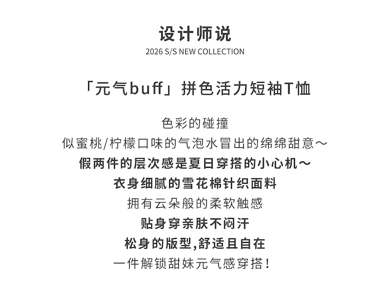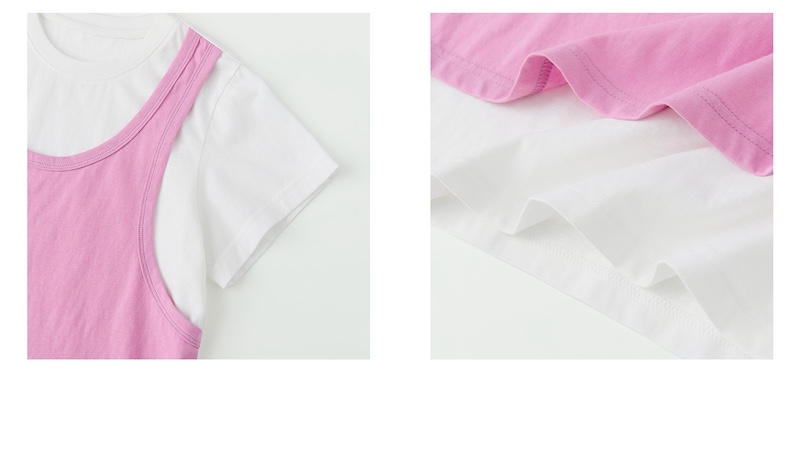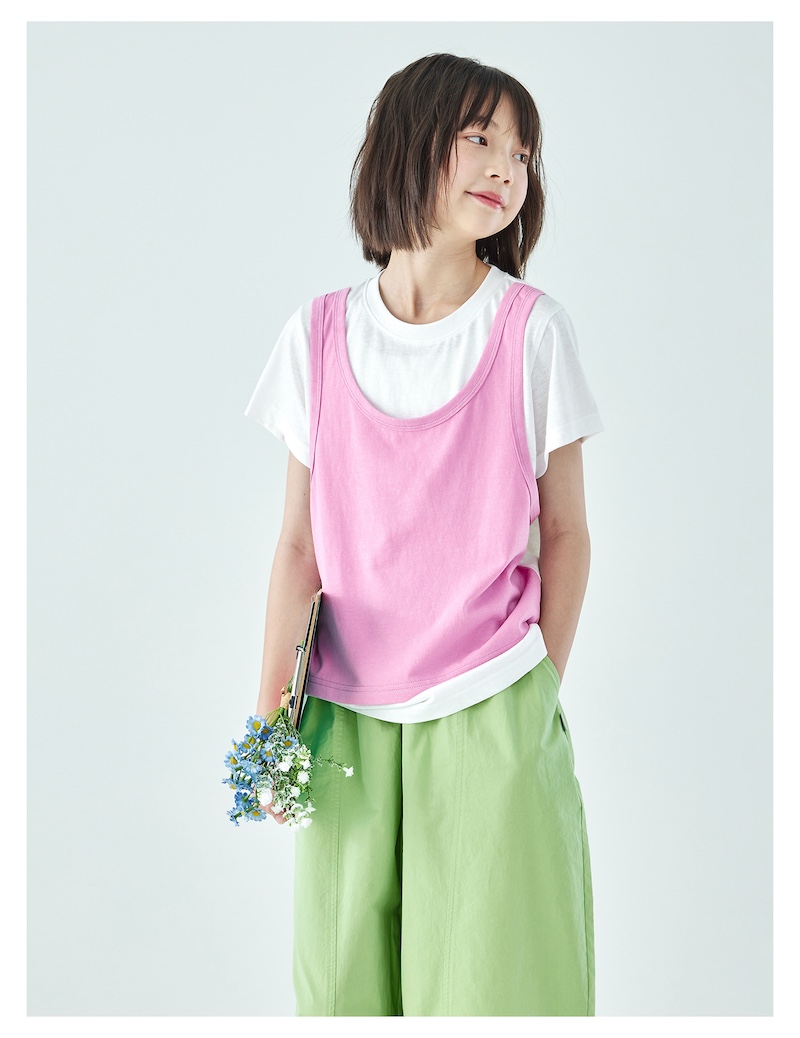 棵初26年夏季新款亲子中大女童假两件拼色T恤雪花棉亲肤宽松短袖