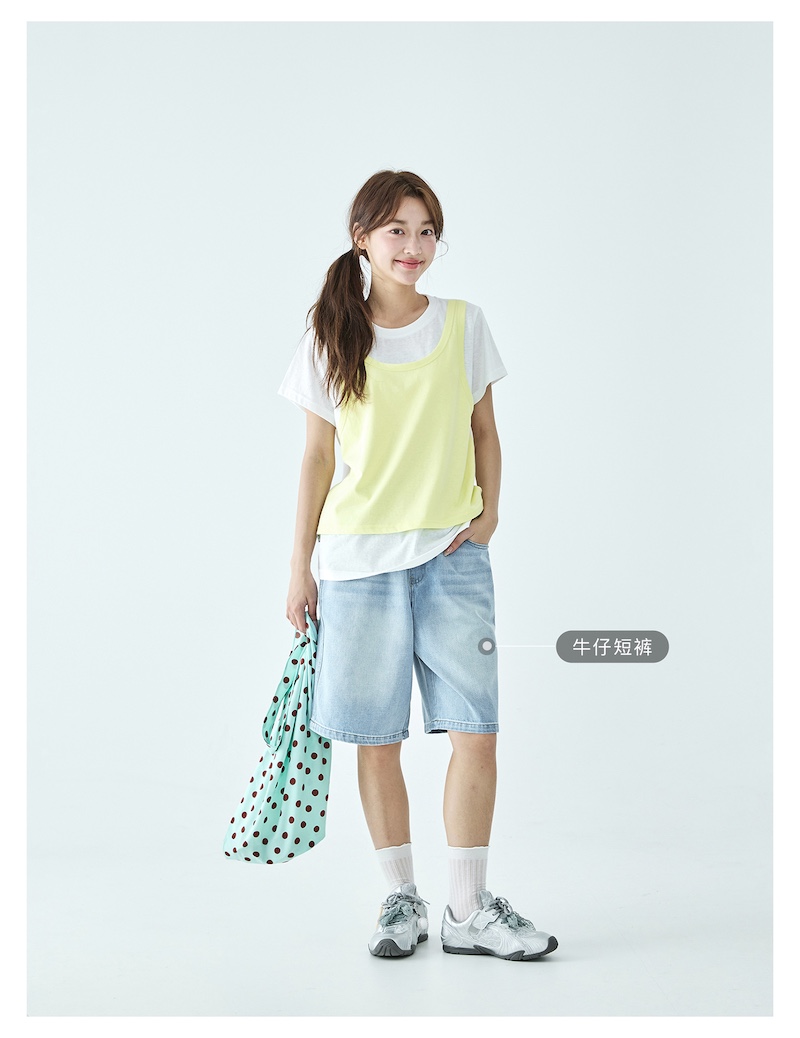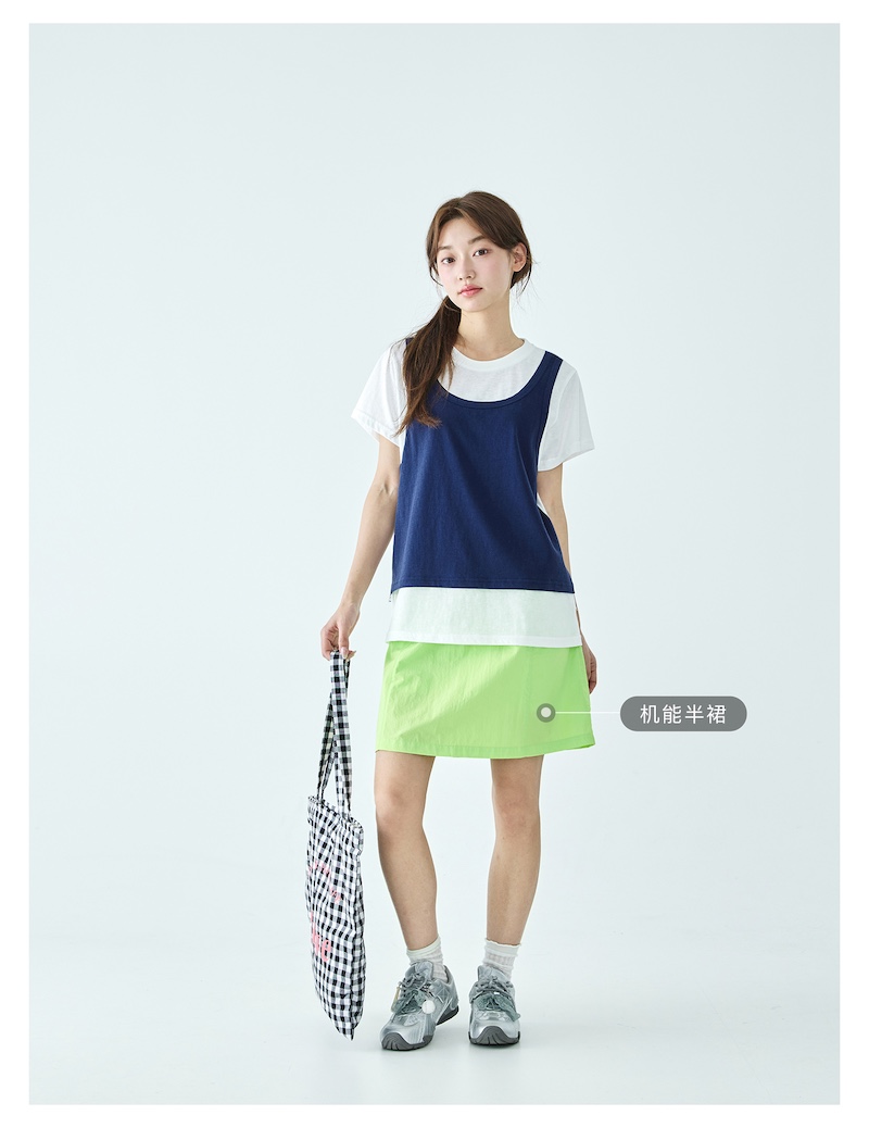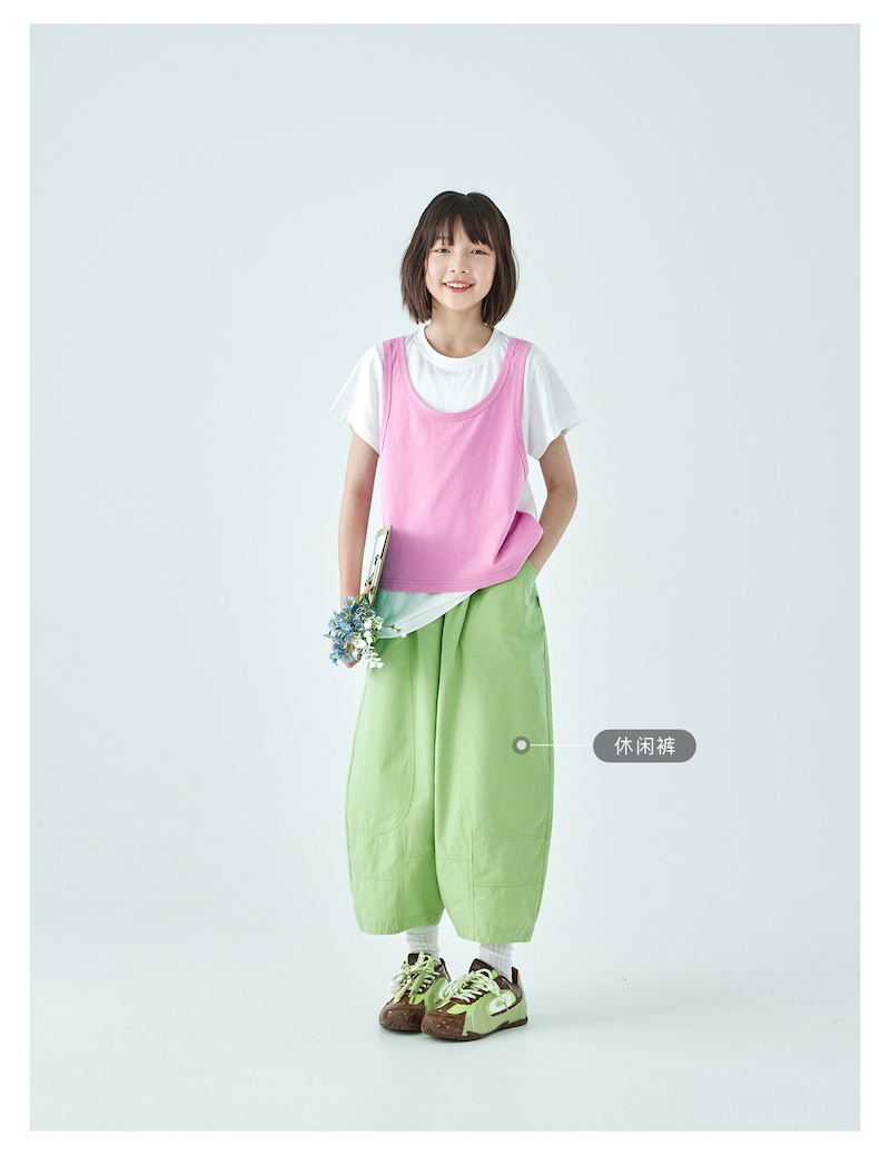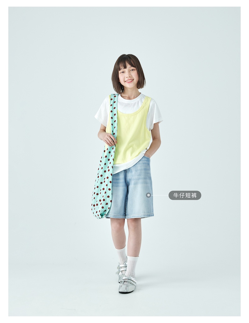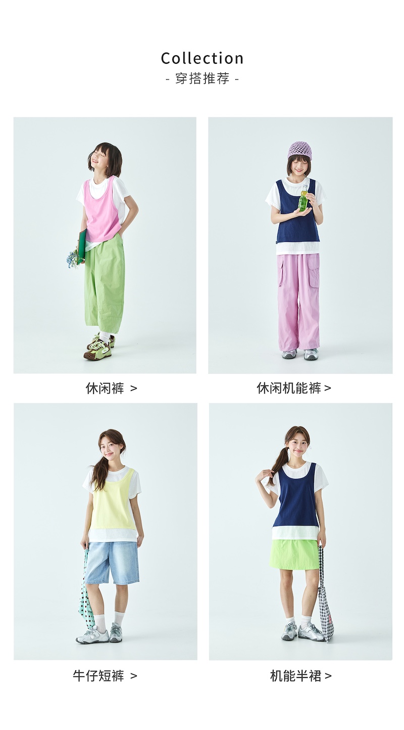 棵初26年夏季新款亲子中大女童假两件拼色T恤雪花棉亲肤宽松短袖