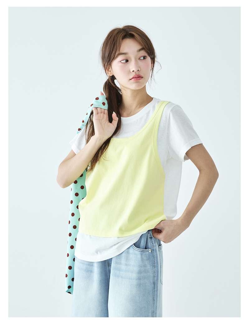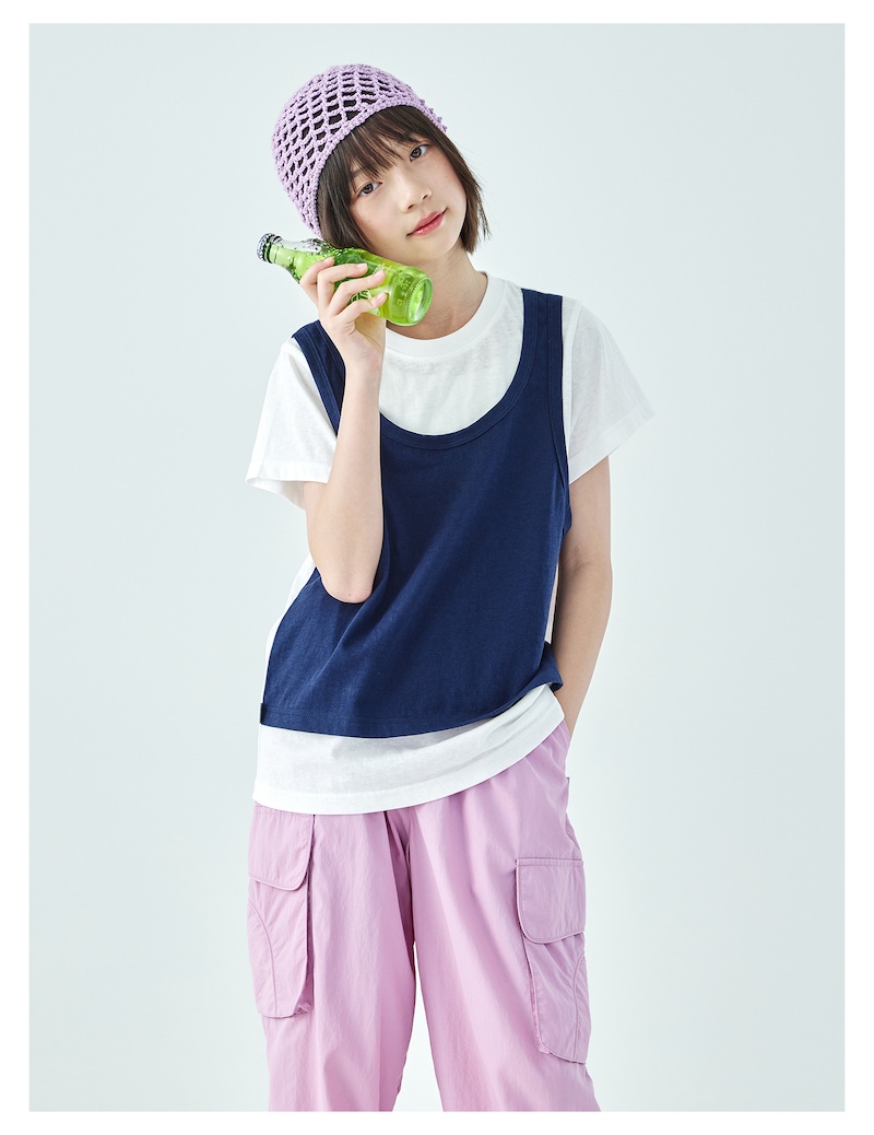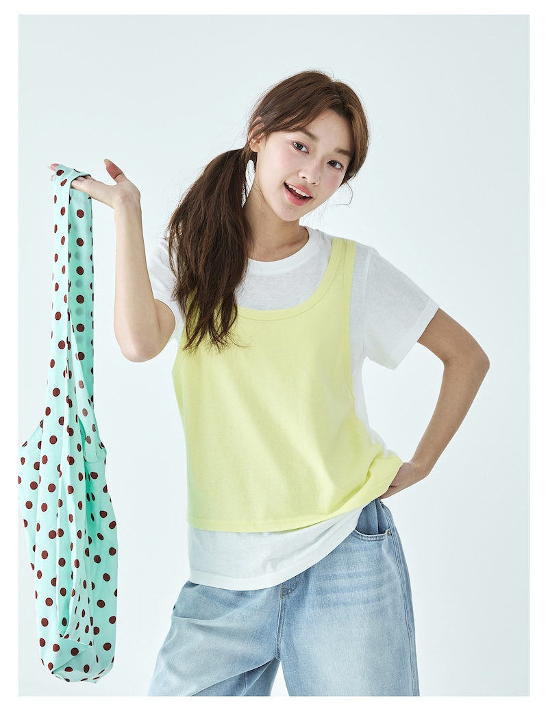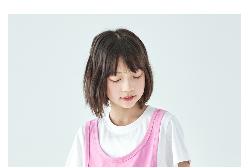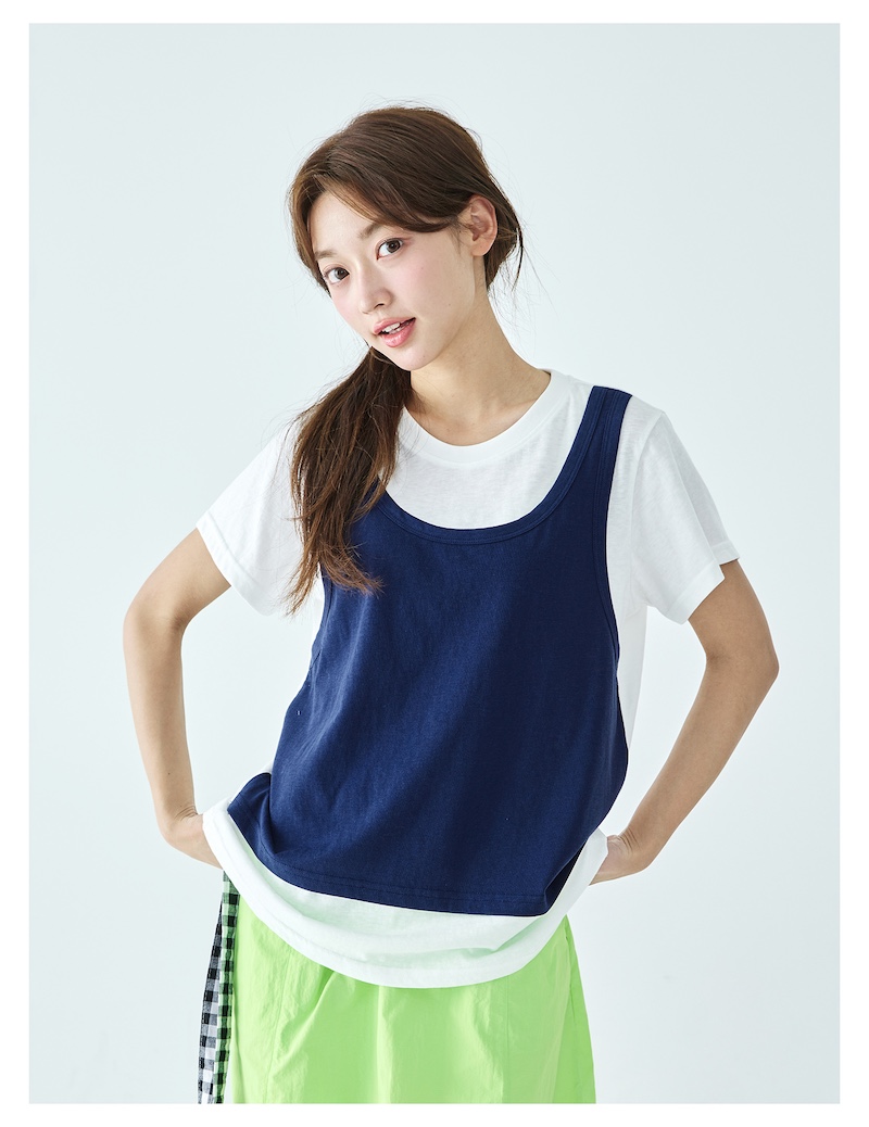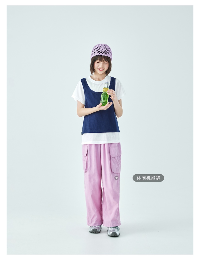 棵初26年夏季新款亲子中大女童假两件拼色T恤雪花棉亲肤宽松短袖