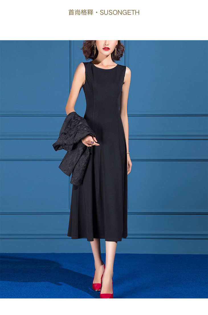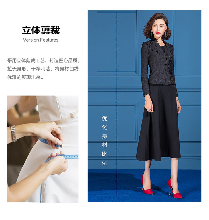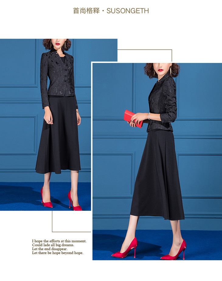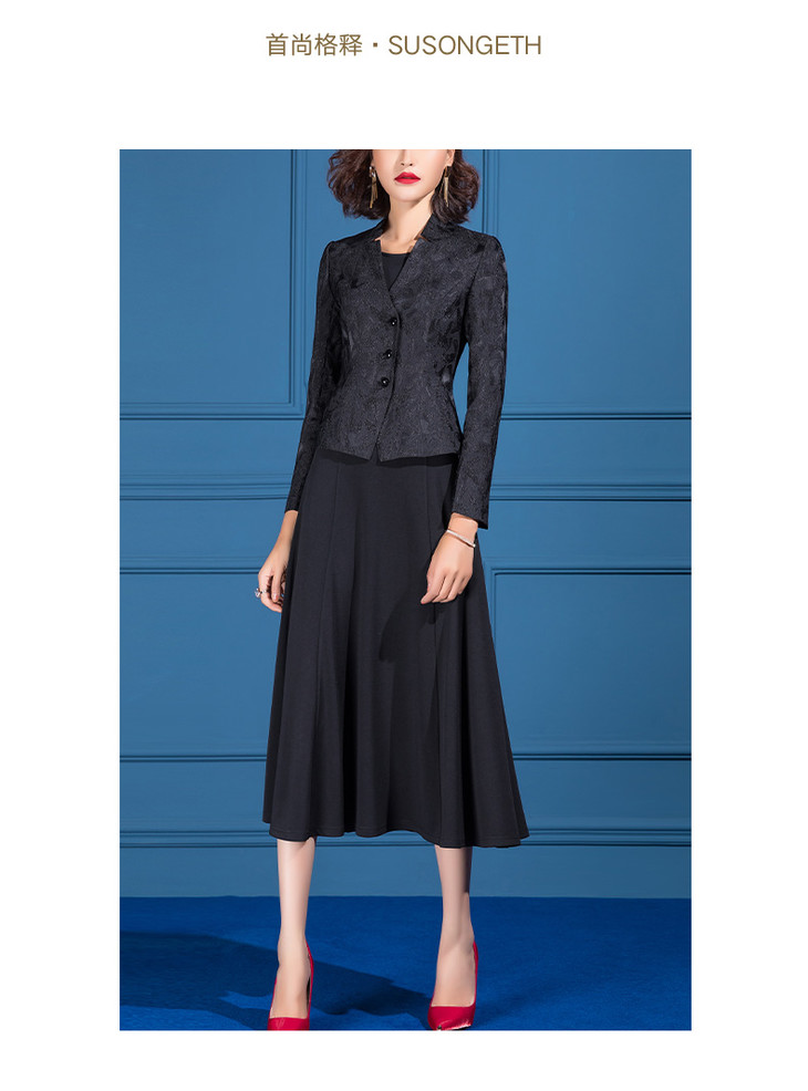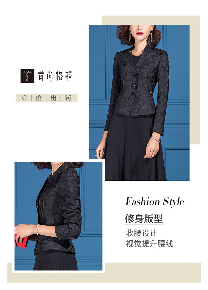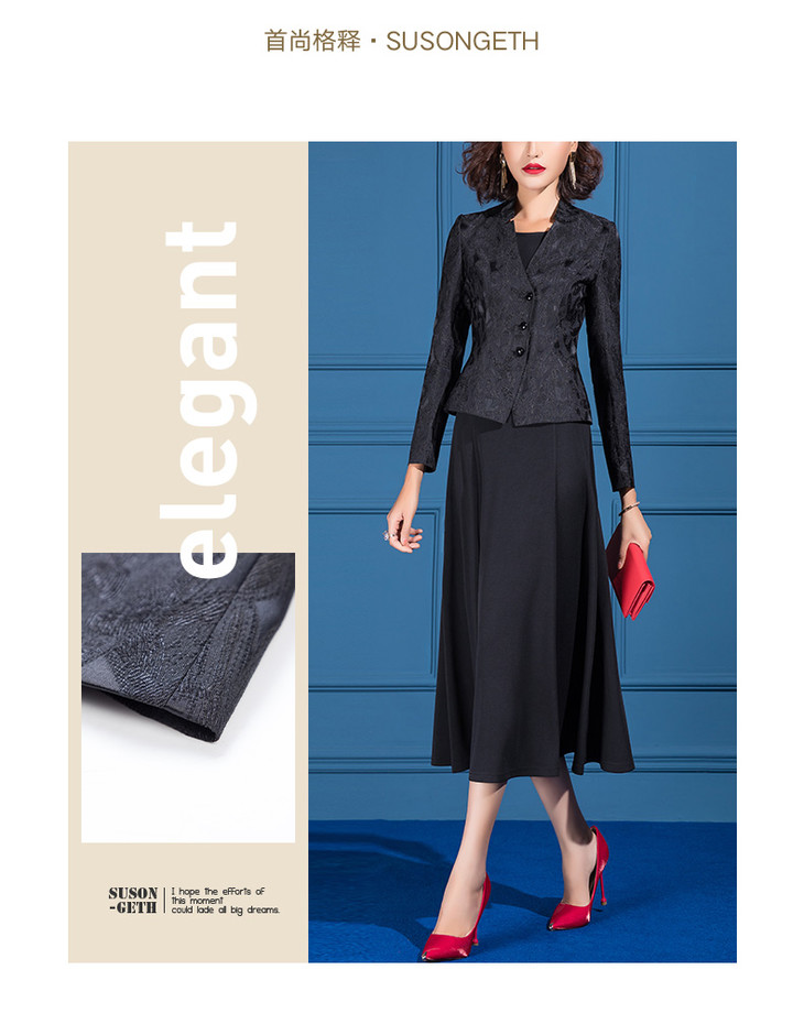 SSGS-L518新款轻熟名媛女神范黑色小外套裙子两件套