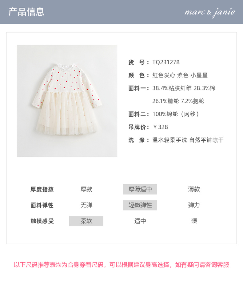 【德绒发热】马克珍妮秋装新款 女童拼接网纱连衣裙231278