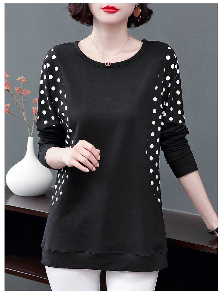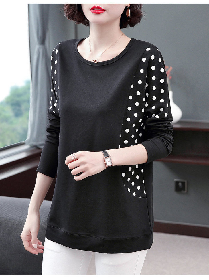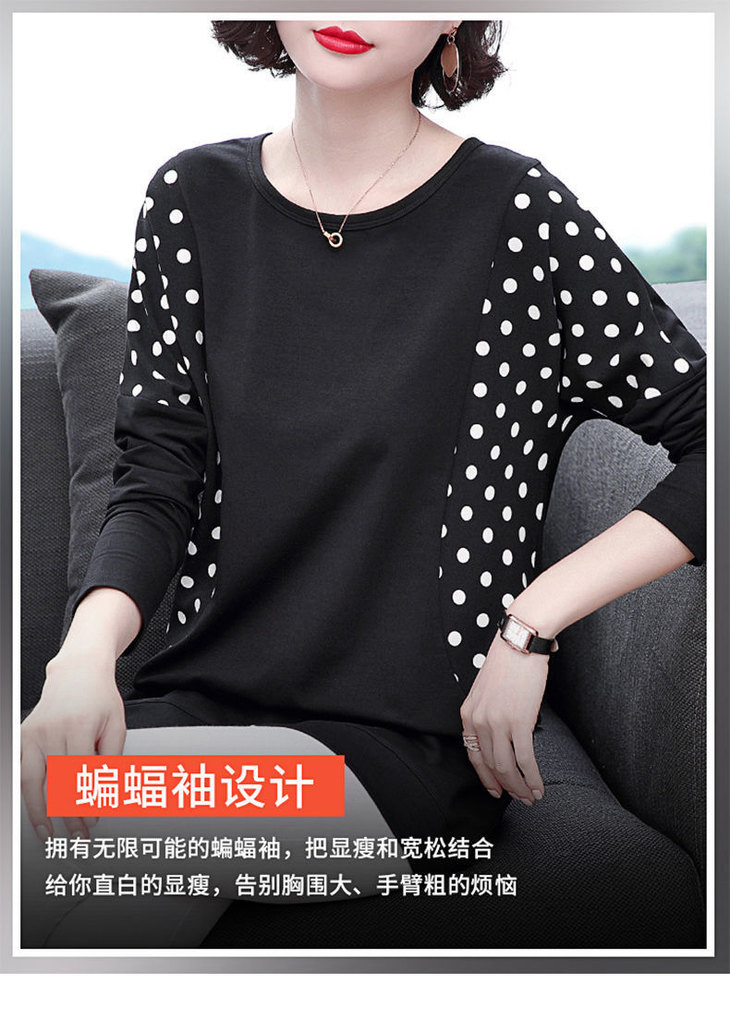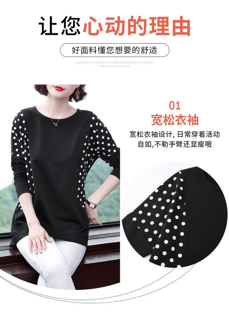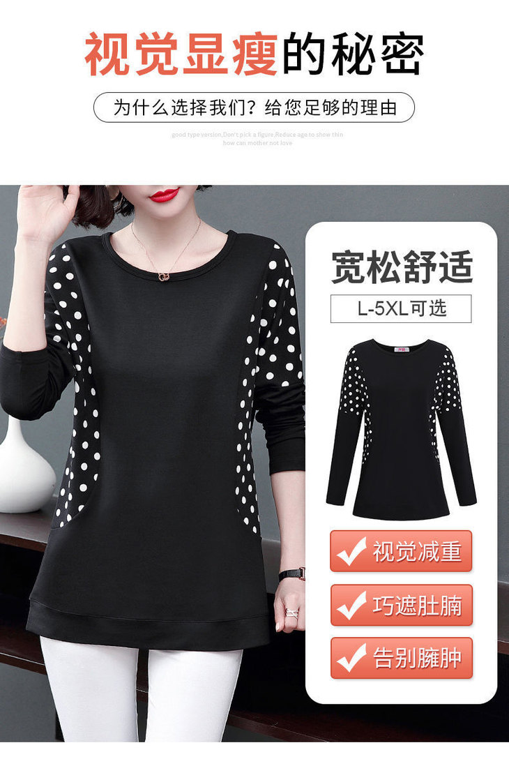JXG-中年妈妈装秋装长袖女新款胖mm加大码女装200斤遮肚子上衣打底衫