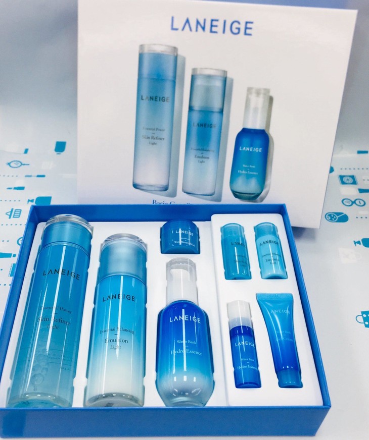 兰芝水库凝肌水乳精华清爽型补水保湿三件套礼盒👍套盒包含正装:精华水+保湿乳+EX精华➕赠品小样:夜间修护面膜+爽肤水+保湿乳+精华露+面霜;套装超值清爽型🍃适合偏油性肌肤使用哦,高效保湿调理肌肤角质层净化肌肤,让粗糙的肌肤恢复水油平衡💫,回到水润健康的状态😘😘~