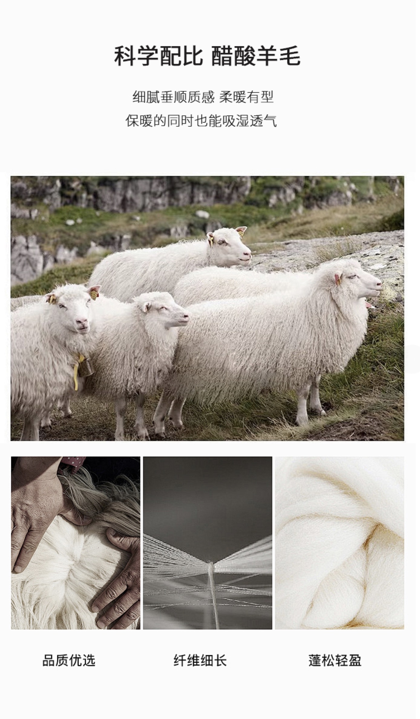 面料:醋酸羊毛面料腈纶:52.0%粘纤:27.6%醋酯纤维:10.3%氨纶:5.2%绵羊毛:4.9%(含微量其他纤维)