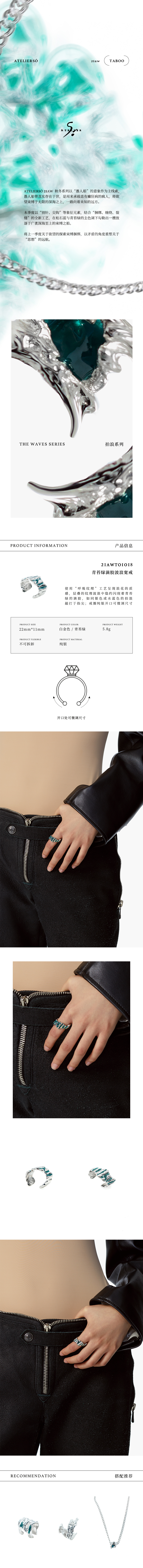 21AW TABOO|愚人船 拍浪系列 - 青苔绿滴胶宽戒
