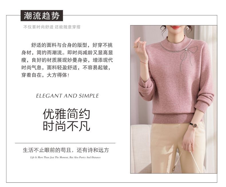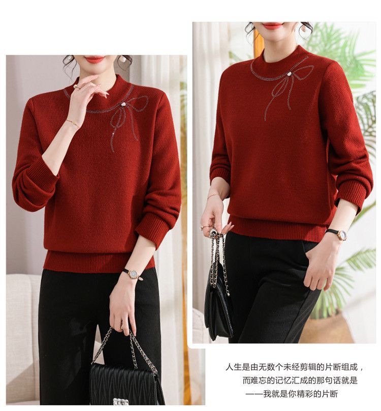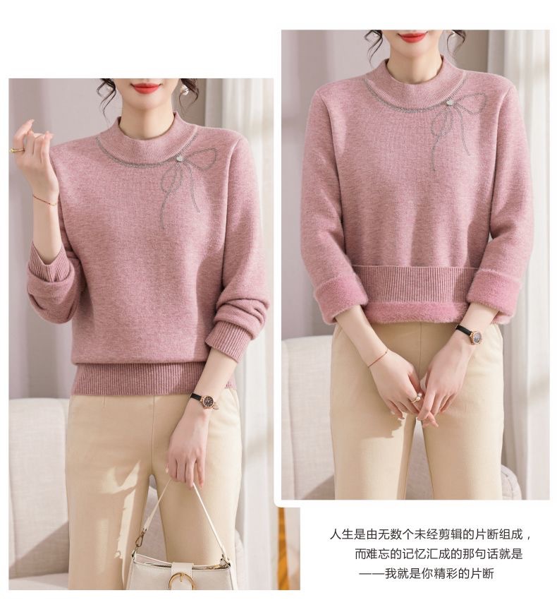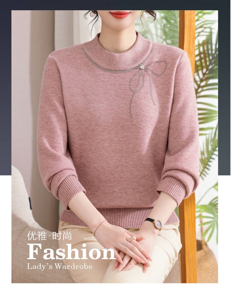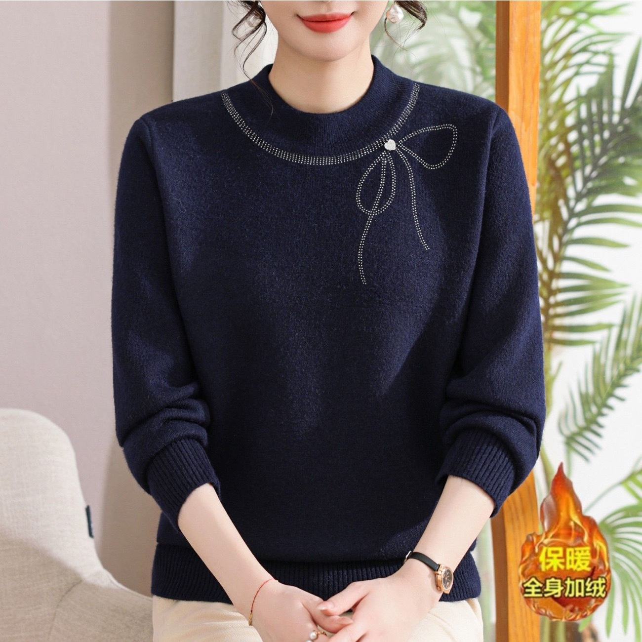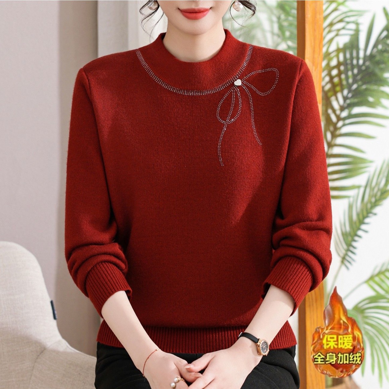 【柔软亲肤面料细腻❗️优雅简约时尚不凡】冬季妈妈装加绒毛衣加厚女士针织衫一体绒保暖上衣洋气婆婆打底衫。jb