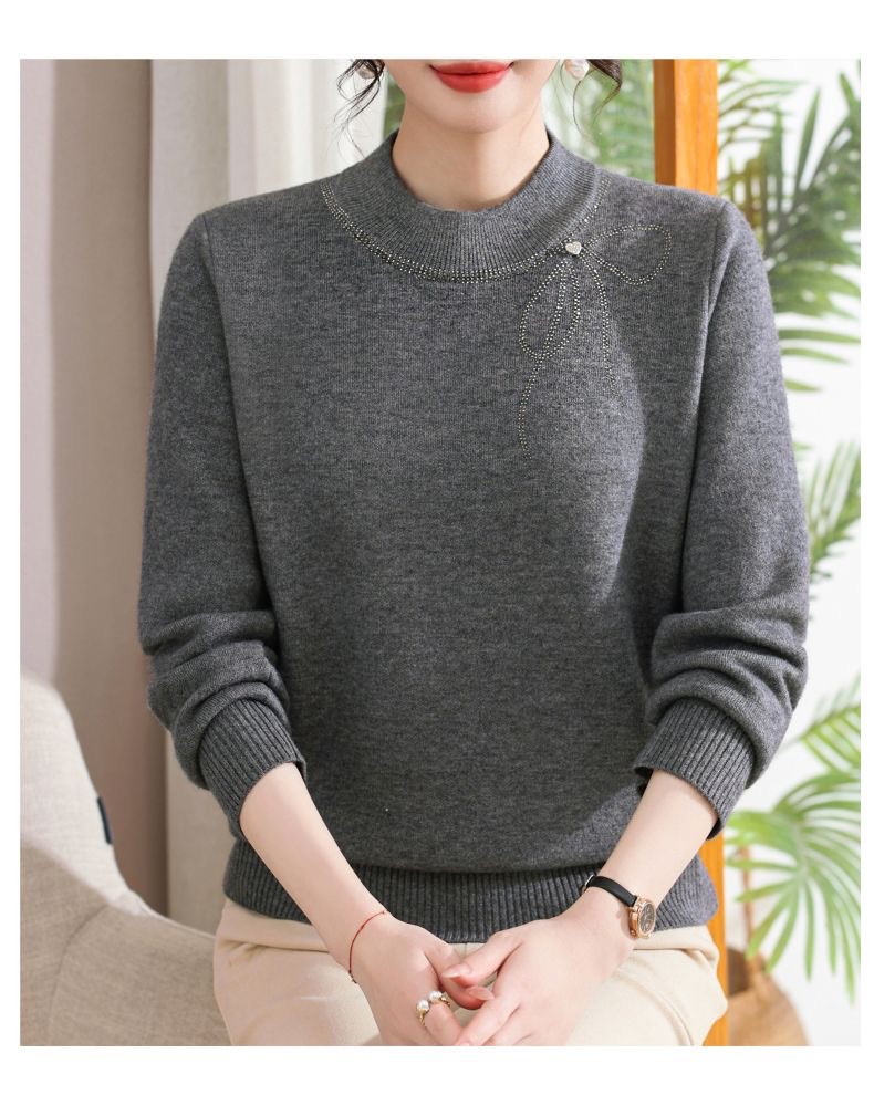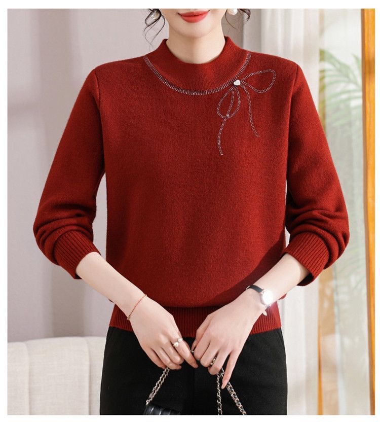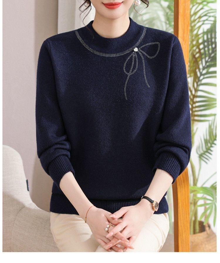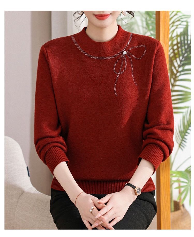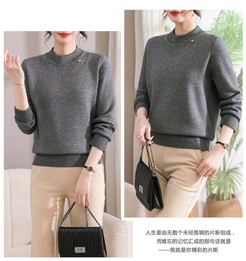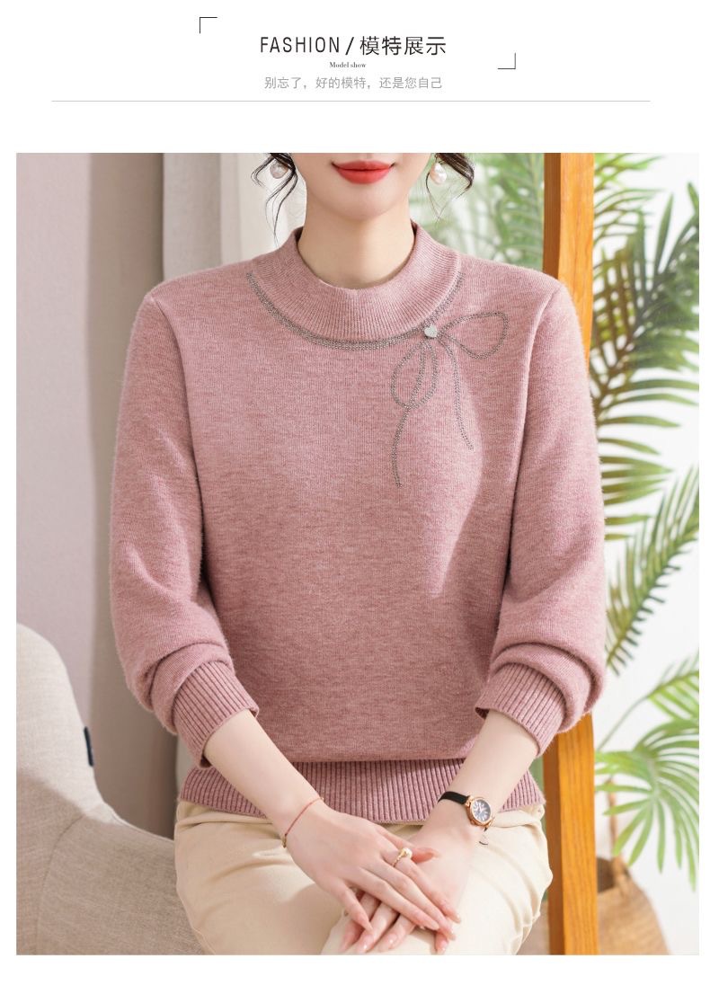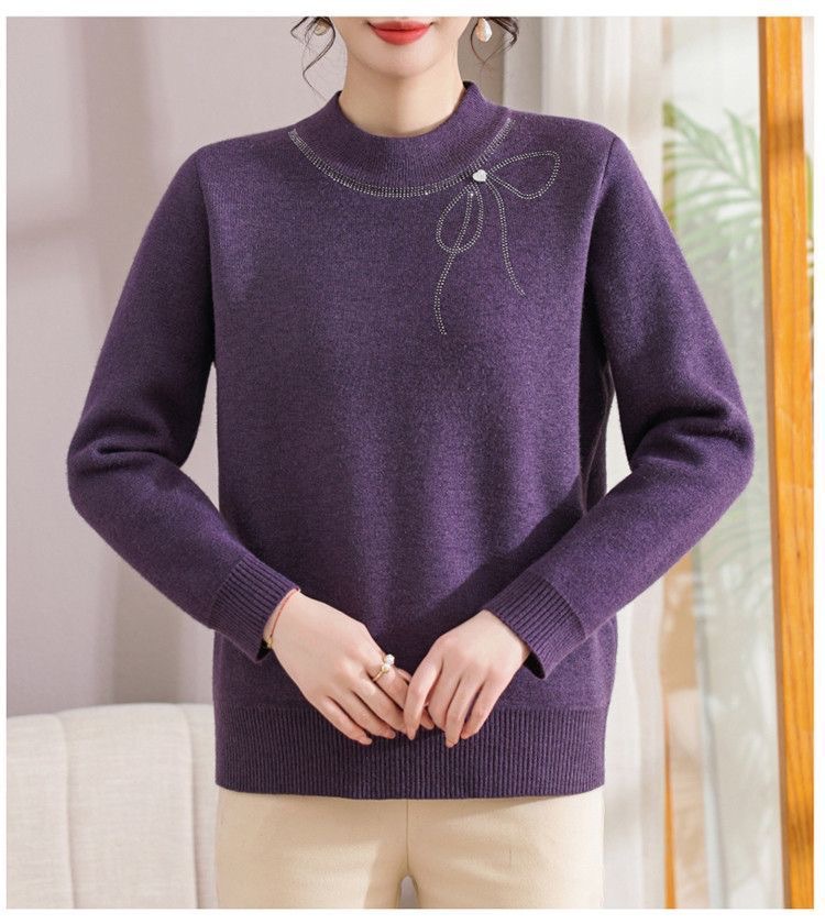 【柔软亲肤面料细腻❗️优雅简约时尚不凡】冬季妈妈装加绒毛衣加厚女士针织衫一体绒保暖上衣洋气婆婆打底衫。jb